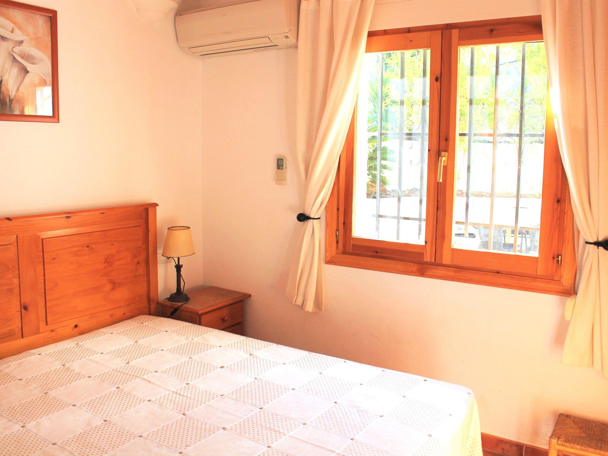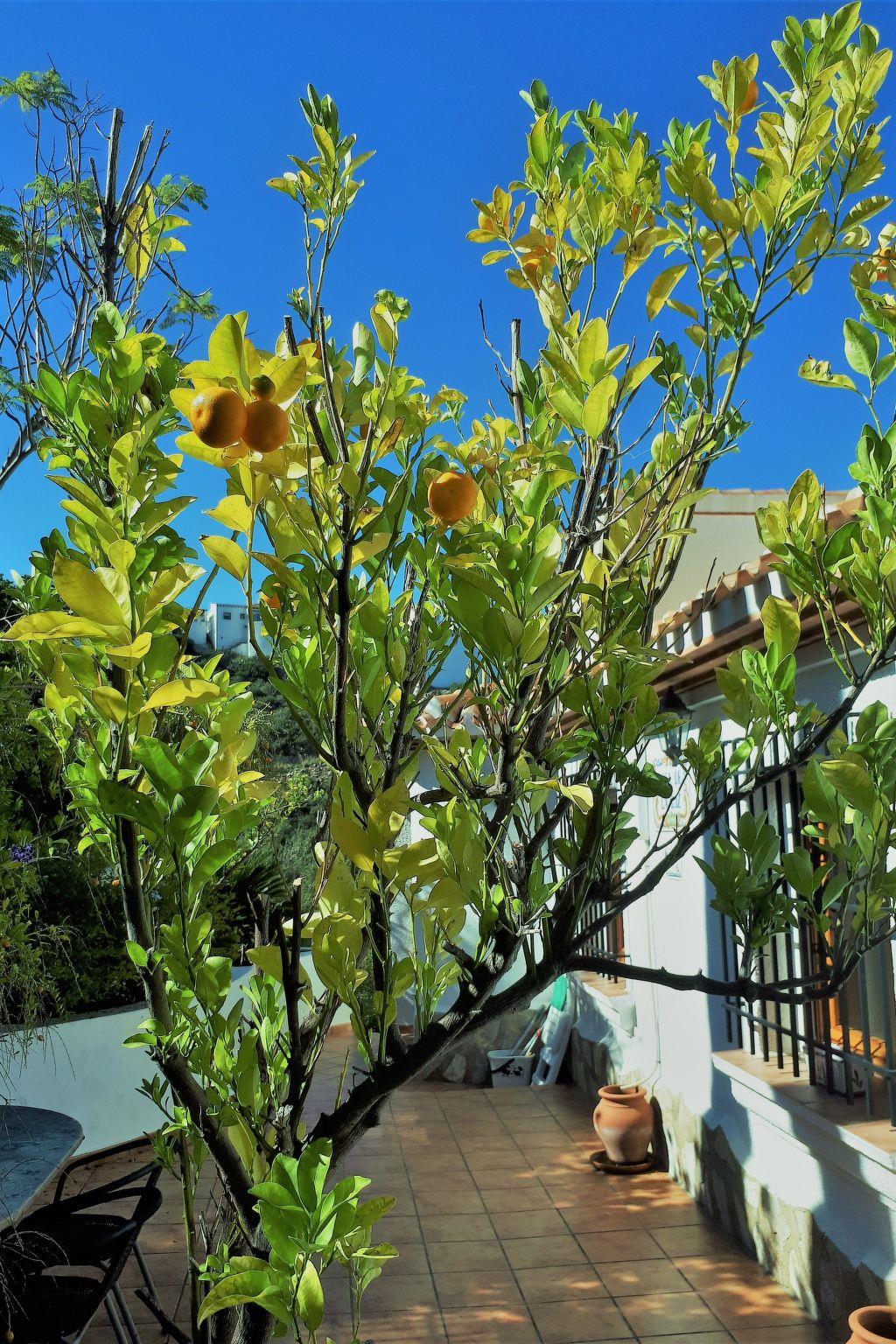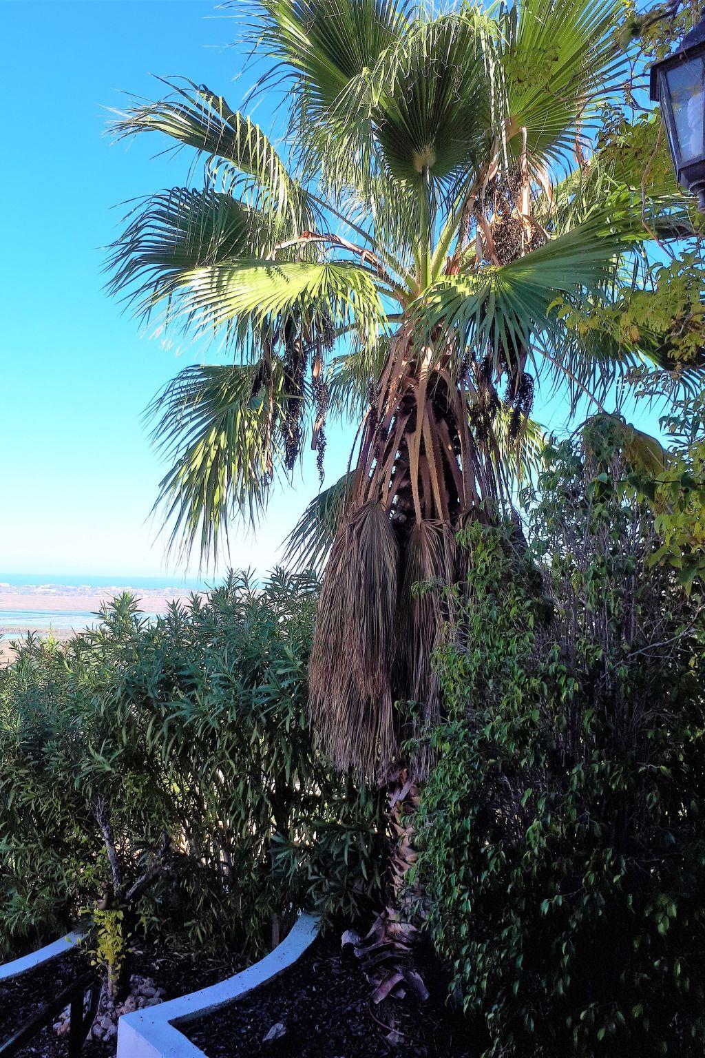 Through the tropical garden, past palm and mandarin trees, you reach the entrance area of the villa. The spacious, light-flooded living-dining room with fireplace welcomes you in a cosy atmosphere. From international television with DVD player, chess or other interesting games to the small house library, you will find everything you need for fun and entertainment. An information folder about the many excursion destinations in the area is also available. In addition to an open-plan, fully equipped American kitchen, you will find 3 comfortable bedrooms, one with an integrated shower room. All rooms can be pleasantly air-conditioned at any time of year as required - with modern, economical inverter air conditioning systems - cold or warm. In winter, they also serve as heating. The fireplace in the living room is a favourite for cooler days or long evenings, and its automatic firebox makes it child's play to use. All bedroom windows are fitted with mosquito blinds and fixed shutters. Double glazing and solid wood doors in every room perfectly complement the comfortable furnishings.