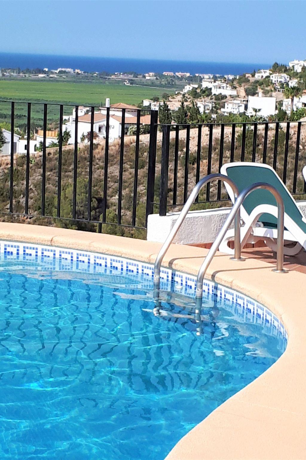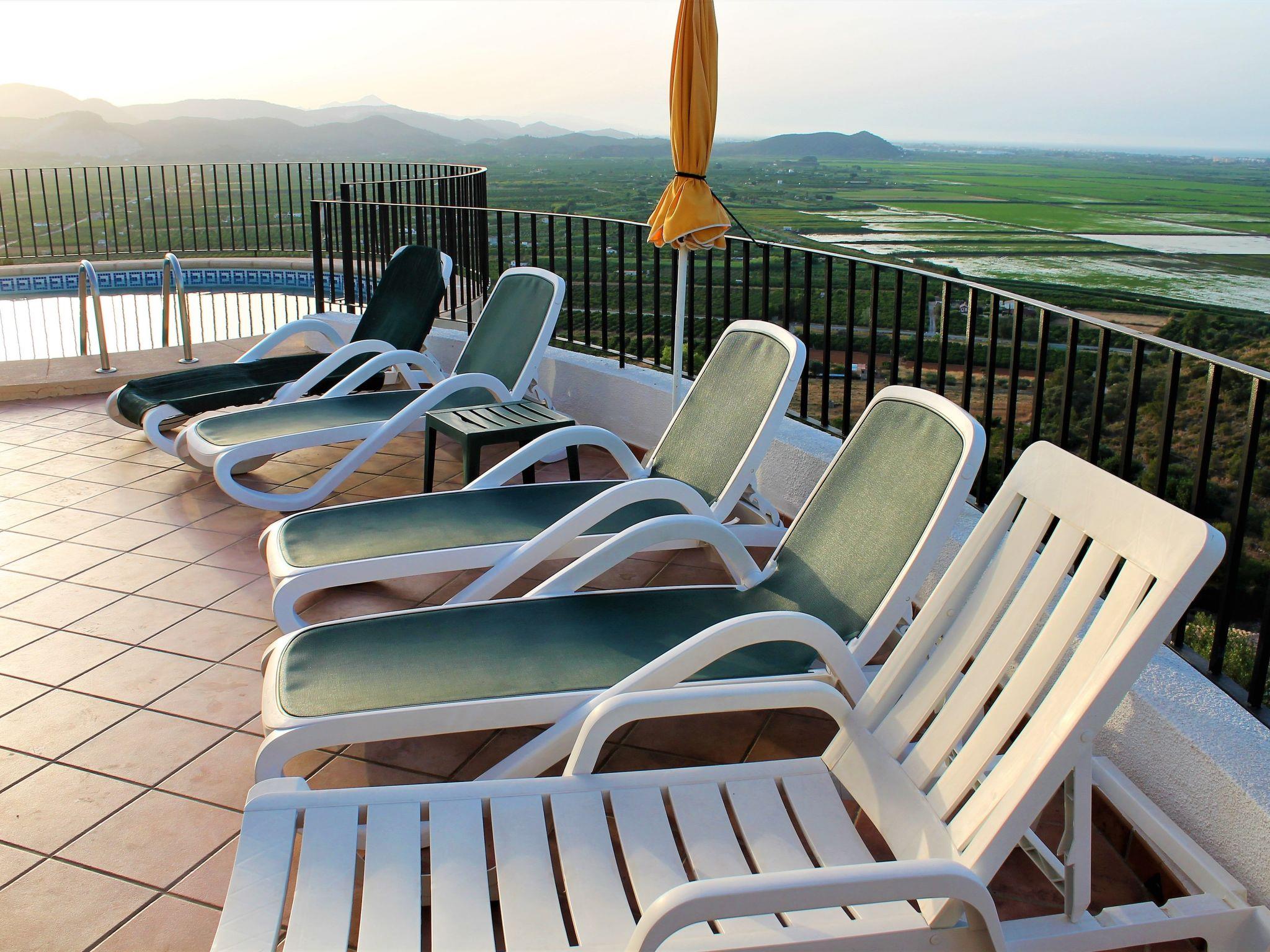 The large, sunny pool terrace with outdoor shower, barbecue and shady veranda can be accessed from the living room or master bedroom. It has recently been fitted with flexible sliding glass elements in all fronts, which can be opened as desired. This makes it possible to enjoy the fantastic panorama at any time and in any weather. The beautiful, heated pool with its Roman steps immediately invites you to take a refreshing dip. From the entire pool level, you can enjoy a magnificent and unforgettable panoramic view of the turquoise-coloured sea, the wonderful Mediterranean landscape and the majestic Segaria mountains. Another spacious terrace awaits visitors in the beautiful garden at the front of the house. Whether simply relaxing, daydreaming or observing the interesting tropical plants - here too, everything is entirely up to you.