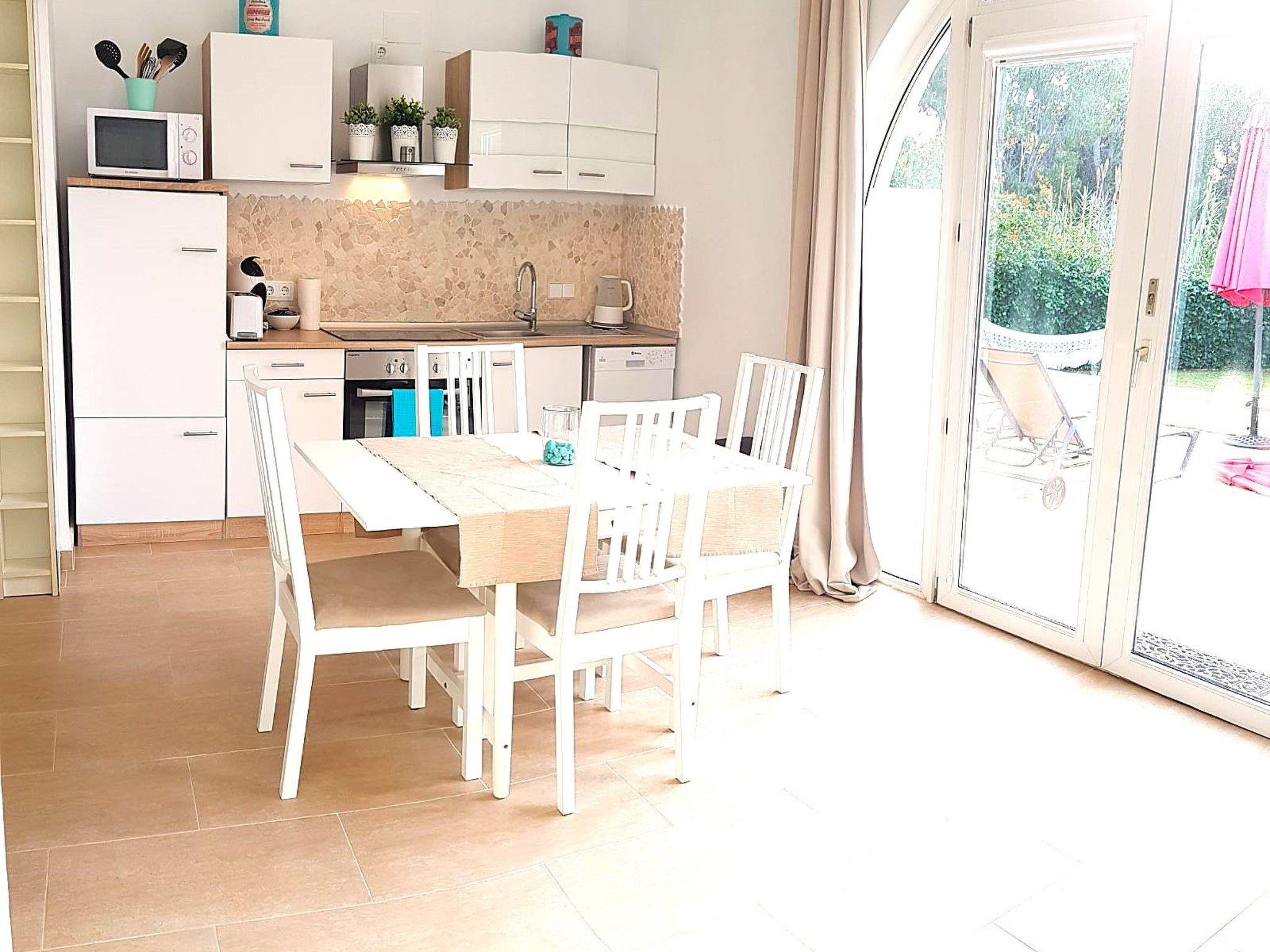 There are three beaches in the immediate vicinity (the closest is a 3-minute walk away), where you will also find all shopping facilities, restaurants and doctors, supermarkets, pharmacies, bakeries, hairdressers, car, bike, card, trike and motorbike hire. The town of Paguera is characterised by its not so tall houses, its beautiful five beaches with clean water and the very long boulevard with its many shops, which invite you to stroll around all year round. The airport is about 20 minutes away by car. There are bus stops about 450 metres away and tennis courts 650 metres away. Golf course 2 km away. Hiking trails 300 metres away.