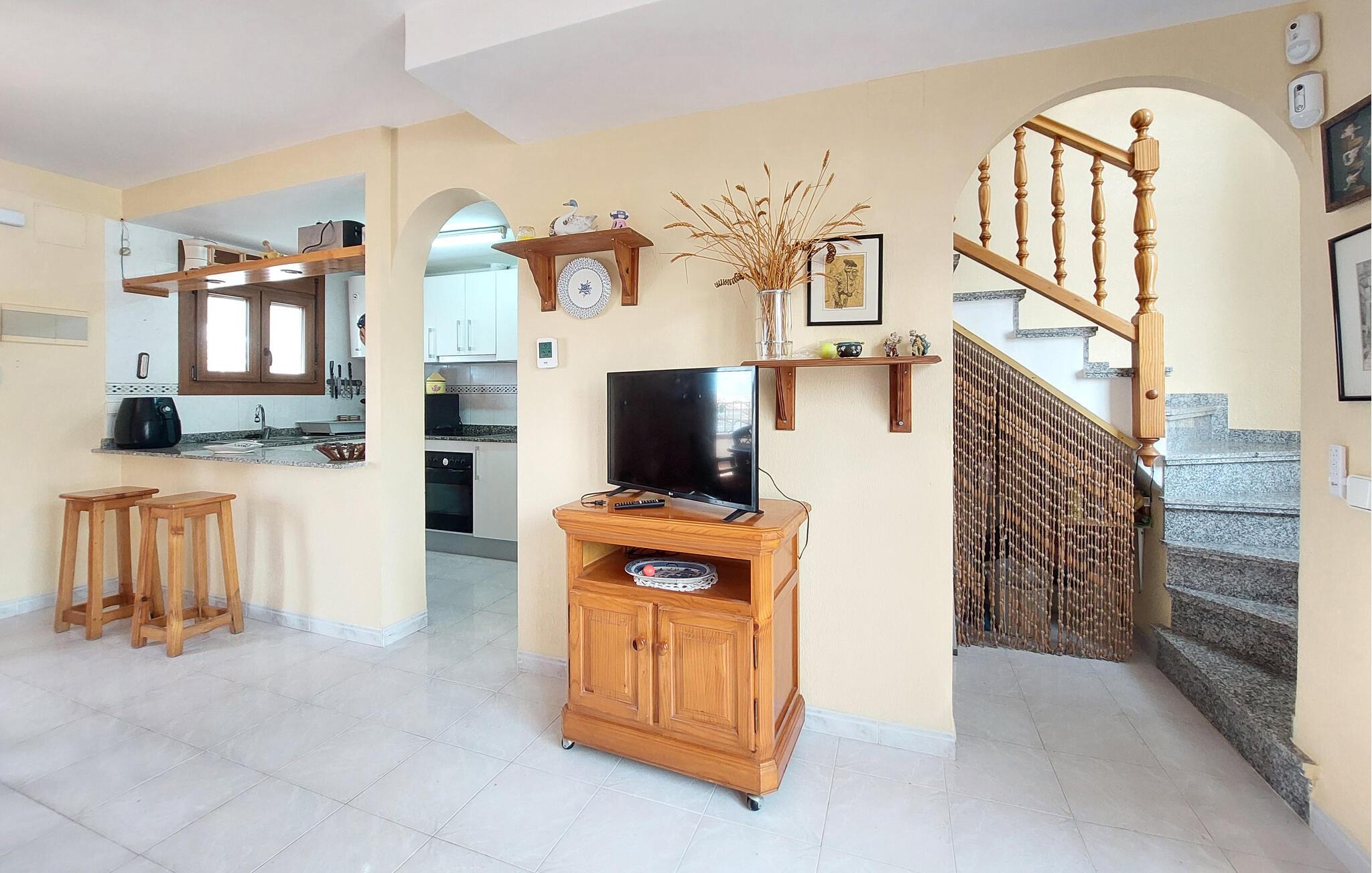 Velkommen til en solferie i dette hyggelige hus, der ikke ligger langt fra havet. Her kan I nyde en afslappende tid sammen med hele familien. Slap af på sofaen om aftenen, og se en film, efter at I har tilbragt eftermiddagen med at sole jer på en af terrasserne og spist aftensmad udendørs.