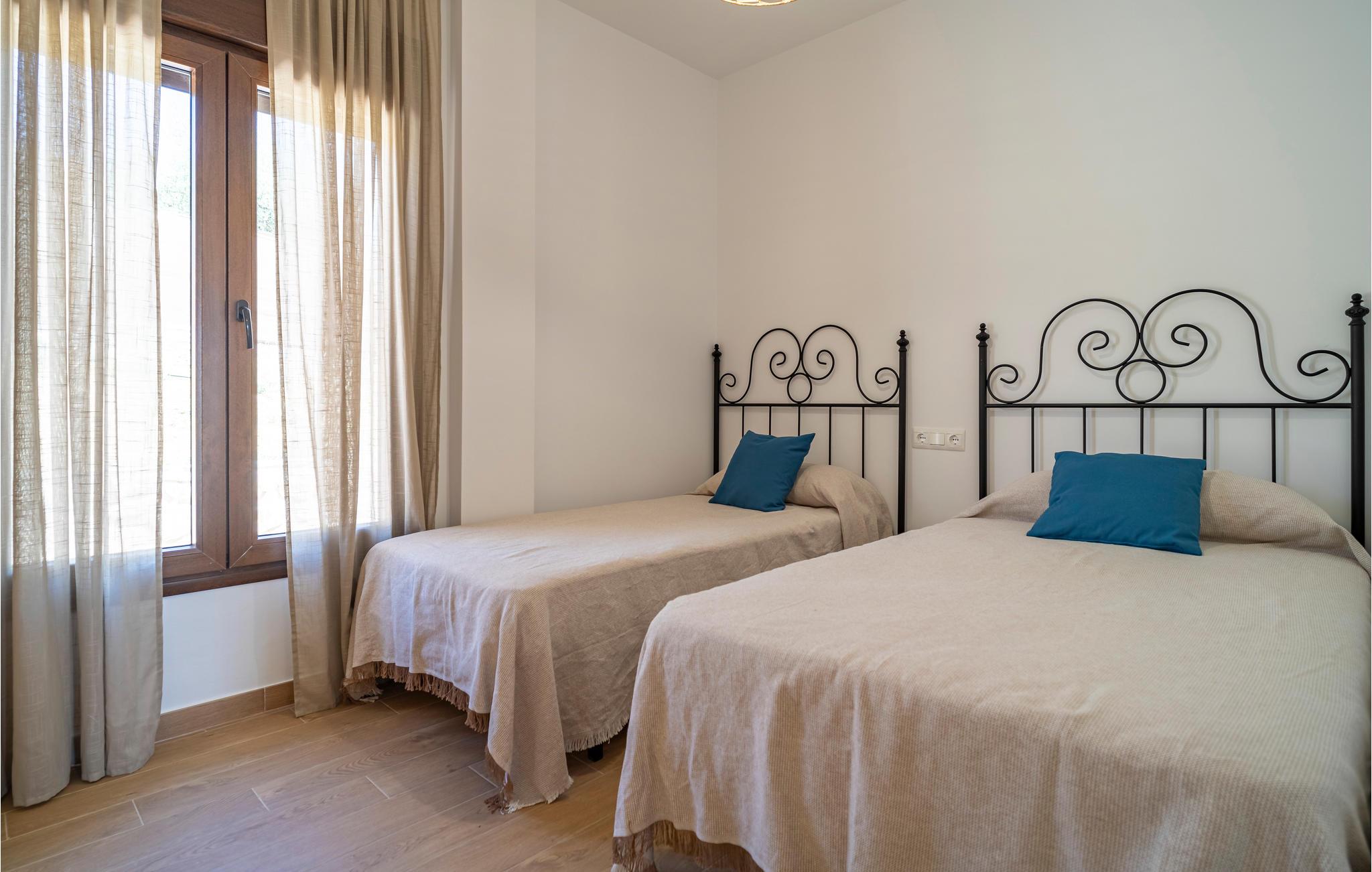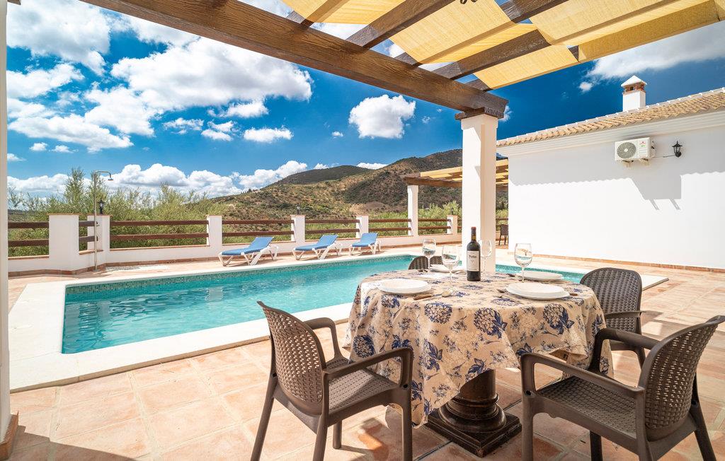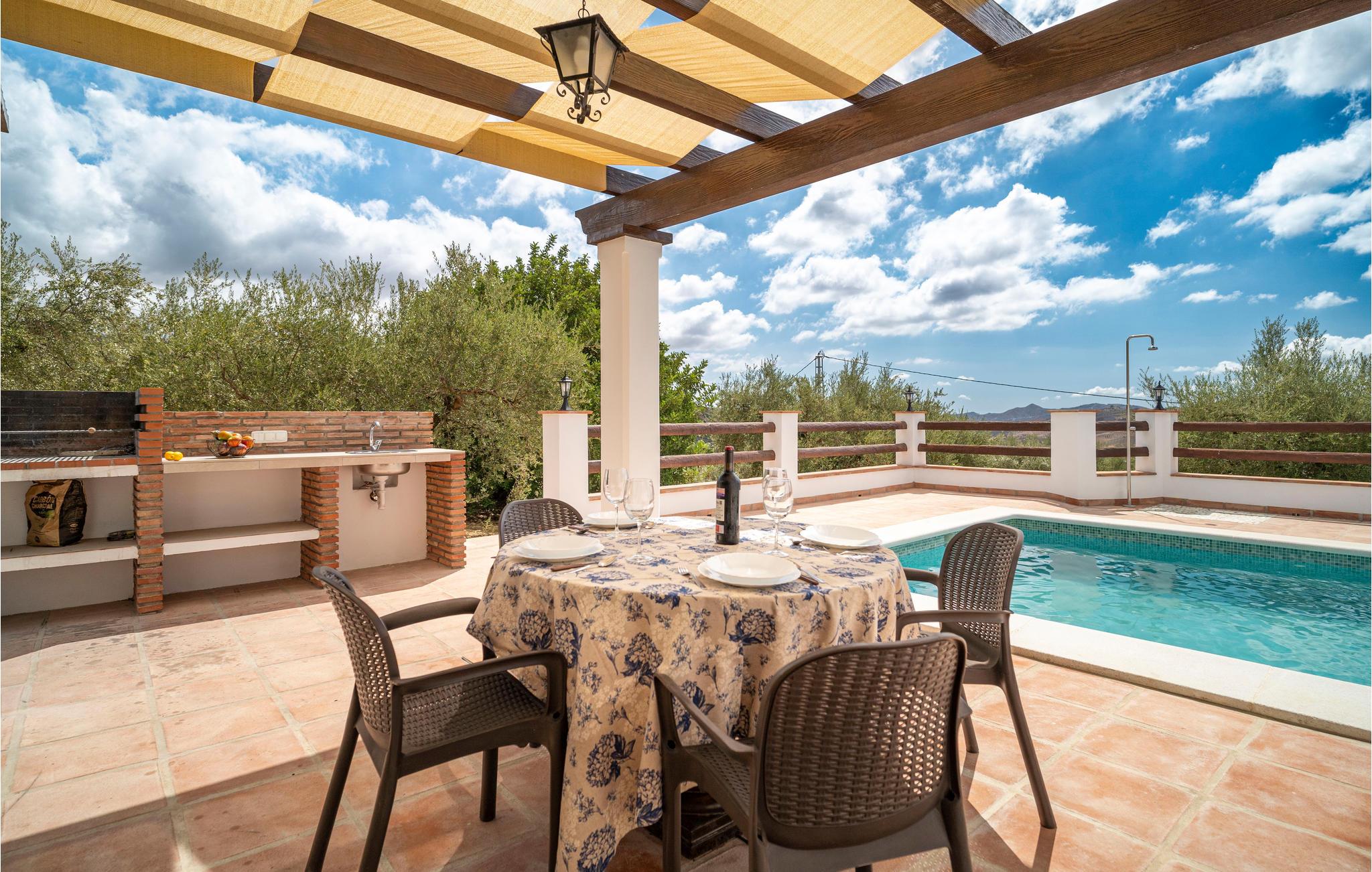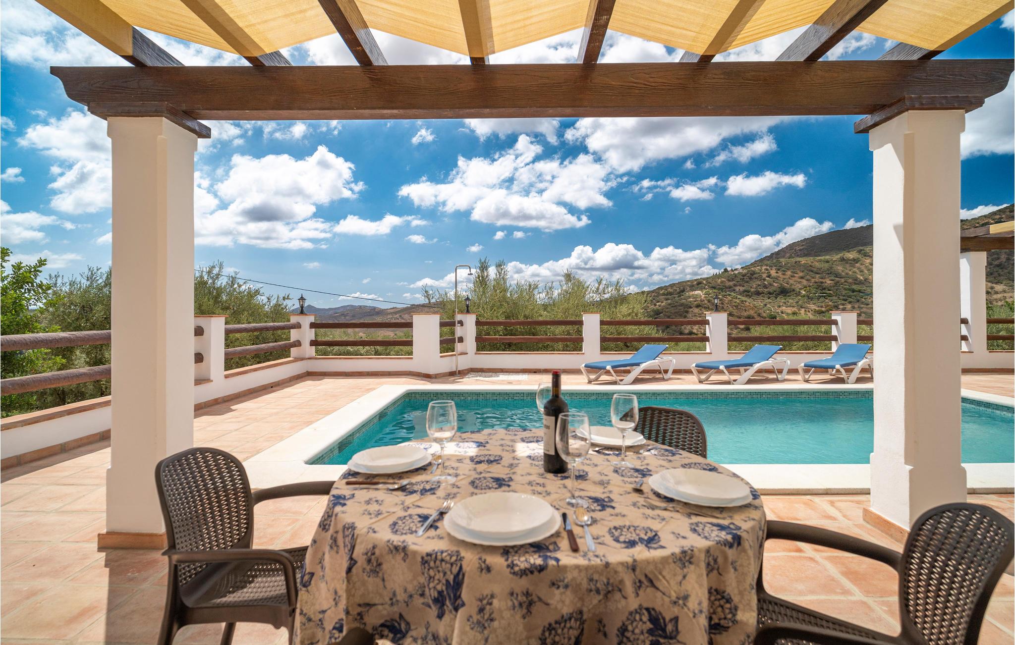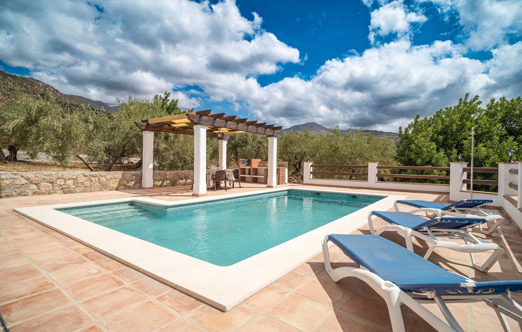Det komfortable hus i Mondrón byder jer hjerteligt velkommen, smukt beliggende i det bjergrige landskab i kystens bagland og tæt på Tajos de Sabar, kendt som Malagas Pyrenæer. Brug dette feriehus som en skøn base, hvortil I kan trække jer tilbage efter Iange vandreture i bjergene. I de lyse værelser, som er hyggeligt indrettet i en moderne stil, vil I med det samme føle jer godt tilpas. Nyd lækker hjemmelavet mad til en storslået udsigt over bjerglandskabet og sæt jer til rette i den indbydende sofa om aftenen og snak til langt ud på natten, mens flammerne knitrer i pejsen. Her skal ingen tidligt op! Huset byder desuden på udendørs wellness! Slik sol på liggestolene og forkæl jeres ømme vandremuskler i poolen, som sørger for skøn afkøling i varmen. Slap af på terrasserne med fortryllende udsigt og afslut en mindeværdig dag med en hyggelig grillaften til stor glæde for både store og små.