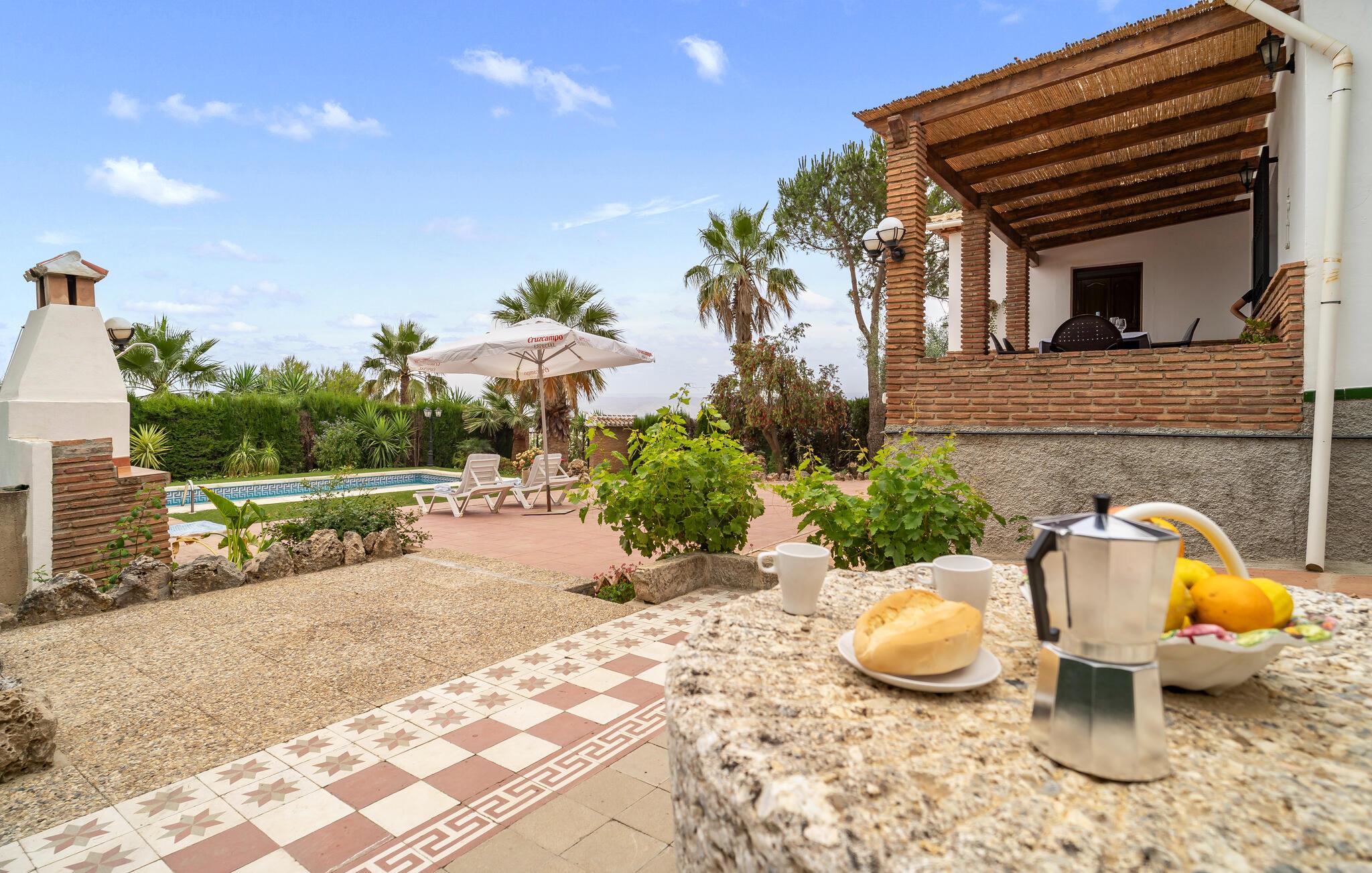 Tilbring jeres ferie i dette smukt møblerede feriehus med pool.