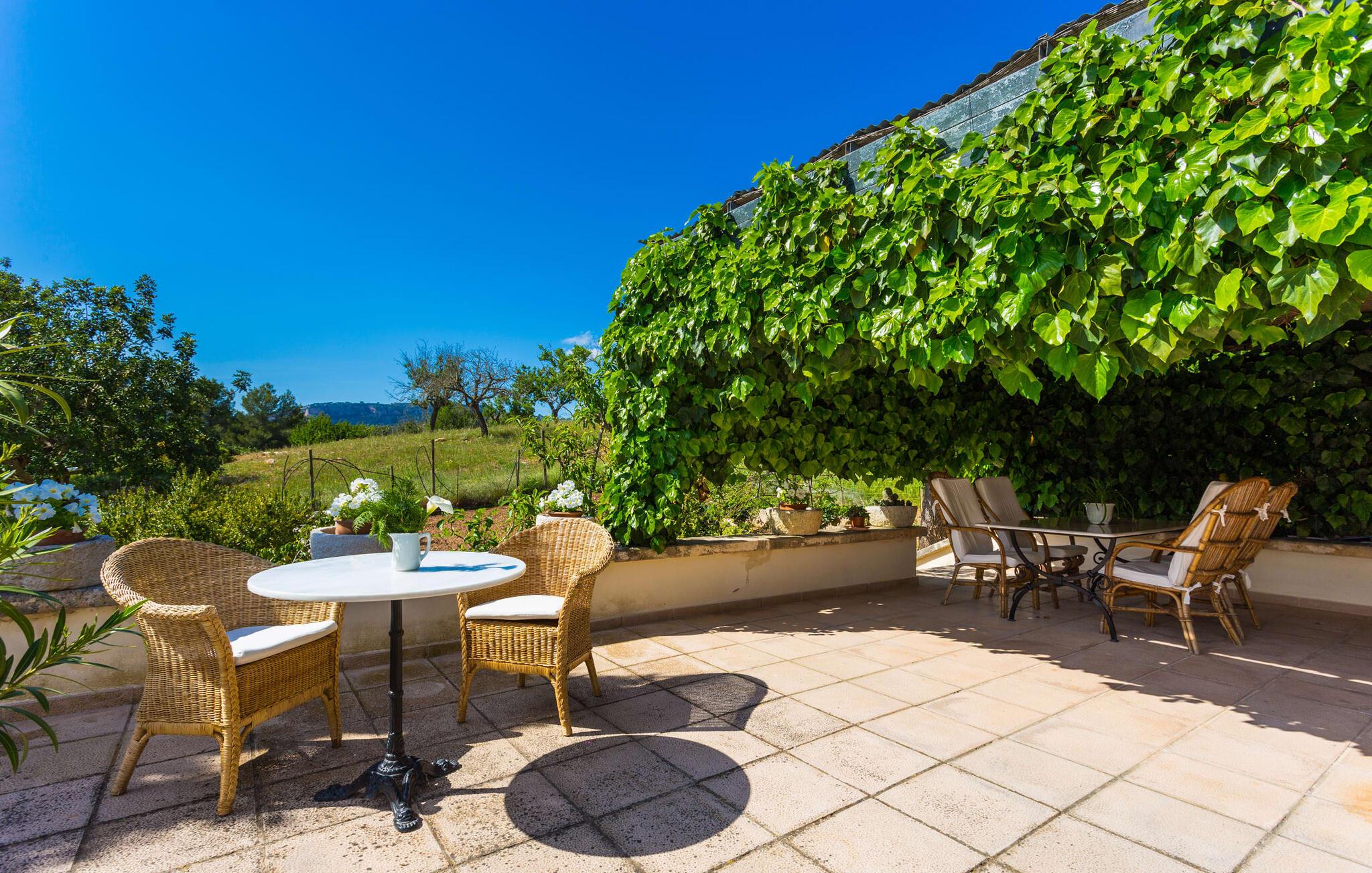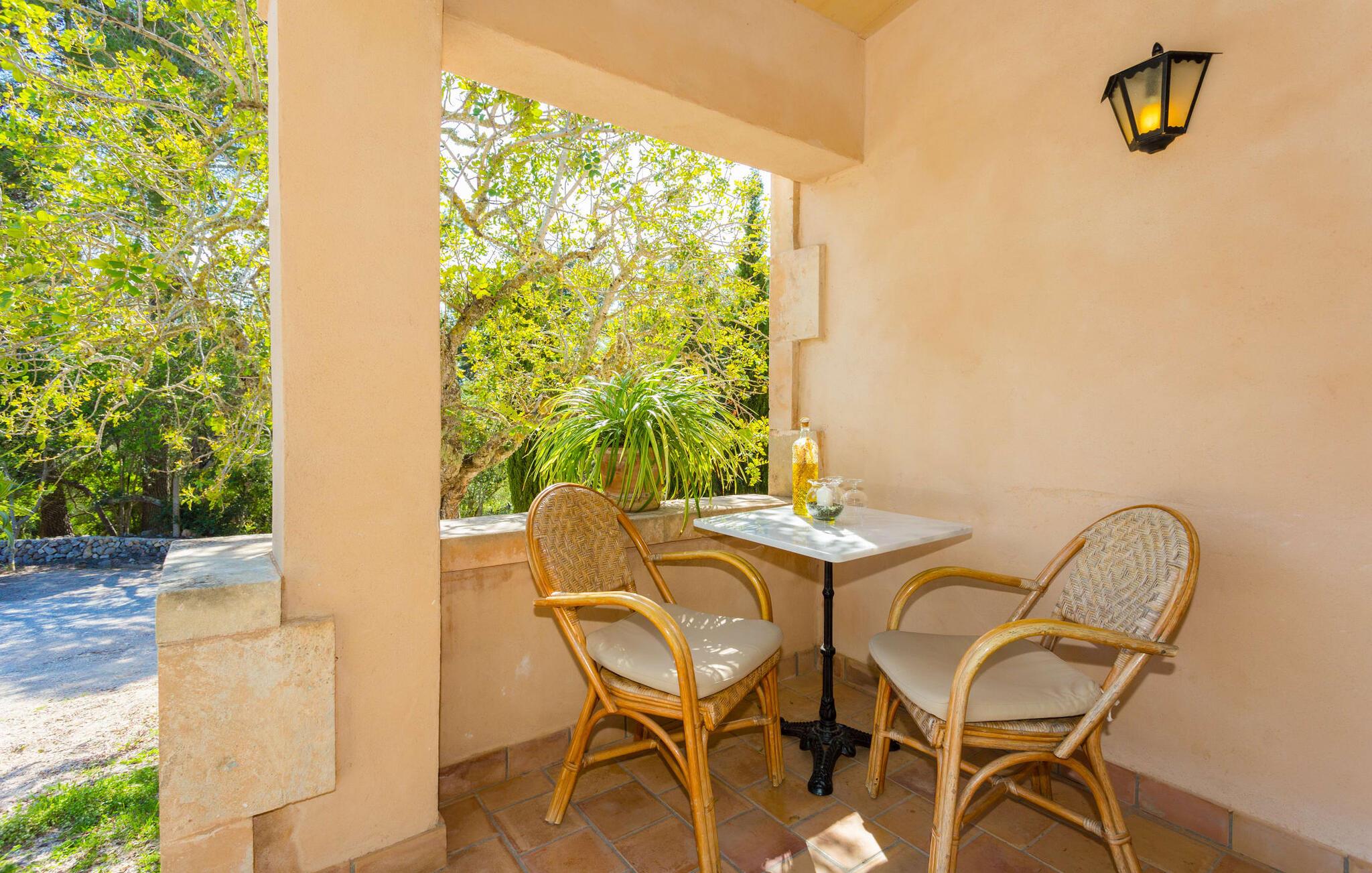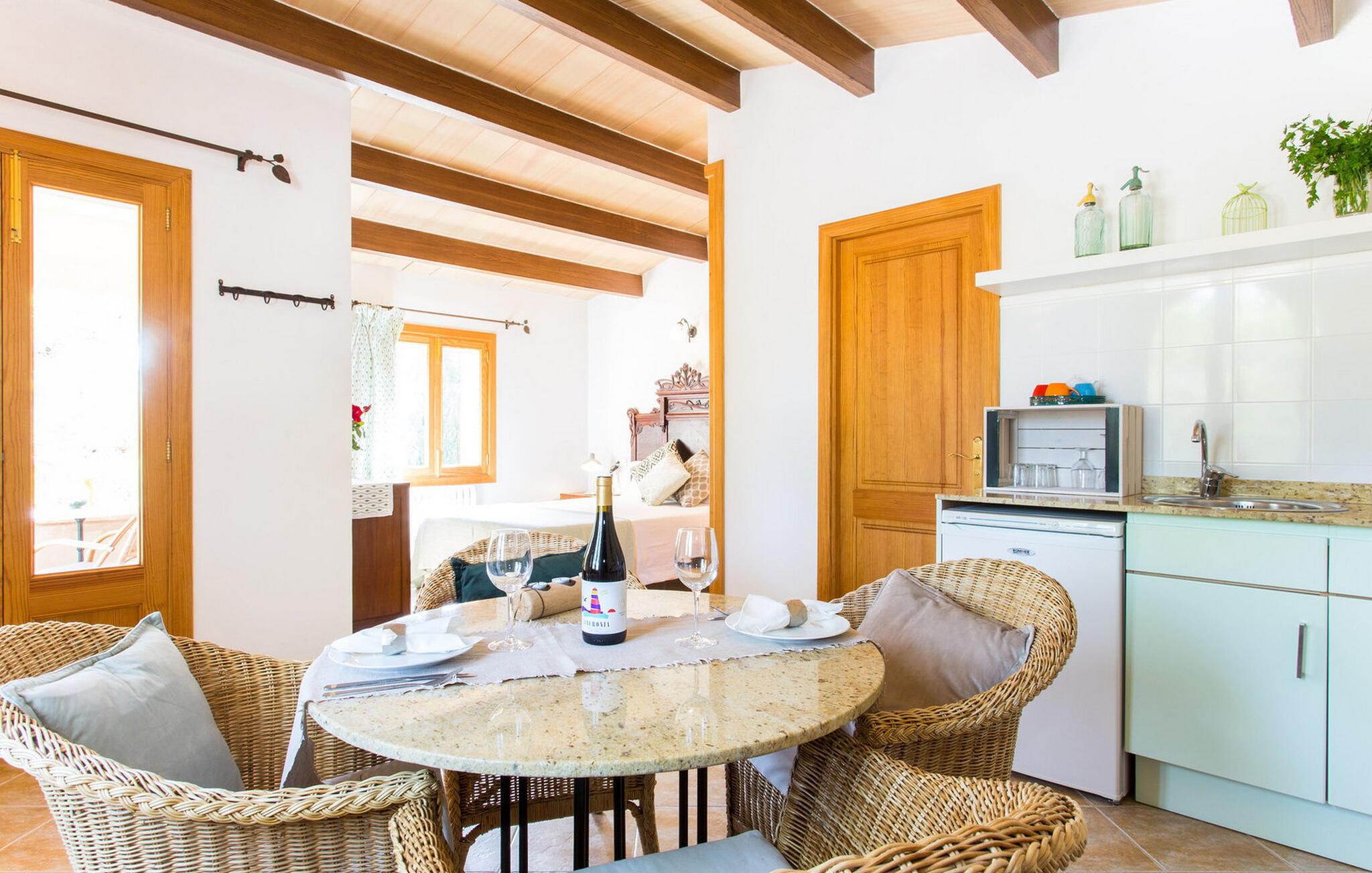 Den idylliske landejendom "Perola", i en meget rolig beliggenhed med seks hektar jord, har været i familien siden 1920. Det åbnede i 1996 som et landligt hotel for gæster fra Spanien og udlandet. Her vil I blive passet godt på Personlig og kærlig pleje vil give jer mulighed for at lære Mallorca at kende fra sin mest autentiske side og slappe af og sætte farten ned midt i naturen. Se fåreflokken gå forbi eller gå en tur gennem de duftende haver med appelsin-, mandel- og figentræer. Mange omhyggeligt restaurerede møbler og landbrugsudstyr fra "Perolas" tidlige dage er bevaret i hotellets indre og ydre, hvilket giver huset en særlig flair. Forbindelsen her er umiskendelig: bæredygtighed og økoturisme er i fokus! Filtreret spildevand bruges til at vande ejendommens landbrugsjord og solenergi bruges til at generere elektricitet. Hvis I gerne vil nyde bordservering, serverer hotellet middag fra mandag til fredag med sæsonens friske råvarer. Det eneste I skal gøre er at give hotellet besked en dag i forvejen. Der er gratis WiFi på hotellets fællesområder. I "Perola Uno" bor I alene eller som par i en kærligt møbleret lejlighed. Det lille stenhus ligger separat på den ene side af hovedbygningen. I kan sørge for jer selv: med et soveværelse (dobbeltsengen er 1,50 m bred), opholdsområde med kurvestole, TV, brusebad og tekøkken (med køleskab og keramisk kogeplade); Men en generøs morgenbuffet med specialiteter fra Mallorca og friske produkter fra den in-house økologiske gård er også inkluderet i prisen og sikrer den perfekte feriemorgen. Og hvis I vil fordybe jer fuldt ud i det søde liv, bør I helt sikkert prøve mandelkagen bagt efter en gammel opskrift og måske spise den på jeres lille veranda med udsigt over træerne eller på de polstrede stenbænke over poolen. Dette område med stor swimmingpool, udendørs bruser, solterrasse, liggestole og parasoller er et fælles område, der bruges af alle gæster. Det giver par en god mulighed for at være sammen med andre mennesker, mens de har diskrete samtaler. Enhver, der nogensinde har oplevet den intime atmosfære på et landhotel, vil måske aldrig tage andre steder hen igen. Ikke desto mindre er det værd at tage skridtet. I det mindste på markedsdage bør I tage ud for at købe frisk frugt og grøntsager. Fra centrum af øen kan I til enhver tid køre i alle retninger. Når (grøntsags)markedet i Llucmajor er åbent, skal I helt sikkert tage dertil for at se, dufte og smage, drikke en cortado i den historiske Café Colón på Plaza España og beundre en af de smukkeste bygninger på øen fra 1920'erne. Det nærliggende 542 m høje bjerg Puig de Randa byder også på en vidunderlig udsigt og en seværdig stigning... Generelt er øens centrum en region for feinschmeckere. I Porreres kan I få abrikoser dyppet i chokolade. Campos er kendt for sine mandelcroissanter. Fremragende restauranter som L'Escrivania, Mirador de Cabrera nær Cala Pí eller Es Reco de Randa tilbyder mange muligheder for at nyde. Derudover byder sydkysten fra Sa Ràpita til Cala Santanyí på fantastiske strande og muligheder for at begive sig ud til havet. Tag båden fra Colònia de Sant Jordi til "gedeøen" Cabrera. I hjertet af Mallorca, midt i et grønt bakket landskab mellem Porreres og Llucmajor, tilbyder det næsten århundrede gamle, familiedrevne, landlige agroturismo-hotel "Perola" "Perola Uno", hvor I kan tilbringe en vidunderlig rolig ferie i naturen . Supermarkeder, landmandsmarkeder, caféer og restauranter ligger kun 6 km væk. På en halv time kan I være i centrum af Palma og på hovedstadens populære strande. I kan også lige så hurtigt nå den idylliske sandbugt Cala Pí og naturreservaterne Playa Sa Ràpita og Playa Es Trenc.