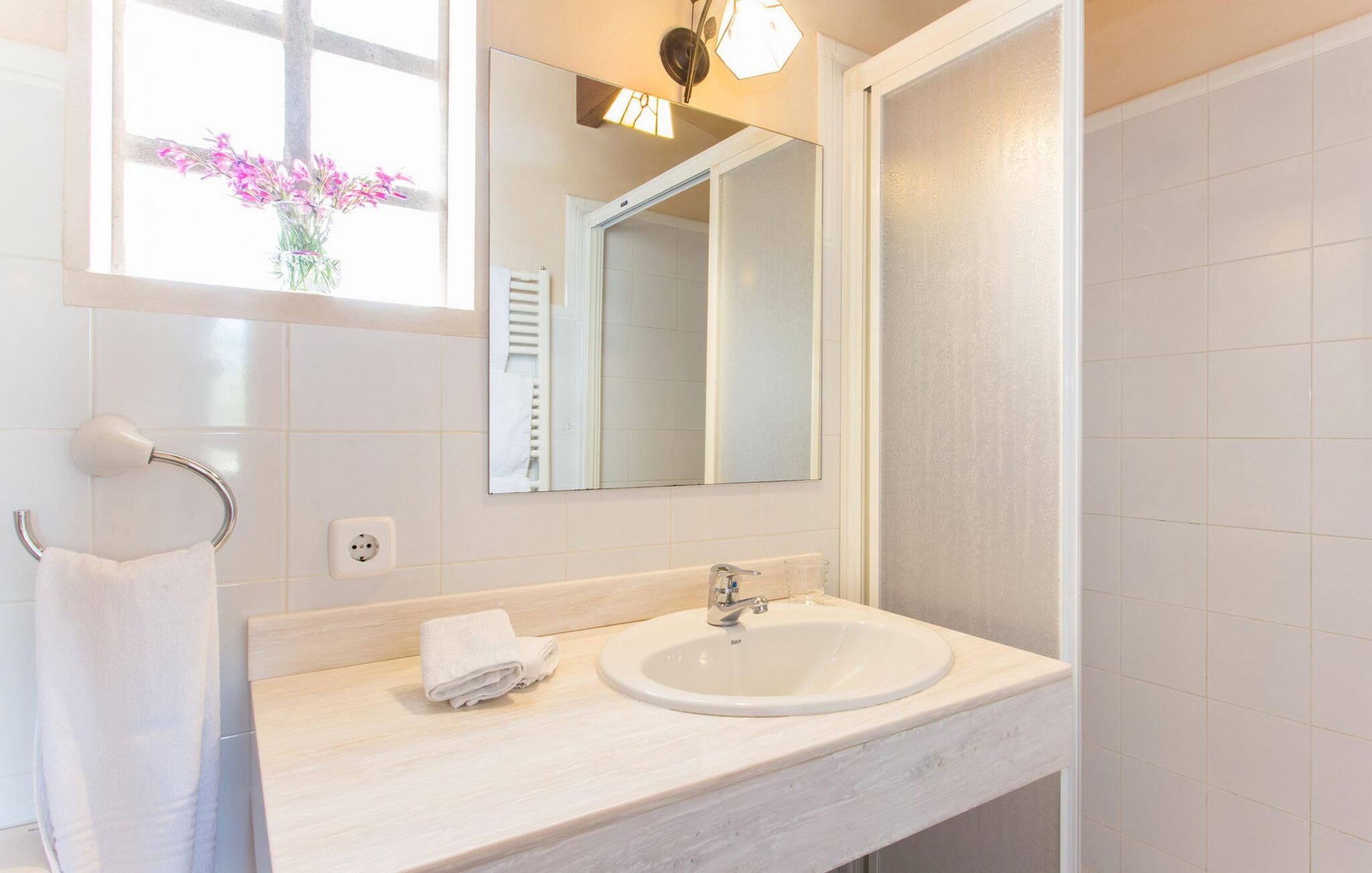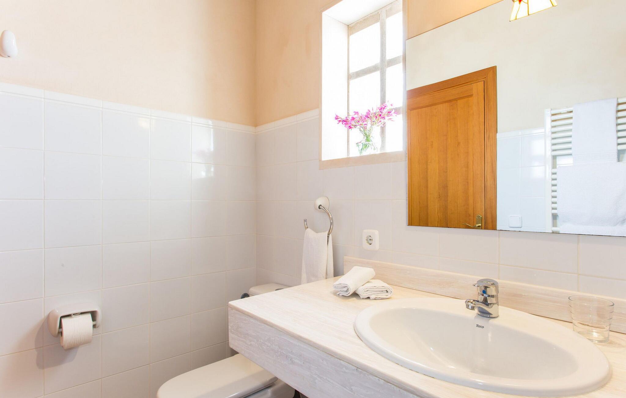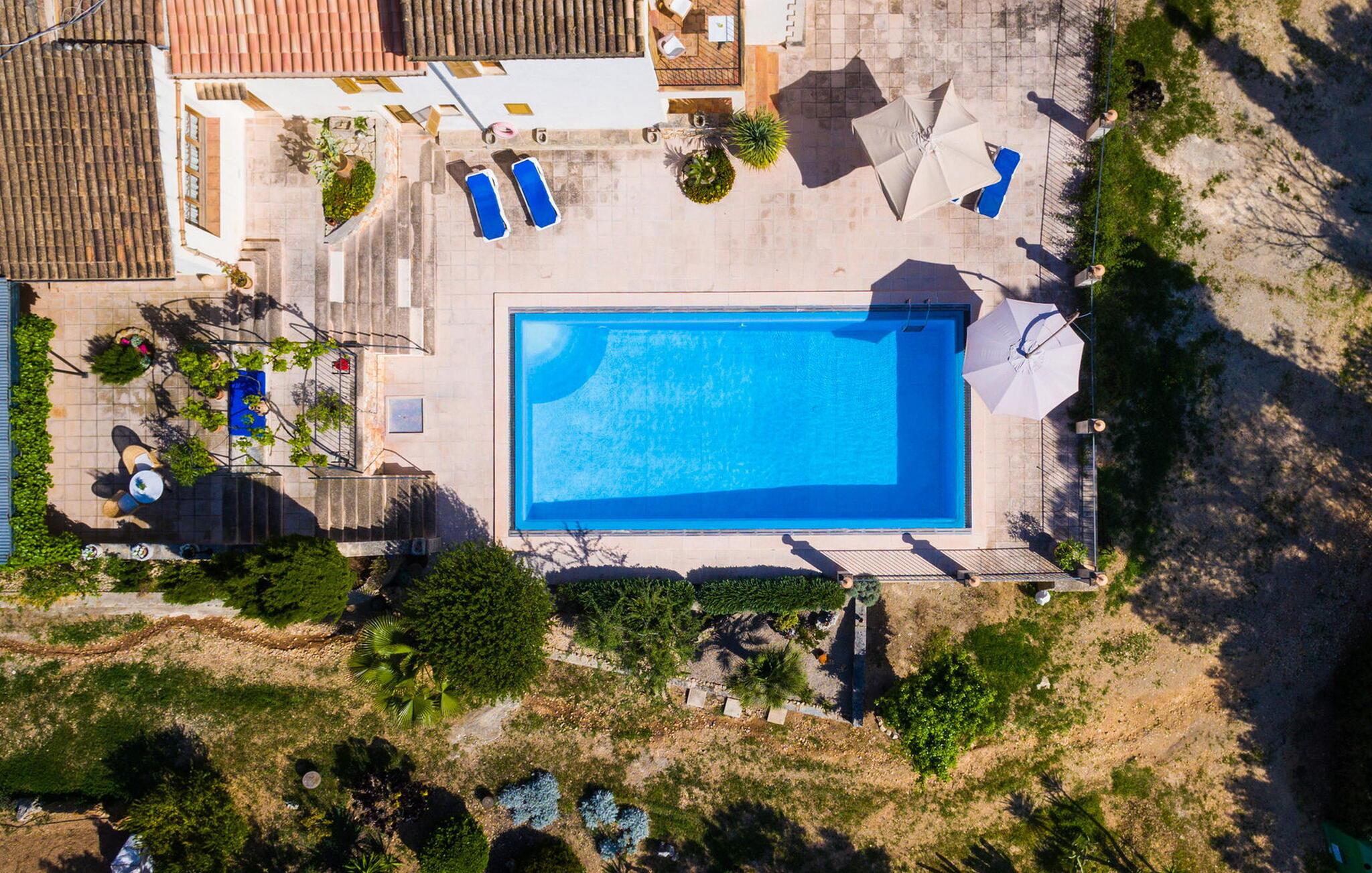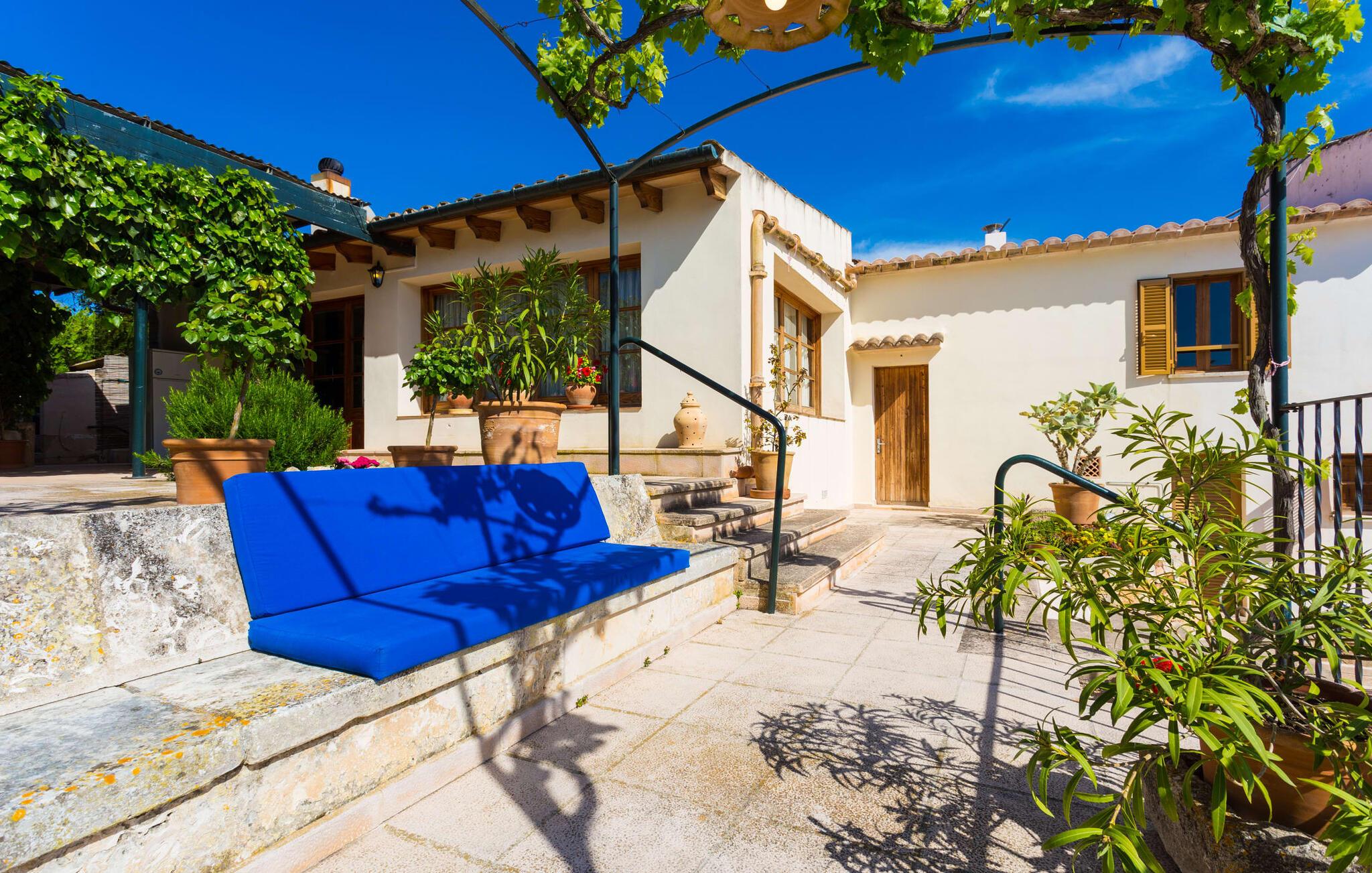Den idylliske landejendom "Perola", i en meget rolig beliggenhed med seks hektar jord, har været i familien siden 1920. Det åbnede i 1996 som et landligt hotel for gæster fra Spanien og udlandet. Her vil I blive passet godt på Personlig og kærlig pleje vil give jer mulighed for at lære Mallorca at kende fra sin mest autentiske side og slappe af og sætte farten ned midt i naturen. Se fåreflokken gå forbi eller gå en tur gennem de duftende haver med appelsin-, mandel- og figentræer. Mange omhyggeligt restaurerede møbler og landbrugsudstyr fra "Perolas" tidlige dage er bevaret i hotellets indre og ydre, hvilket giver huset en særlig flair. Forbindelsen her er umiskendelig: bæredygtighed og økoturisme er i fokus! Filtreret spildevand bruges til at vande ejendommens landbrugsjord og solenergi bruges til at generere elektricitet. Hvis I gerne vil nyde bordservering, serverer hotellet middag fra mandag til fredag med sæsonens friske råvarer. Det eneste I skal gøre er at give hotellet besked en dag i forvejen. Der er gratis WiFi på hotellets fællesområder. I "Perola Uno" bor I alene eller som par i en kærligt møbleret lejlighed. Det lille stenhus ligger separat på den ene side af hovedbygningen. I kan sørge for jer selv: med et soveværelse (dobbeltsengen er 1,50 m bred), opholdsområde med kurvestole, TV, brusebad og tekøkken (med køleskab og keramisk kogeplade); Men en generøs morgenbuffet med specialiteter fra Mallorca og friske produkter fra den in-house økologiske gård er også inkluderet i prisen og sikrer den perfekte feriemorgen. Og hvis I vil fordybe jer fuldt ud i det søde liv, bør I helt sikkert prøve mandelkagen bagt efter en gammel opskrift og måske spise den på jeres lille veranda med udsigt over træerne eller på de polstrede stenbænke over poolen. Dette område med stor swimmingpool, udendørs bruser, solterrasse, liggestole og parasoller er et fælles område, der bruges af alle gæster. Det giver par en god mulighed for at være sammen med andre mennesker, mens de har diskrete samtaler. Enhver, der nogensinde har oplevet den intime atmosfære på et landhotel, vil måske aldrig tage andre steder hen igen. Ikke desto mindre er det værd at tage skridtet. I det mindste på markedsdage bør I tage ud for at købe frisk frugt og grøntsager. Fra centrum af øen kan I til enhver tid køre i alle retninger. Når (grøntsags)markedet i Llucmajor er åbent, skal I helt sikkert tage dertil for at se, dufte og smage, drikke en cortado i den historiske Café Colón på Plaza España og beundre en af de smukkeste bygninger på øen fra 1920'erne. Det nærliggende 542 m høje bjerg Puig de Randa byder også på en vidunderlig udsigt og en seværdig stigning... Generelt er øens centrum en region for feinschmeckere. I Porreres kan I få abrikoser dyppet i chokolade. Campos er kendt for sine mandelcroissanter. Fremragende restauranter som L'Escrivania, Mirador de Cabrera nær Cala Pí eller Es Reco de Randa tilbyder mange muligheder for at nyde. Derudover byder sydkysten fra Sa Ràpita til Cala Santanyí på fantastiske strande og muligheder for at begive sig ud til havet. Tag båden fra Colònia de Sant Jordi til "gedeøen" Cabrera. I hjertet af Mallorca, midt i et grønt bakket landskab mellem Porreres og Llucmajor, tilbyder det næsten århundrede gamle, familiedrevne, landlige agroturismo-hotel "Perola" "Perola Uno", hvor I kan tilbringe en vidunderlig rolig ferie i naturen . Supermarkeder, landmandsmarkeder, caféer og restauranter ligger kun 6 km væk. På en halv time kan I være i centrum af Palma og på hovedstadens populære strande. I kan også lige så hurtigt nå den idylliske sandbugt Cala Pí og naturreservaterne Playa Sa Ràpita og Playa Es Trenc.