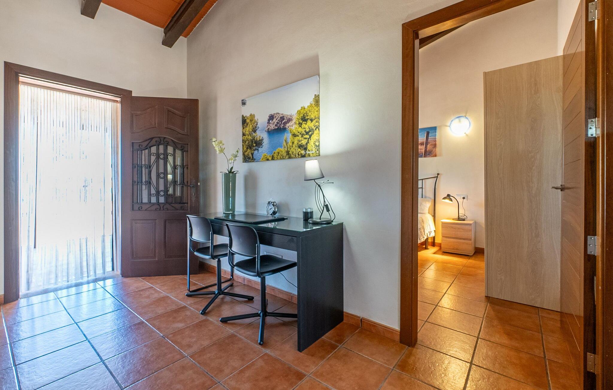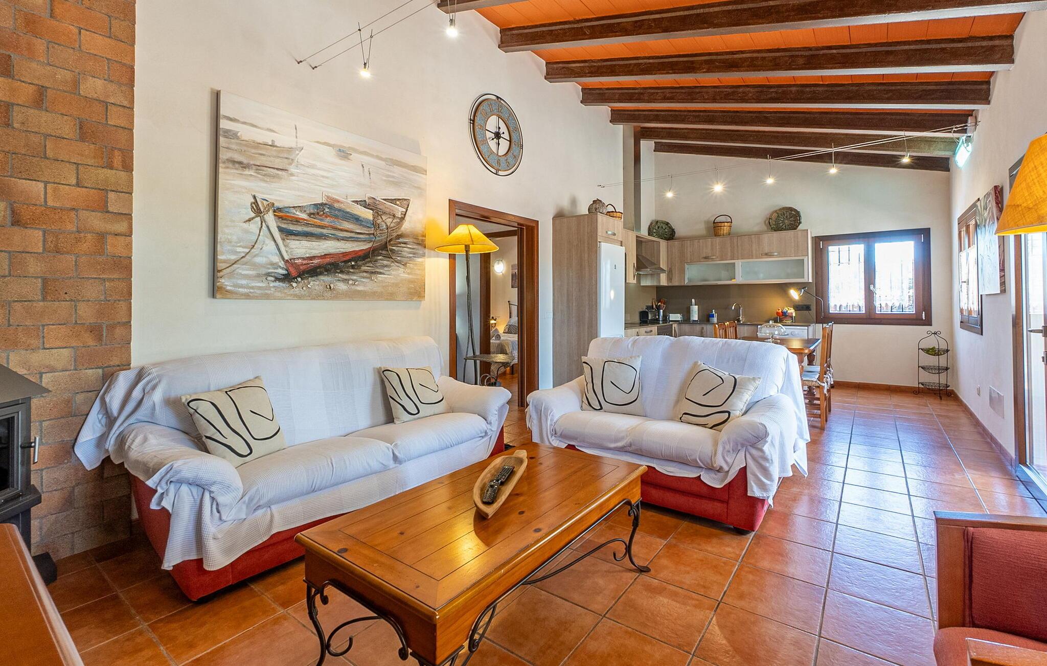 Farvel, hjem – hej, helligdage: Pak kufferten! Den hyggelige og familievenlige villa "Petit Son Baulo" venter på jer på den nordlige del af øen. Lille, men kraftfuld: jeres hjem scorer med sin nærhed til havet og til en moderat pris. Villaen har en rolig beliggenhed og den rummelige ejendom er både en oase af ro og en legeplads. En lille del af den er udstyret med stedsegrønt kunstgræs. De voksne slapper af på de komfortable liggestole og læser deres yndlingsbøger, mens børnene gynger, boltrer sig i haven eller spiller et livligt spil tennis. Hvis I nogensinde føler jer lidt sulten, har I en gang imellem en energisnack klar til at aflevere frugtplantagen. I den enkle pool bliver vandkampen under den mallorcanske sol et forfriskende eventyr. På en af de to overdækkede terrasser vil I med sikkerhed finde et glimrende sted at sidde - enten i gyngestolen eller i de komfortable kurvestole - og fylde jeres tallerken med lokale delikatesser fra kulgrillen eller blot nyde et lille glas fint mallorcansk vin. Den udvendige trappe fører direkte til tagterrassen - så I ikke kun er lidt tættere på solen, men også på himlen - selvom I allerede er i paradis. Udover absolut privatliv kan I nyde en betagende udsigt i det fjerne - endda direkte over havet, hvis I ønsker det. Familietid er værdifuld tid: at grille, chatte, have det sjovt. Dette er en ferie i en afslappet atmosfære i villaen "Petit Son Baulo". De to funktionelle soveværelser, det åbne køkken-alrum med satellit-tv og badeværelset med badekar er indrettet i typisk mallorcansk stil. Søde drømme venter forældrene i soveværelset med en dobbeltseng (1,50 x 1,90 m), og der er nok opbevaringsplads til jeres indkøbstrofæer. Afsted i seng: Det andet soveværelse med to enkeltsenge giver børnene plads nok til en sjov pudekamp, men selvfølgelig også til badebukser osv. Hele banden bor og spiser i den hyggelige stue og spisestue. For livet kredser alligevel om kogegryden – som man siger: “Vejen til hjertet går gennem maven”. Køkkenet er moderne og fuldt udstyret med opvaskemaskine. I kan tilbringe aftenen med at putte eller se tv sammen i sofaerne i opholdsstuen. Et elegant badeværelse er tilgængeligt for hele familien - er der trafikprop eller lang ventetid, giver det udendørs badeværelse med bruser hurtigt aflastning. Byen Can Picafort lover sommer, sol og sjov og ligger kun omkring 5 km væk - uanset om I er på vej til det ugentlige marked, en restaurant eller en butik. Byen Alcúdia er en smuk turistattraktion. Den arabiske bymur omkranser et historisk bycentrum, i hvis gågade adskillige butikker tilbyder lokale produkter. Den 1.700 hektar store S'Albufera Naturpark ligger lige ved siden af villaen og er det største vådområde på De Baleariske Øer. 200 arter af fugle og skildpadder lever der. Naturligvis er og forbliver den største magnet for besøgende de smukke strande: Son Baulo, Alcúdia-bugten, Can Picafort og Son Real kan nås med bil på få minutter og byder på svømmesjov for hele familien. Idyllisk på landet og alligevel tæt på havet: dette er feriekoordinaterne for den rolige familievilla "Petit Son Baulo" i Santa Margalida kommune. Med en is i hånden og et badehåndklæde i rygsækken går I direkte til havet - det er kun 2 km til fods, men centrale indkøbs- og indkøbssteder i Can Picafort ligger også kun 5 km væk.