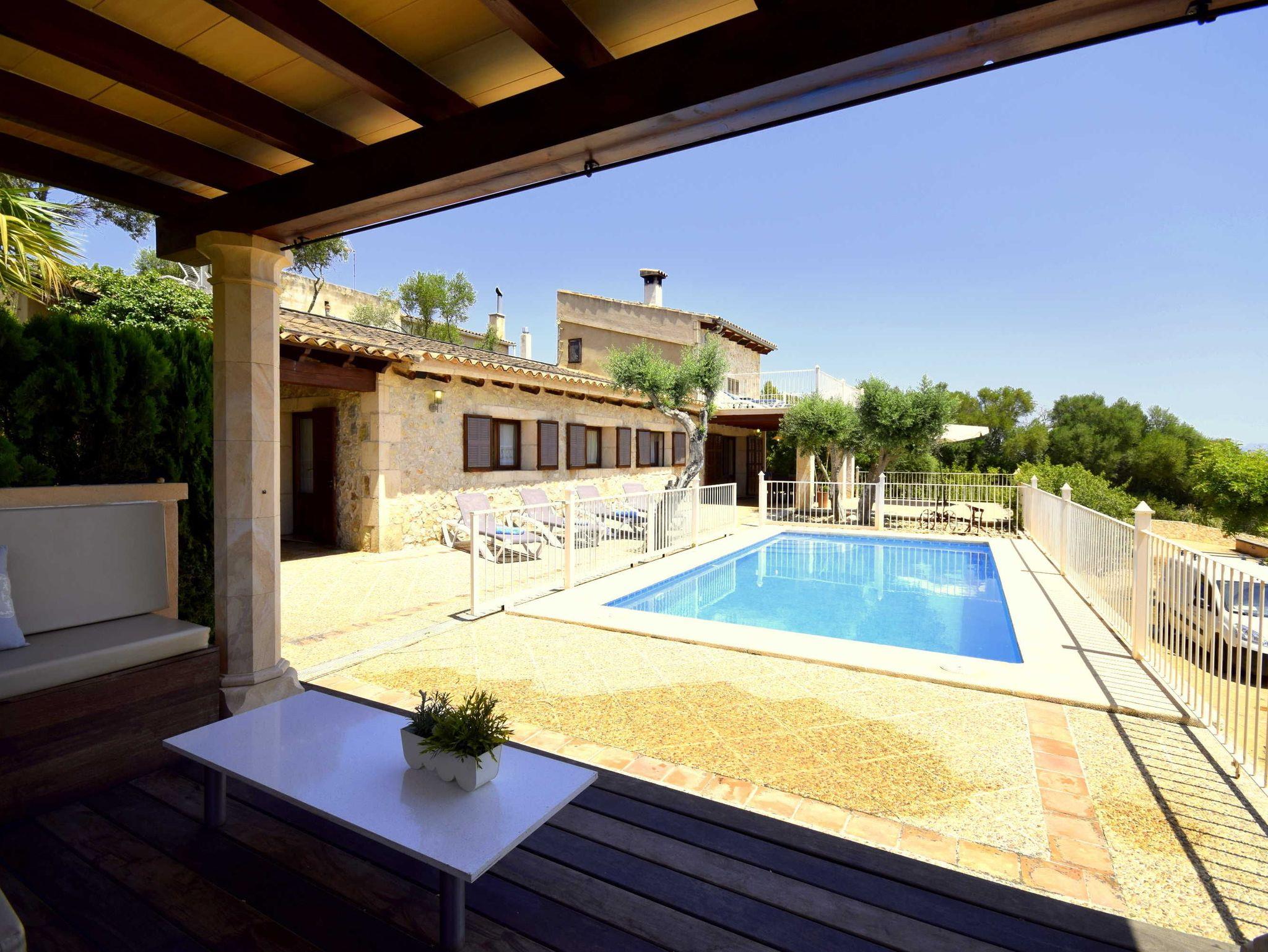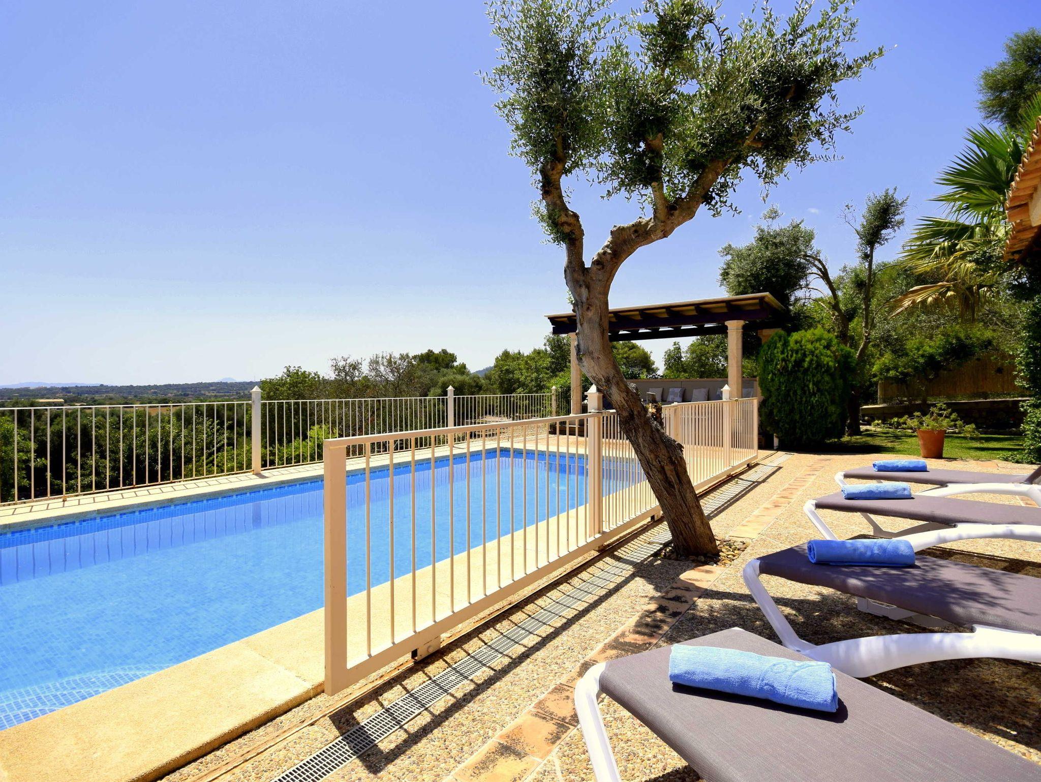 Sehr ruhig gelegene Finca Sa Font bei Petra, Pool Panoramaweitblick, Ortsnah.3 Schlafzimmer, eines davon klimattisiert, 2 Bäder, 1 x en Suite, Pool kindersicher abgeteilt, 6 Pers.Dieses typische, sehr gepflegte mallorquinische Landhaus wurde von den Eigentümern mit viel Liebe zum Detail restauriert und modernisiert. Durch die leicht erhöhte Lage des Hauses,bietet sich von den teilweise überdachten Terrassen ein wunderschöner Weitblick auf Petra und die dahinter liegende Insel. Im Inneraum setzt sich die gestalterische Linie mit mediteranen Flair fort. Vom großen Wohn-/Esszimmer mit Kamin und Kaminofen gelangt man in die Küche, die ebenfalls einen Terrassenzugang hat. Eines der Bäder liegt in einem Flur im EG zwischen 2 Schlafzimmern, wovon eines ebenfalls direkten Terrassenzugang hat. Eine Treppe führt aus dem Wohnzimmer zum 3. klimatisiertem Schlafzimmer mit Bad en Suite und eigener Terrasse. Die Qualität und Verarbeitung der materialien, die erhabene Lage geben hier vom ersten Moment an das Gefühl der Geborgenheit und Ruhe. Der Pool ist kindersicher eingezäunt. Selbstverständlich gibt es einen Aussengrill sowie Spielflächen im Garten und den angrenzenden Grünflächen.
