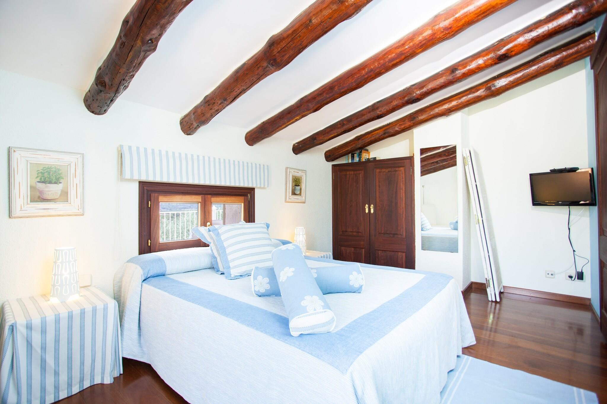 Slap af i private landlige omgivelser med en funklende 7,5 x 3,5 m pool, perfekt til forfriskende svømmeture under solen. Liggestolene ved poolen, det skyggefulde afslapningshjørne og den møblerede veranda skaber rum til både afslapning og udendørs spisning. Omgivet af mallorcanske marker og fuldstændig privatliv indbyder hjemmets udendørsområder til langsomme morgener med kaffe, aftencocktails og alfresco-måltider. En indhegnet grund sikrer ro i sindet, mens en indbygget grill og bordtennisbord bidrager til fritidsmulighederne. Villaen blander rustikke detaljer med moderne bekvemmeligheder på tværs af to rummelige etager. I stueplan er der en spisestue med charmerende detaljer, herunder en indvendig brønd, der flyder ind i en stue med pejs og satellit-tv. Det fuldt udstyrede køkken omfatter gaskomfur, ovn, opvaskemaskine og morgenmadshjørne, mens et separat vaskeri tilføjer bekvemmelighed. Tre indbydende soveværelser giver afslappende ophold: to i stueetagen (en dobbelt, en tvilling) og en master på første sal med en-suite bruser og aircondition. Beliggende nær landsbyen Petra, kan gæsterne udforske traditionelle gader, besøge Junípero Serra-museet eller spise på lokale restauranter. Inden for en kort køretur kan du nyde sandstrandene i Can Picafort eller en runde golf på Rotana. Palma, kun 40 km væk, byder på shopping, restauranter og kulturelle seværdigheder. Væsentlige tjenester, transportforbindelser og supermarkeder er tæt på, hvilket gør villaen til en velplaceret base for et afslappende, men alligevel forbundet ophold.