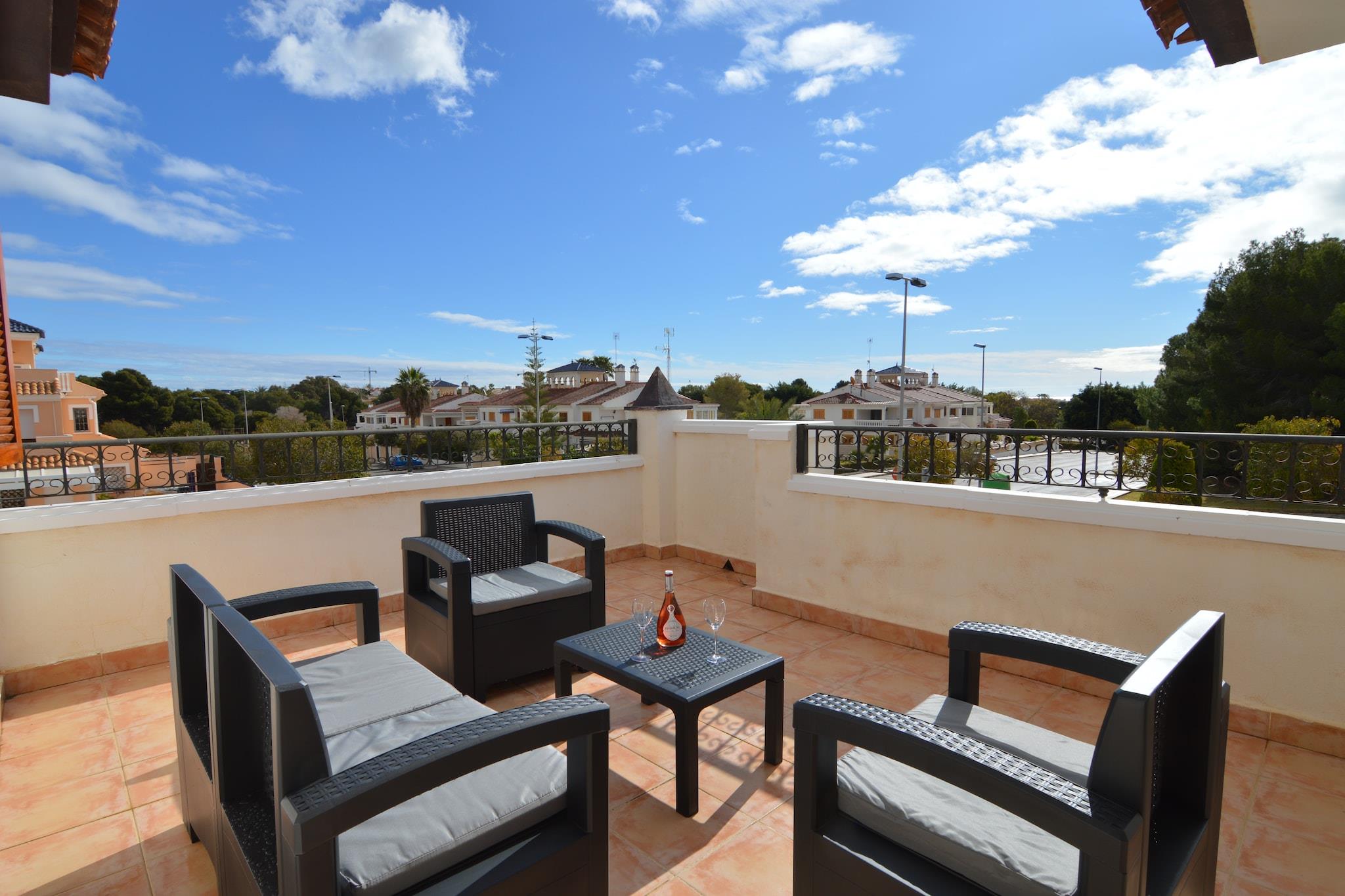 Dette feriehus med 3 soveværelser i Pilar de la Horadada har en fælles swimmingpool, aircondition og vinterhave og er perfekt til en gruppe på 6 personer eller familier med børn, der ønsker at nyde et ophold nær stranden. Stranden ligger i nærheden, 700 m væk. Det blå hav og strandsandet byder velkommen til en gåtur langs kysten. Strandbyen Torrevieja ligger 15 km væk for en sjov dag. Planlæg en bådtur til øen Tabarca, og andre muligheder for dagsture er byerne Alicante og Murcia. Du kan finde basale faciliteter som supermarkeder og restauranter 500 m væk, og for underholdning er der nattelivet 500 m væk. Slap af i grønne omgivelser og nyd det spanske klima og den smukke havudsigt. Hjemmet opretholder en behagelig temperatur med aircondition. Du kan se tv i stuen/spisestuen og tilbringe tid indendørs. Sportsentusiaster kan spille tennis. Børnene vil være hjemme med børneseng, højstol og legeredskaber. Lufthavnen ligger 60 km væk, og motorvejen ligger 5 km væk.