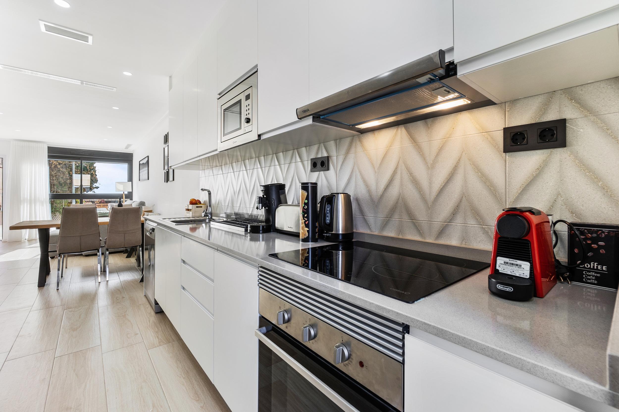 Der neu erbaute Wohnkomplex besticht durch seine helle und hochwertige Einrichtung sowie ansprechende Dekoration. Er lädt nicht nur zum Entspannen auf dem bequemen Sofa ein, sondern auch zu gemeinsamen Familienmahlzeiten im gemütlichen Esszimmer. Des Weiteren können Sie zu zweit im Infinity-Pool auf einer der Terrassen mit atemberaubendem Meerblick entspannen. Der Pool wird mit zwei anderen Parteien gemeinschaftlich genutzt.