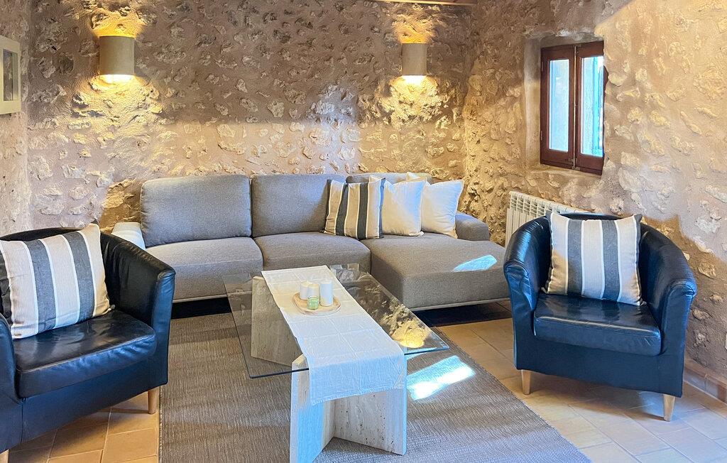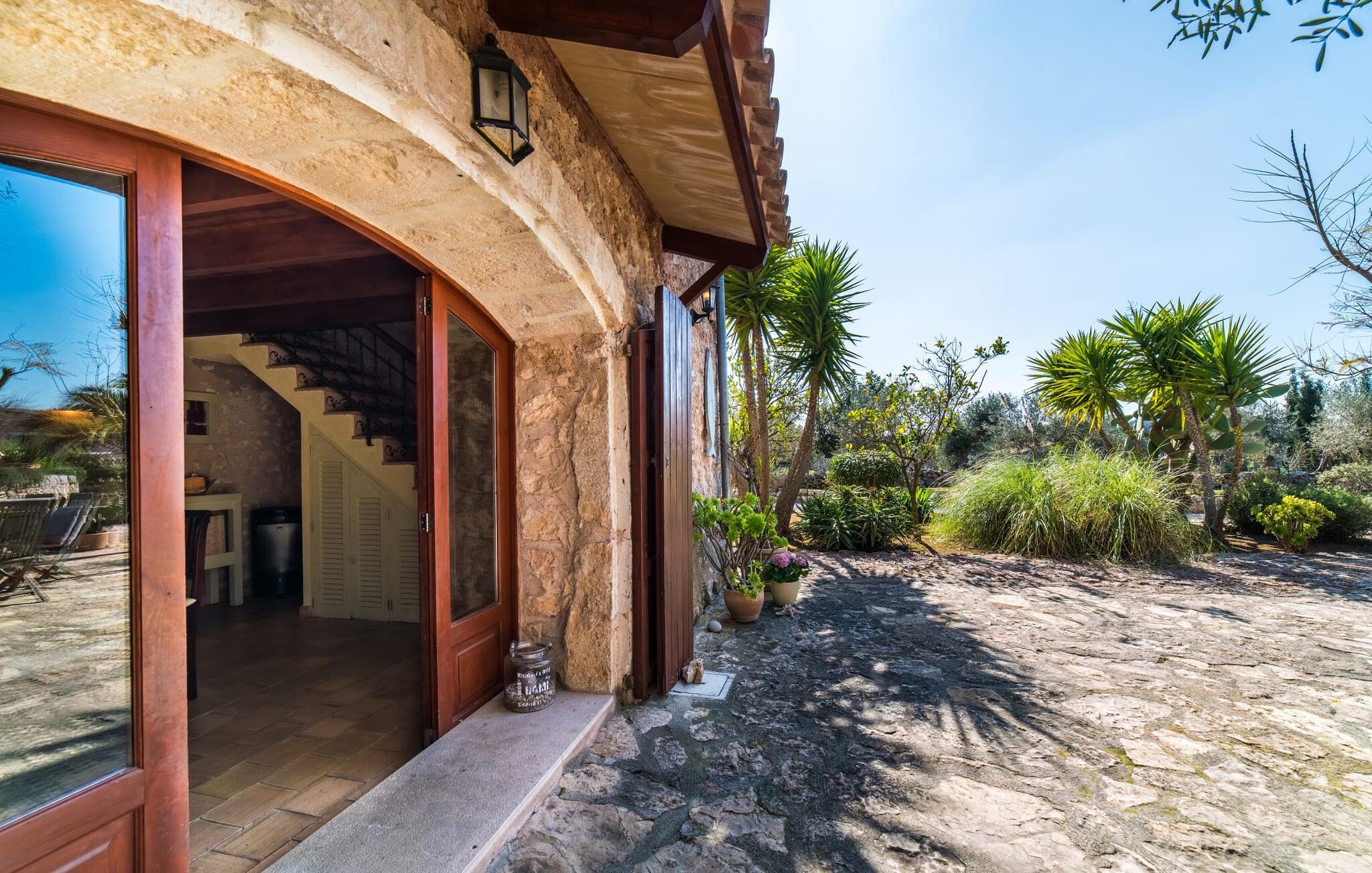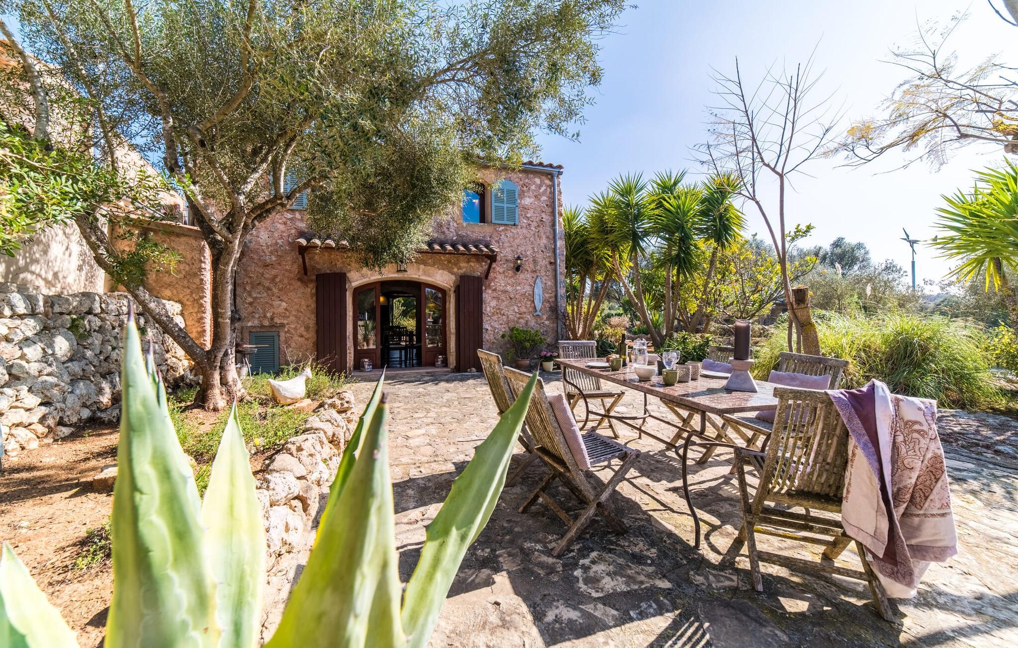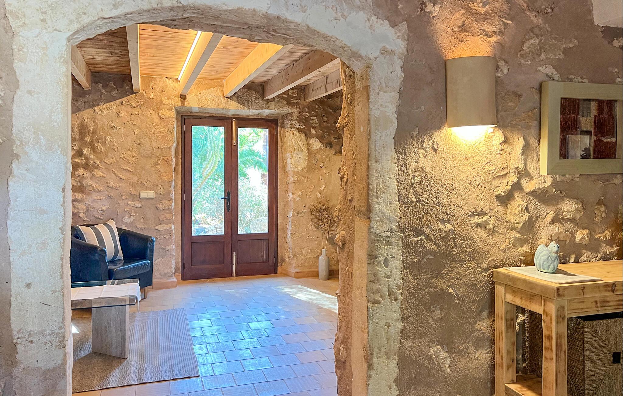 Villa "Pina" er en smukt renoveret 400 år gammel bondegård, beliggende i en fantastisk middelhavshave. Oplev den unikke charme af denne originale villa, forstærket af moderne alternative energiløsninger, der sikrer et bæredygtigt ophold uden at ofre komfort citrustræer, lavendel- og oleanderlunde, ejendommen ligger i udkanten af et naturreservat. det frodige grønne område skaber en klassisk middelhavsatmosfære Villaen har et idyllisk terrasselandskab med fire indbydende udendørs siddepladser, forbundet med dekorative stentrapper. Nyd spisning eller drinks på det højeste punkt, som byder på en betagende udsigt , suppleret med et børnebassin til sikker sprøjtning Indvendigt skaber naturstenselementer, synlige bjælker og typiske mallorcanske fliser en varm, indbydende atmosfære. Slap af i stuen med læderlænestole eller nyd en film på det store fladskærms-tv. Det fuldt udstyrede køkken og rummelige spiseplads gør det til en fornøjelse at tilberede måltider. Tre hyggelige soveværelser sikrer afslappende nætter, mens to moderne badeværelser sikrer komfort. Villa "Pina" er perfekt for alle, der leder efter et idyllisk tilflugtssted på Mallorca. Den betagende naturstensvilla "Pina" er beliggende i en absolut rolig beliggenhed mellem Sencelles og Costitx og er omgivet af et blidt bølgende landskab. Costitx har et supermarked, barer, restauranter og et fantastisk bageri og er kun omkring fem minutters kørsel væk. Ejendommens bekvemme beliggenhed tillader ture til mange af øens strande som Es Penyo, Ciudad Jardin og også Alcúdia-bugten.