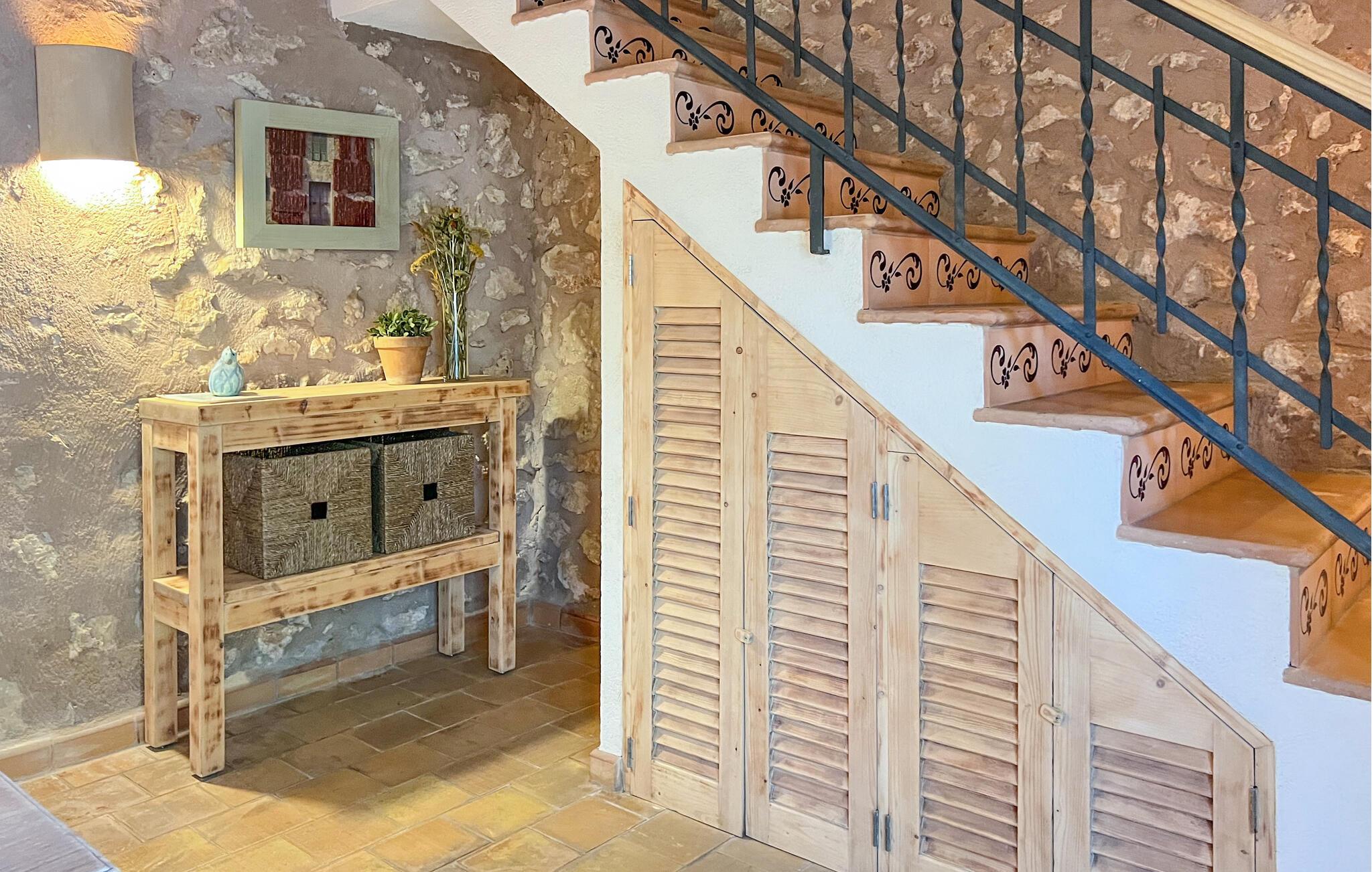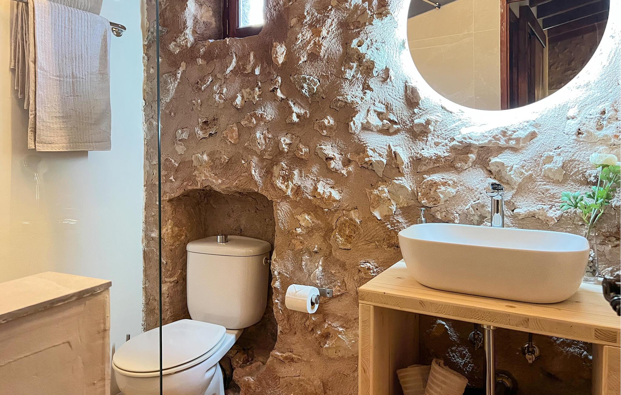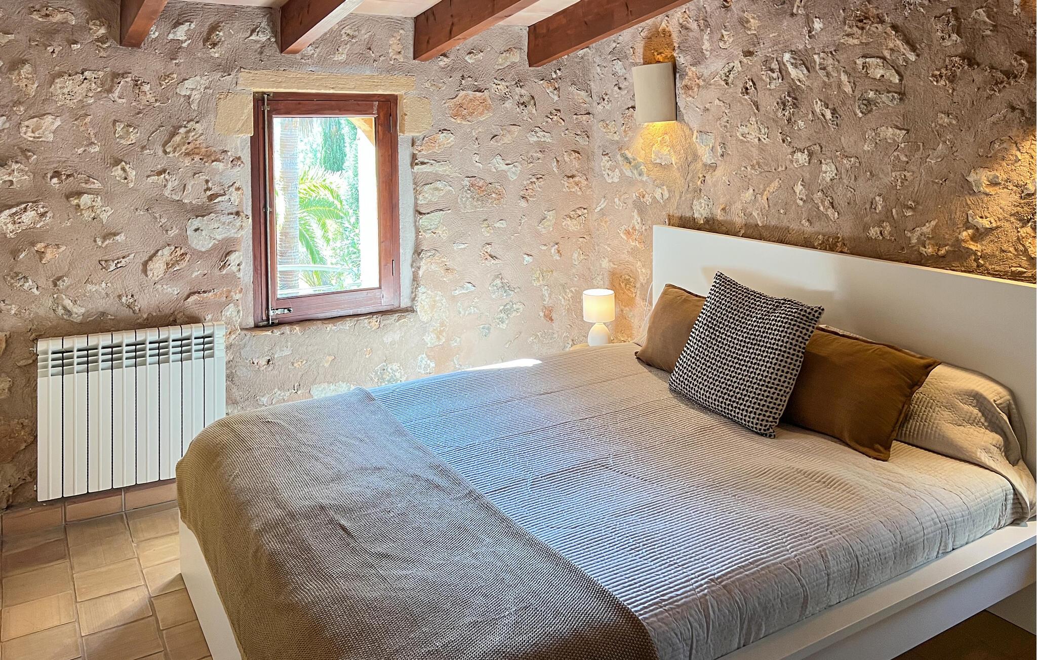 Villa "Pina" er en smukt renoveret 400 år gammel bondegård, beliggende i en fantastisk middelhavshave. Oplev den unikke charme af denne originale villa, forstærket af moderne alternative energiløsninger, der sikrer et bæredygtigt ophold uden at ofre komfort citrustræer, lavendel- og oleanderlunde, ejendommen ligger i udkanten af et naturreservat. det frodige grønne område skaber en klassisk middelhavsatmosfære Villaen har et idyllisk terrasselandskab med fire indbydende udendørs siddepladser, forbundet med dekorative stentrapper. Nyd spisning eller drinks på det højeste punkt, som byder på en betagende udsigt , suppleret med et børnebassin til sikker sprøjtning Indvendigt skaber naturstenselementer, synlige bjælker og typiske mallorcanske fliser en varm, indbydende atmosfære. Slap af i stuen med læderlænestole eller nyd en film på det store fladskærms-tv. Det fuldt udstyrede køkken og rummelige spiseplads gør det til en fornøjelse at tilberede måltider. Tre hyggelige soveværelser sikrer afslappende nætter, mens to moderne badeværelser sikrer komfort. Villa "Pina" er perfekt for alle, der leder efter et idyllisk tilflugtssted på Mallorca. Den betagende naturstensvilla "Pina" er beliggende i en absolut rolig beliggenhed mellem Sencelles og Costitx og er omgivet af et blidt bølgende landskab. Costitx har et supermarked, barer, restauranter og et fantastisk bageri og er kun omkring fem minutters kørsel væk. Ejendommens bekvemme beliggenhed tillader ture til mange af øens strande som Es Penyo, Ciudad Jardin og også Alcúdia-bugten.
