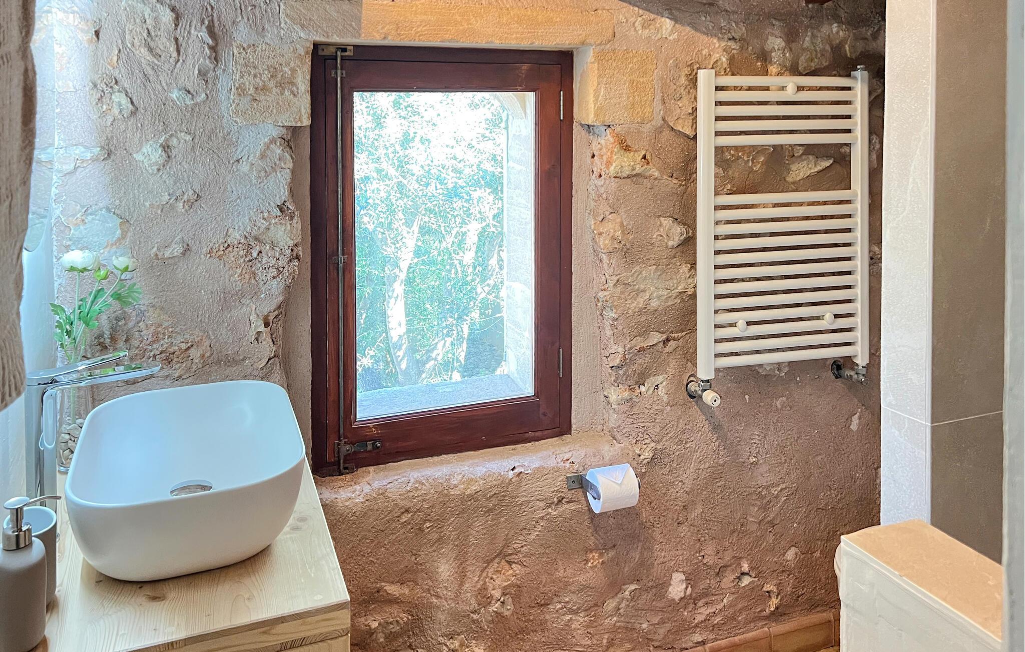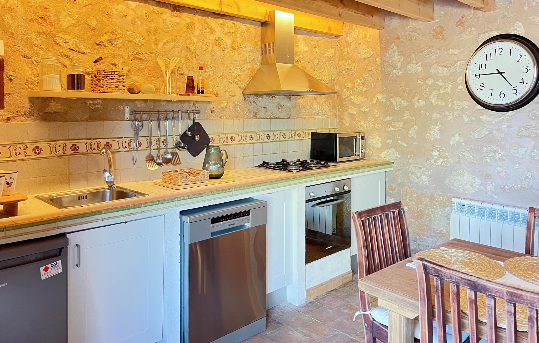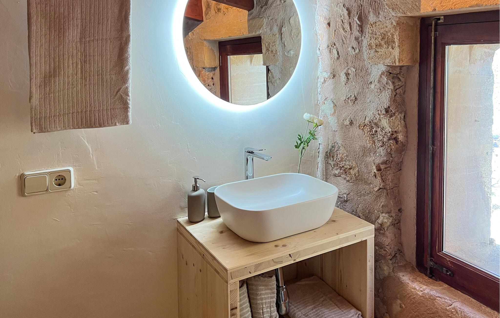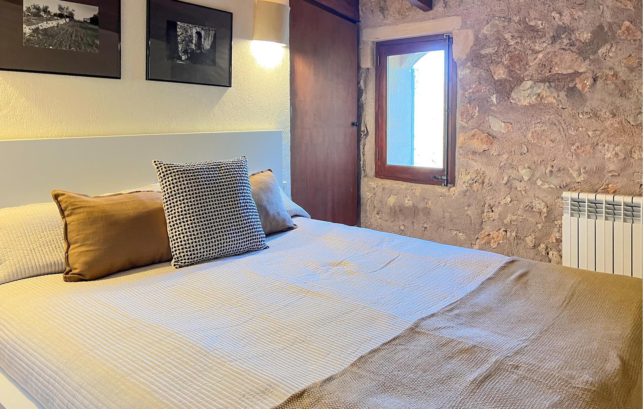 Villa "Pina" er en smukt renoveret 400 år gammel bondegård, beliggende i en fantastisk middelhavshave. Oplev den unikke charme af denne originale villa, forstærket af moderne alternative energiløsninger, der sikrer et bæredygtigt ophold uden at ofre komfort citrustræer, lavendel- og oleanderlunde, ejendommen ligger i udkanten af et naturreservat. det frodige grønne område skaber en klassisk middelhavsatmosfære Villaen har et idyllisk terrasselandskab med fire indbydende udendørs siddepladser, forbundet med dekorative stentrapper. Nyd spisning eller drinks på det højeste punkt, som byder på en betagende udsigt , suppleret med et børnebassin til sikker sprøjtning Indvendigt skaber naturstenselementer, synlige bjælker og typiske mallorcanske fliser en varm, indbydende atmosfære. Slap af i stuen med læderlænestole eller nyd en film på det store fladskærms-tv. Det fuldt udstyrede køkken og rummelige spiseplads gør det til en fornøjelse at tilberede måltider. Tre hyggelige soveværelser sikrer afslappende nætter, mens to moderne badeværelser sikrer komfort. Villa "Pina" er perfekt for alle, der leder efter et idyllisk tilflugtssted på Mallorca. Den betagende naturstensvilla "Pina" er beliggende i en absolut rolig beliggenhed mellem Sencelles og Costitx og er omgivet af et blidt bølgende landskab. Costitx har et supermarked, barer, restauranter og et fantastisk bageri og er kun omkring fem minutters kørsel væk. Ejendommens bekvemme beliggenhed tillader ture til mange af øens strande som Es Penyo, Ciudad Jardin og også Alcúdia-bugten.