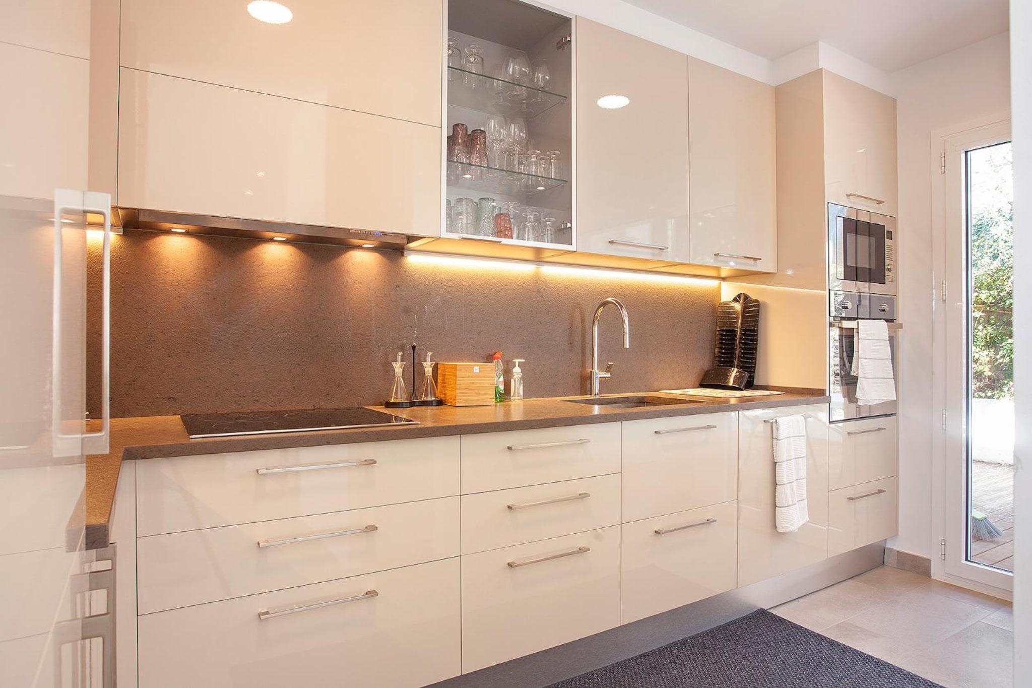 Køkken(brødrister, kaffemaskine, ovn, mikrobølgeovn, opvaskemaskine , køleskab, fryser, ), stue / spisestue(Fjernsyn, spisebord, sofahjørne), soveværelse(enkeltseng, enkeltseng), soveværelse(enkeltseng, enkeltseng), soveværelse(dobbeltseng), badeværelse(bruser), badeværelse(bruser), Internetadgang, Havemøbler, vaskemaskine, balkon, terrasse, have, grill, swimmingpool(privat), strygejern
