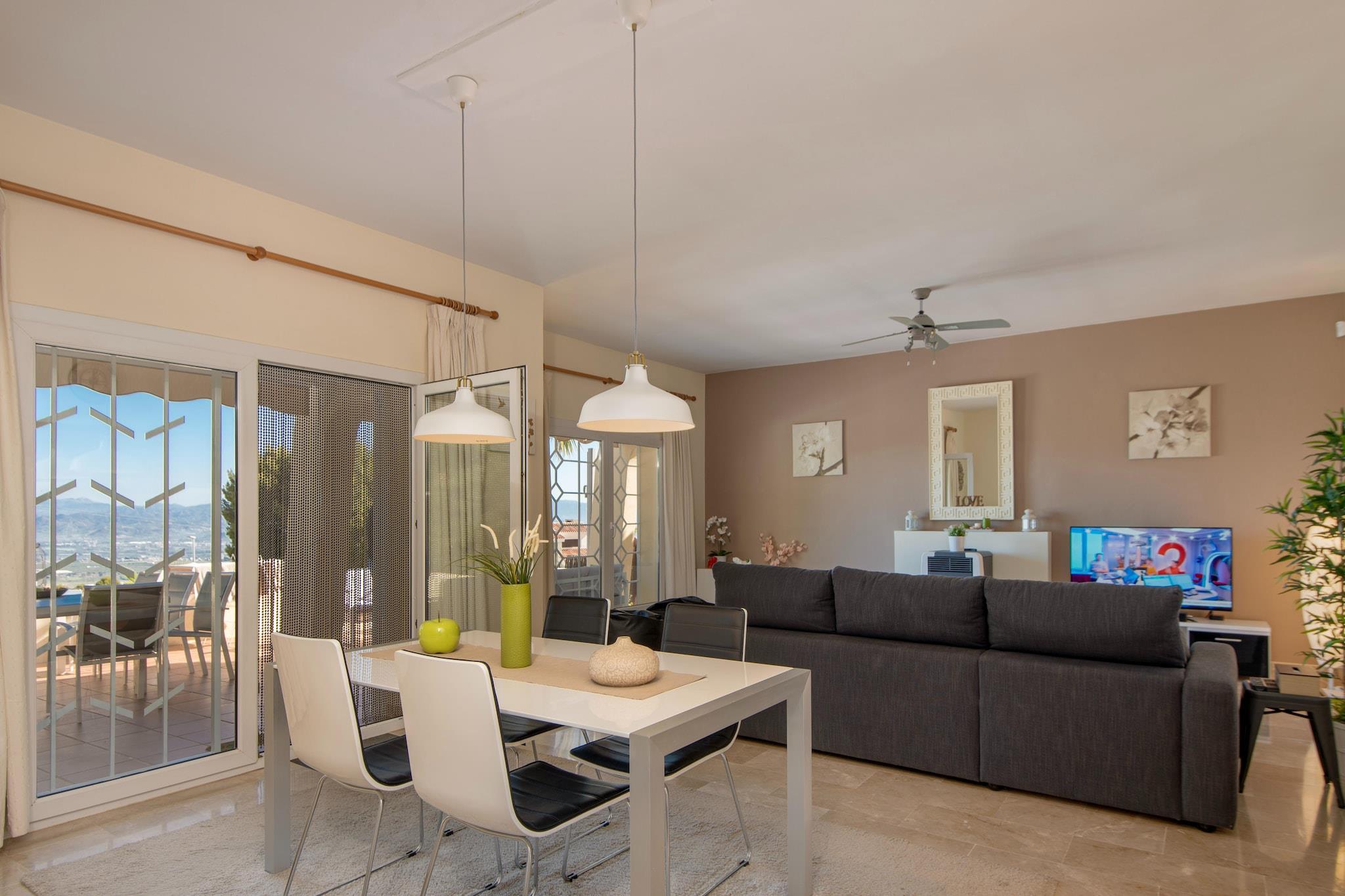 Med sit elegante og stilfulde interiør lover denne villa med 4 soveværelser i Pinos de Alhaurín en luksuriøs ferie. Den er ideel til familier eller grupper på op til otte personer. Køkkenet er fuldt udstyret, så du kan tilberede måltider præcis efter din smag. Alt hvad du behøver, kan findes i supermarkedet lige ved siden af. Nyd de kulinariske lækkerier på de omkringliggende restauranter. Mange andre attraktioner er også et besøg værd. Gas, elektricitet og vand opkræves efter forbrug baseret på måleraflæsninger. Dette skal betales som depositum ved booking.