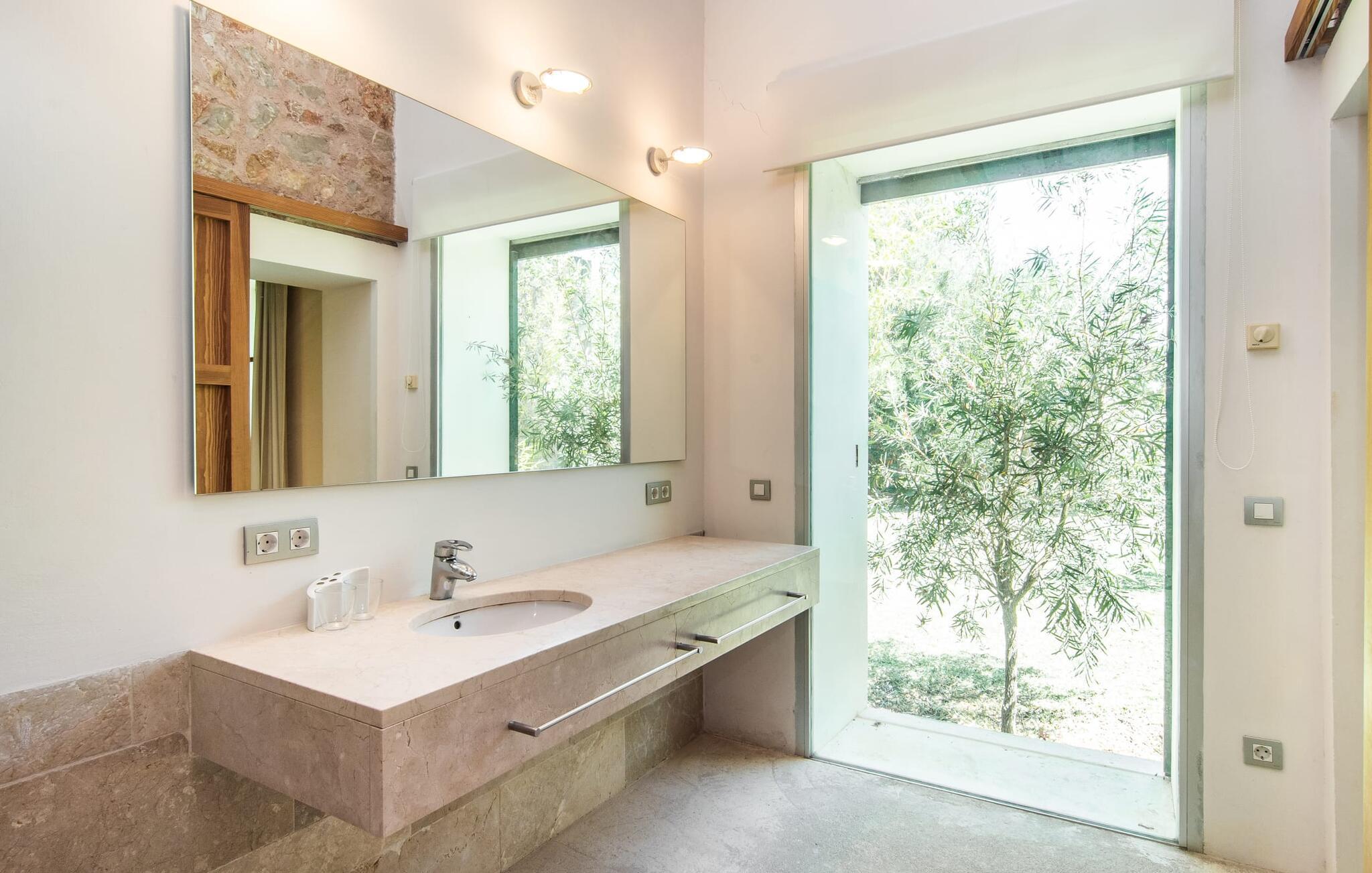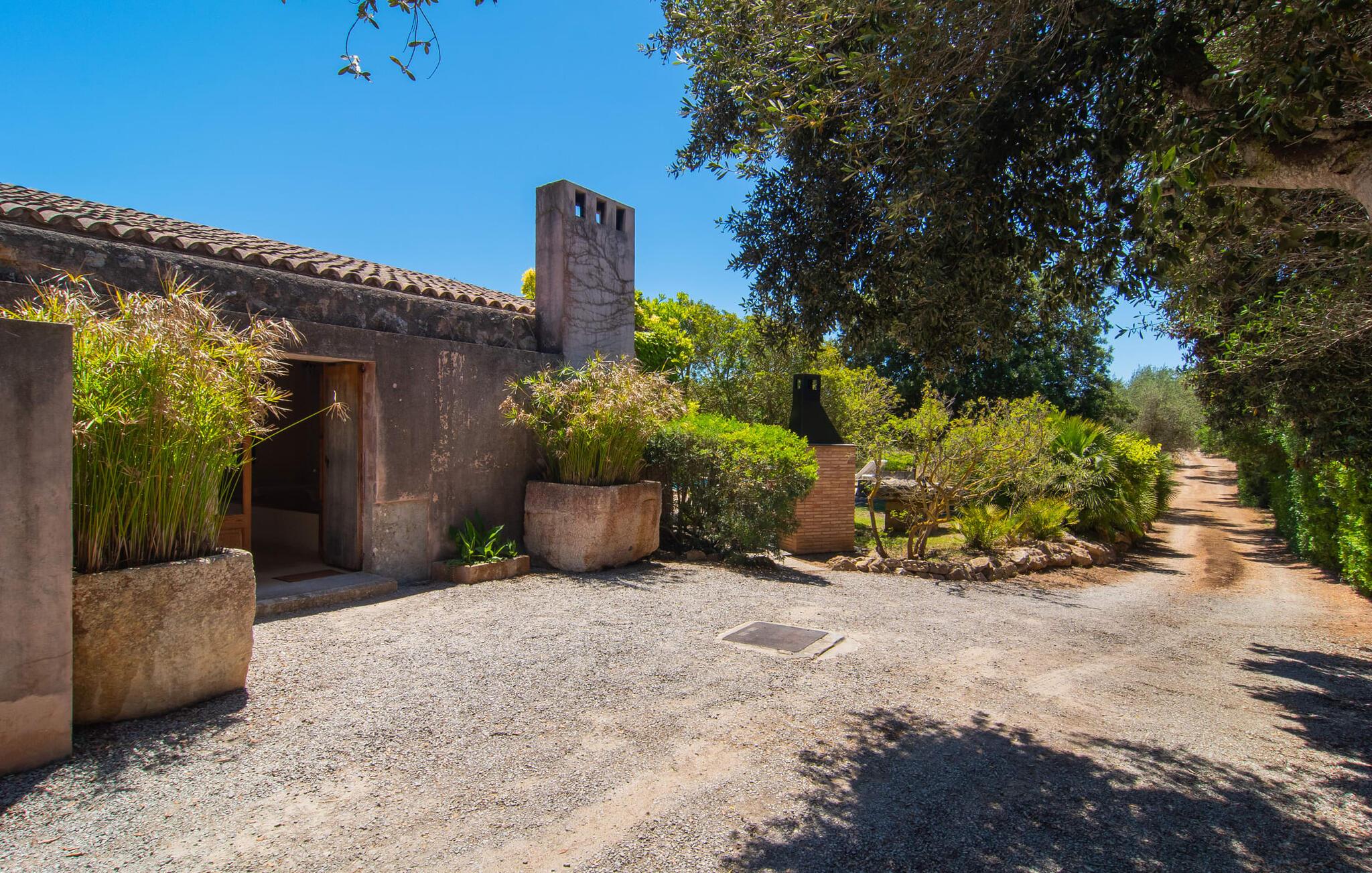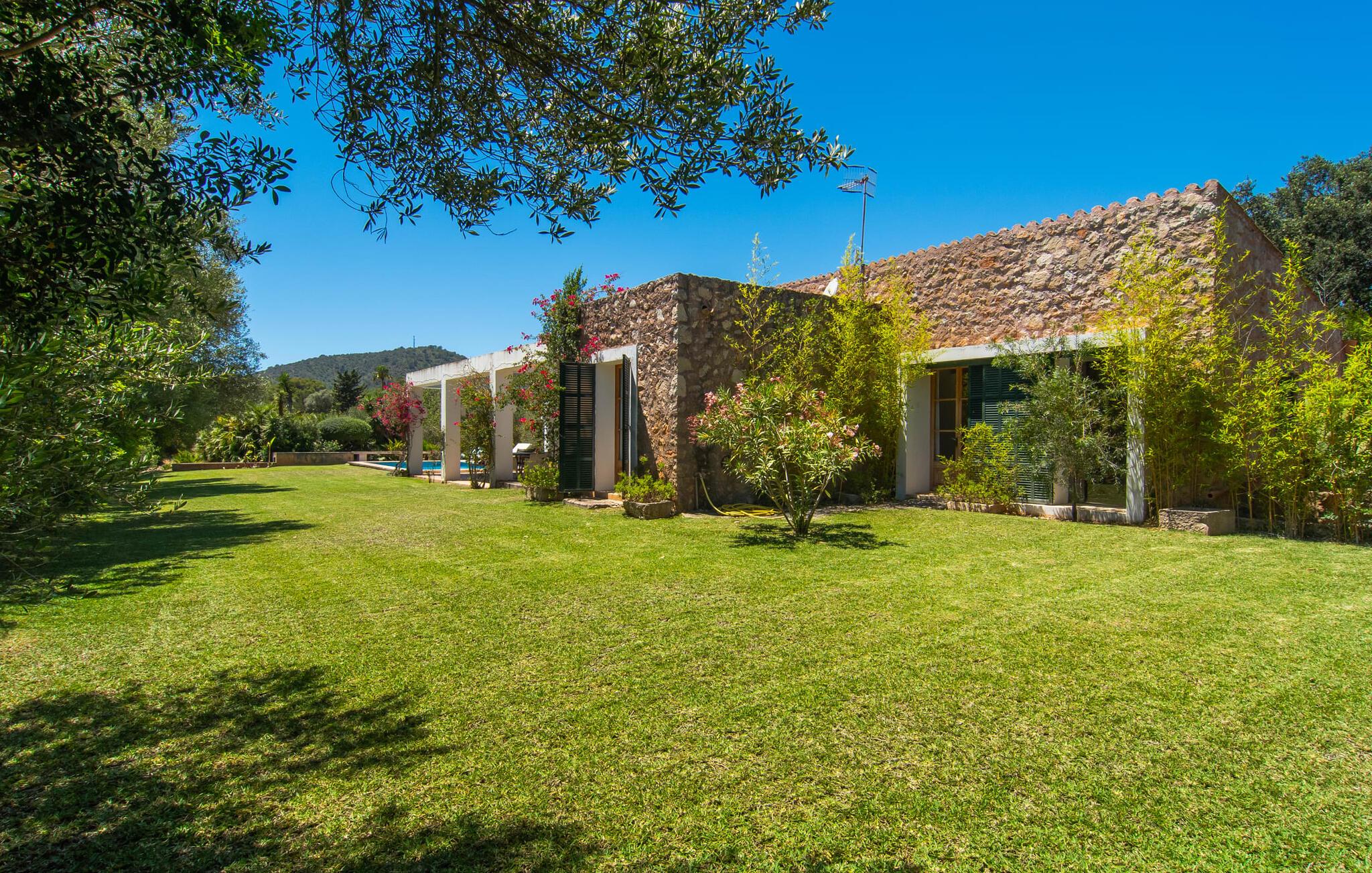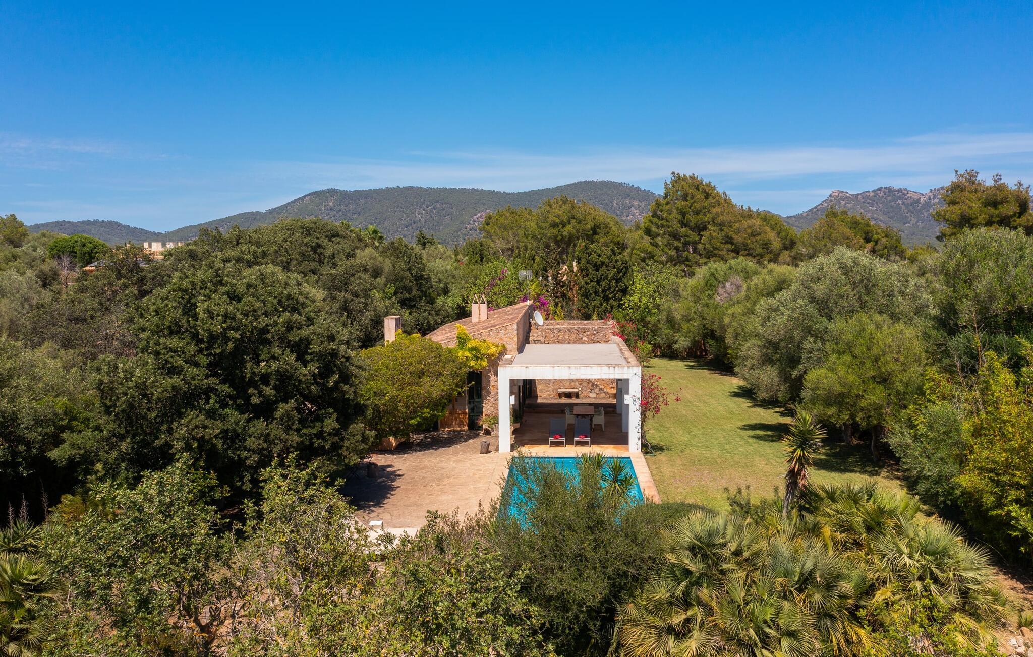 en rolig, landlig beliggenhed i den østlige del af Mallorca og kun 500 m fra stranden i Port Nou, er villaen "Plana Petita" et særligt charmerende tilflugtssted, der byder velkommen til feriegæster, der søger fred og ro. Der er flere andre villaer i området, men I kan stadig være sikker på, at I vil nyde fuldstændig privatliv under jeres ophold i "Plana Petita". Omgivet af en idyllisk, frodig grøn have med frodige træer, kan I helt fordybe jer i behagelig afslapning. Den rustikke og æstetiske atmosfære giver jer et meget behageligt grundlag for virkelig at slappe af. På siden af huset er der en rummelig græsplæne, hvor de små feriegæster, der måtte ledsage jer, kan rende rundt og lege, som de vil. Den overdækkede terrasse foran huset er indrettet med spisebord og stole og byder på en skøn plads til al fresco spisning. I kan også spise her, mens I nyder den vidunderlige udsigt over det frodige, grønne landskab. Den private pool måler 8 x 4 m og varierer i dybden mellem 0,80 og 1,80 m. Parasoller og komfortable liggestole inviterer jer til at slappe af. Om aftenen kan I lave mad på den mobile grill og derefter nyde regionens solide lækkerier. Hvis I gerne vil være vært for en fest under jeres ophold, beder vi jer altid give os besked på forhånd. Af hensyn til andre feriegæster i nærheden kan der ikke holdes fester i villaen. Det er dog fuldt ud muligt at holde en fest i restauranten, som også ejes af villaejerne, hvilket måske er endnu hyggeligere! Huset i bungalowstil er beregnet til fire personer og har to soveværelser og to badeværelser. Disse komfortable funktioner gør villaen ideel til to par, der er venner, da det giver jer mulighed for at være sammen og stadig have jeres egne områder og værelser, der er lige til jer. Interiøret er overvejende i rustik-antik stil og accentueres hist og her af moderne indretning. Resultatet er en yderst individuel charme, der så at sige er direkte fornøjelig. Vægge og gulve er lyse og giver i kombination med de fritlagte bjælkelofter rummene en indbydende, hyggelig atmosfære. Den åbne stue/spisestue har et stort vindue, en pejs, to komfortable sofaer og et rummeligt spisebord. Et tv med satellitforbindelse samt en cd- og dvd-afspiller sørger for underholdning, hvis det kræves. Det integrerede køkken er fuldt møbleret og tilbyder jer alt, hvad I har brug for til jeres daglige, køkkenrelaterede feriebehov. Disse omfatter et komfur, en ovn, en opvaskemaskine, en mikrobølgeovn, en vaskemaskine, en kedel og en Goteo-kaffemaskine. De, der søger fred og afslapning, kan forvente en fredelig atmosfære i de to smagfuldt indrettede soveværelser. Der er et soveværelse med en dobbeltseng (1,80m x 2,00m) og for et ekstra strejf af luksus, et tilstødende en-suite badeværelse med en stor bruser. Det andet soveværelse har to enkeltsenge, der måler 0,90 mx 2,00 m. Det andet badeværelse er udstyret med badekar. Da Wi-Fi er tilgængeligt i hele huset, er der intet, der står i vejen for at oprette forbindelse til omverdenen. En kedel og hårtørrer er til rådighed for jeres bekvemmelighed, så I ikke behøver at spilde bagageplads ved at medbringe jeres egen bagage hjemmefra. Denne villa har en unik beliggenhed. I bil kan I hurtigt og nemt komme til feriebyerne Cala Millor, Canyamel, Cala Rajada, Capdepera og Artà. En lille promenade løber rundt om hovedstranden i Cala Bona med adskillige caféer og restauranter med terrasser, hvorfra I kan nyde den vidunderlige havudsigt. I havnen kan I sidde med en tidlig morgenkaffe og se fiskerbådene sejle ud på havet eller prøve lækre tapas om aftenen. For omfattende shoppingoplevelser er det bedst at besøge det nærliggende Cala Millor (4 km). Der er tre imponerende 18-hullers golfbaner i nærheden af Cala Bona. I kan også opleve smukke dage, for eksempel i Manacor eller det spektakulære drypstenshulesystem "Cueves del Drach". I Son Servera er der et traditionelt marked, som I kan besøge om fredagen. I helt rolige omgivelser finder I villaen “Plana Petita”, som ligger kun 3 km fra kystbyen Cala Bona. Den tidligere fiskerby er nu et behageligt turiststed. I kan shoppe til jeres daglige behov enten her eller i Son Servera (5 km). På få minutter i bil fra dette feriehus kan I nå den smukke sandstrand ved Costa de los Pinos samt flere andre fine sandbugter, der er ideelle til svømning.