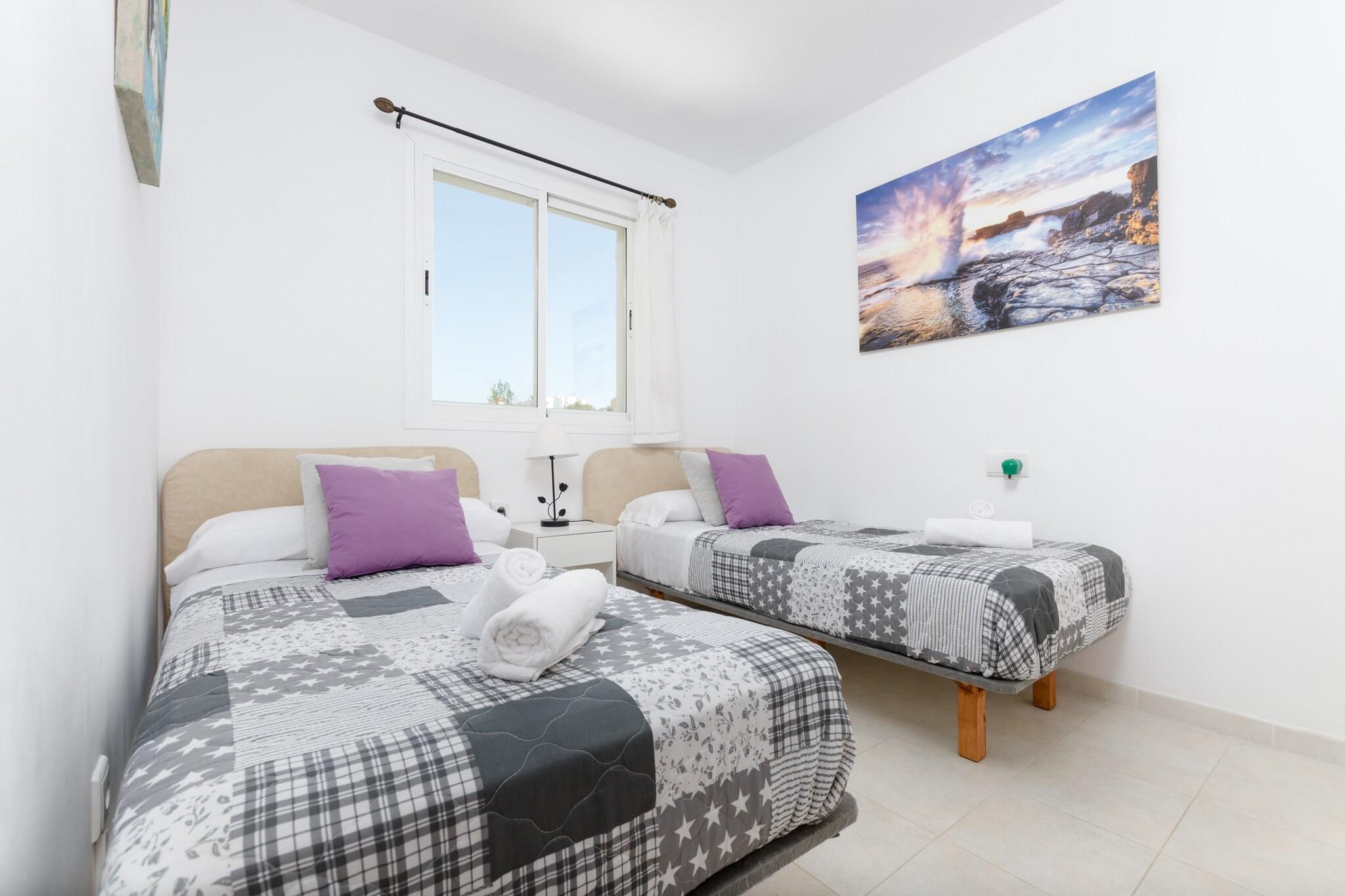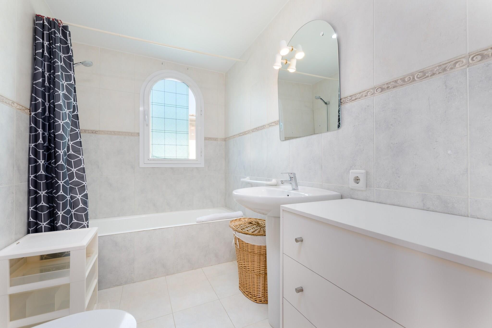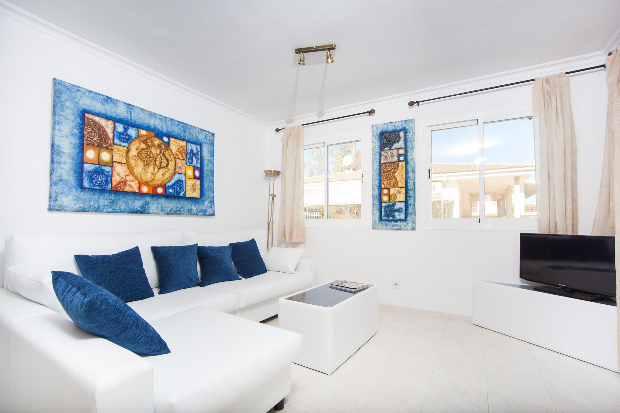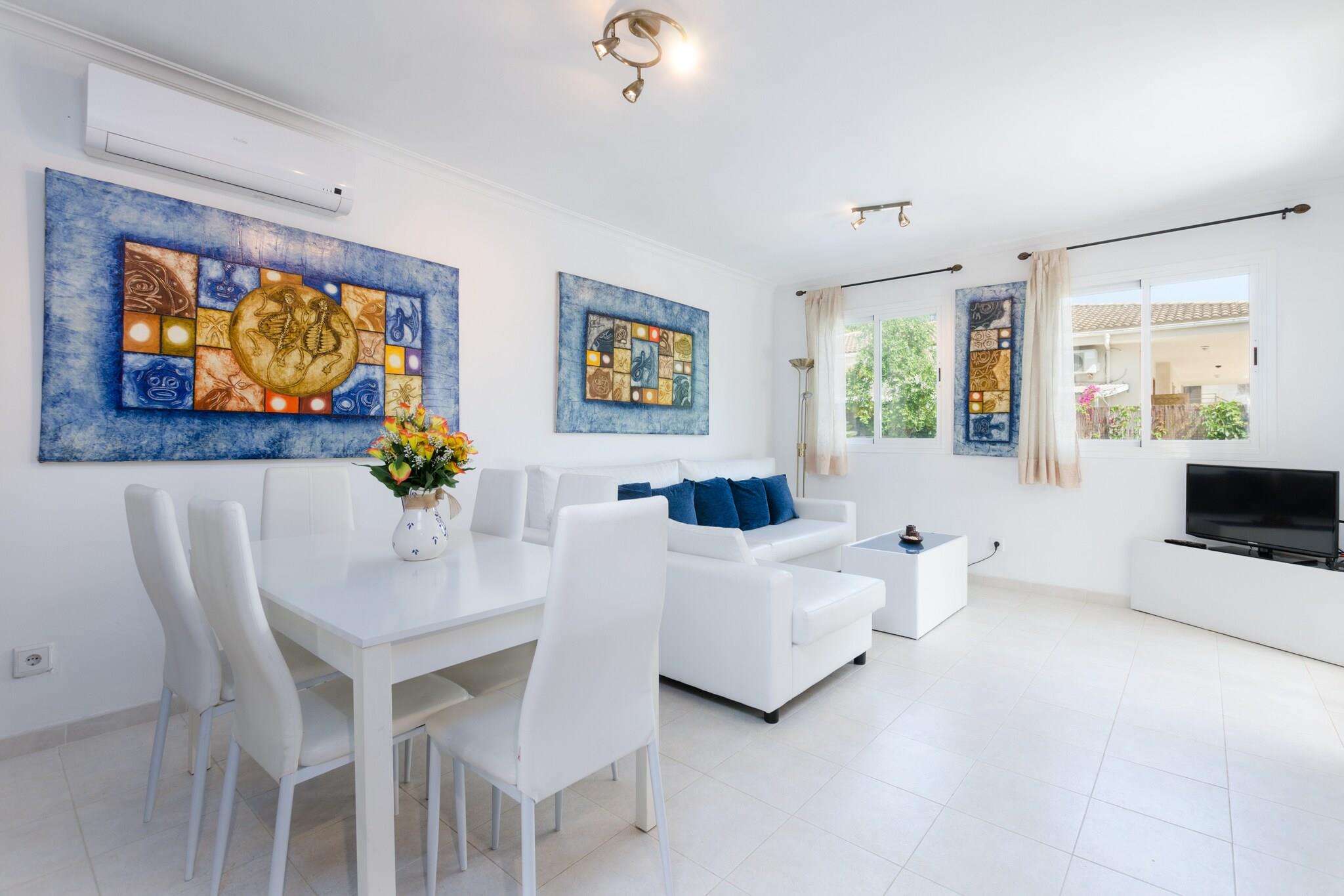 Nyd en forfriskende svømmetur i klorpoolen på 6x3m, der spænder fra 1m til 1,5m dyb, eller slap af på en af fem liggestole. Morgenmadsterrassen ved poolen fungerer også som grillplads om aftenen. På den anden side indbyder et chill-out hjørne til at slappe af med et glas vin. Grunden er indhegnet med direkte naboer i nærheden. Dette to-etagers hjem tilbyder 130 m² boligareal med tre hyggelige soveværelser på første sal, alle med garderobeskabe. To værelser har dobbeltsenge, og det ene har to enkeltsenge, der alle nyder godt af naturligt lys. En barneseng og høj stol er tilgængelige efter anmodning. Huset har to badeværelser, et på hver etage, udstyret med badekar eller bruser. Stuen/spisestuen er perfekt til familiemåltider eller samtaler, mens børnene nyder en film på satellit-tv. Det fuldt udstyrede køkken har en vitro-komfur, og vaskeområdet har en vaskemaskine, strygejern og strygebræt. Der er aircondition i stuen og gangen på første sal. For strandelskere tilbyder Puerto de Alcúdia vandsport, shopping og spisemuligheder, kun 10 minutter væk fra huset. Den fine sandstrand, perfekt til familier med børn, ligger 10 minutters gang væk, med moderat svulmning. Alcúdias gamle bydel ligger 10 minutters kørsel, hvor du kan udforske dets farverige marked på lørdage og tirsdage. Bemærk venligst: skiftedage er lørdage i juni, juli og august. Kæledyr og arrangementer er ikke tilladt. Der er parkering til en bil. Der gælder en turistskat (Ecotasa), med priser afhængigt af sæsonen. Som reaktion på Coronavirus (COVID-19) er yderligere sikkerheds- og sanitære foranstaltninger i kraft på denne ejendom.