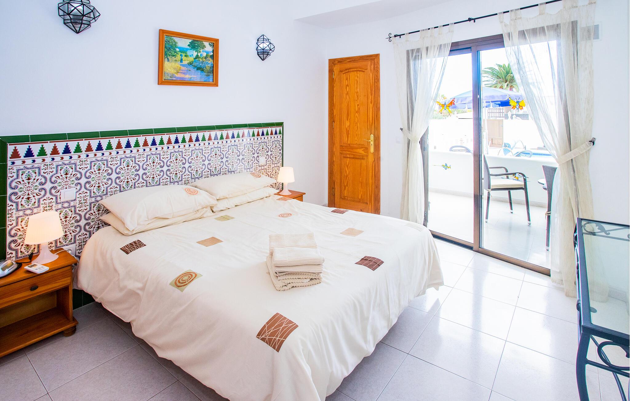 Tilbring en solrig ferie i dette komfortable feriehus med pool og spabad.
