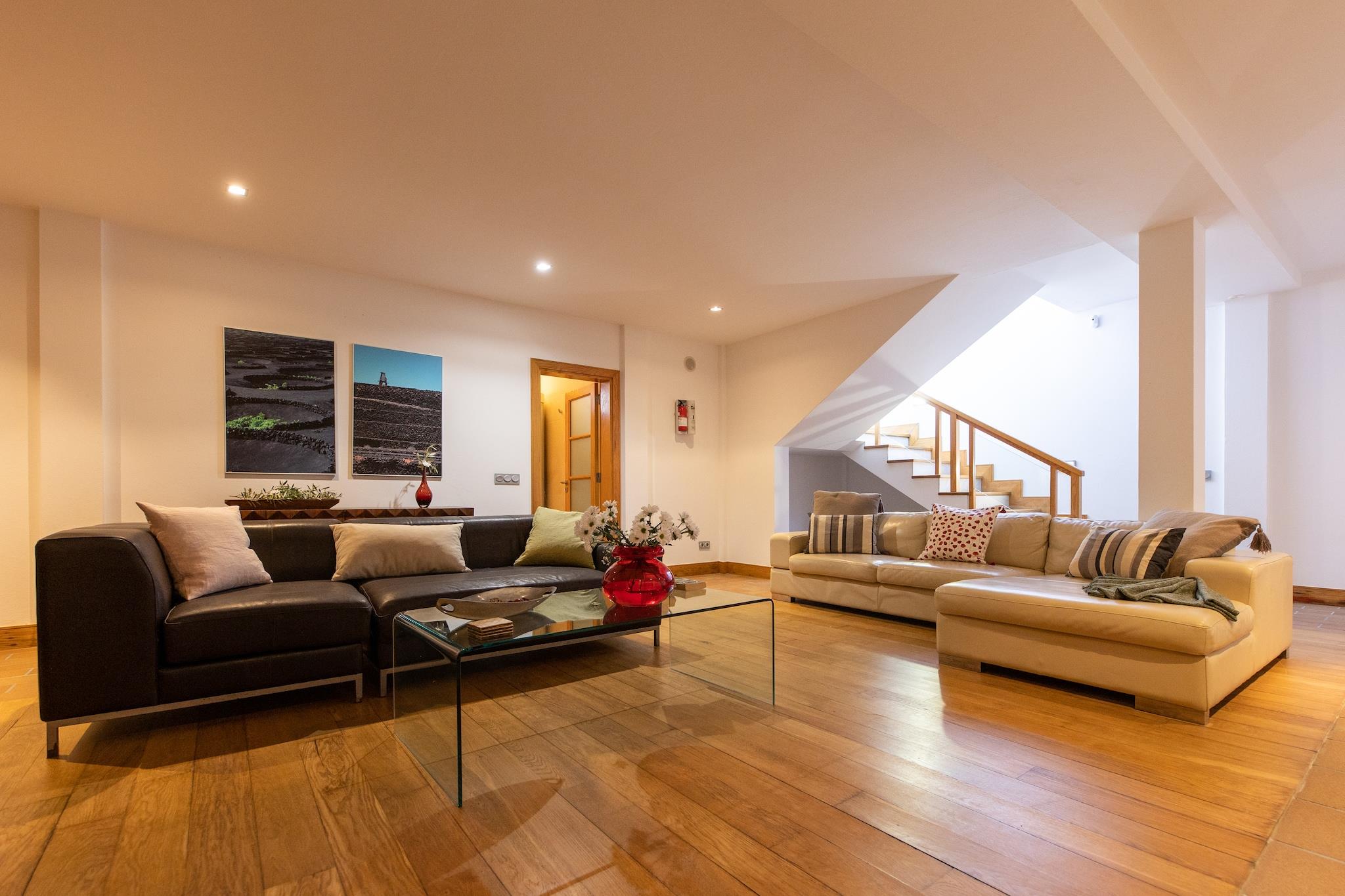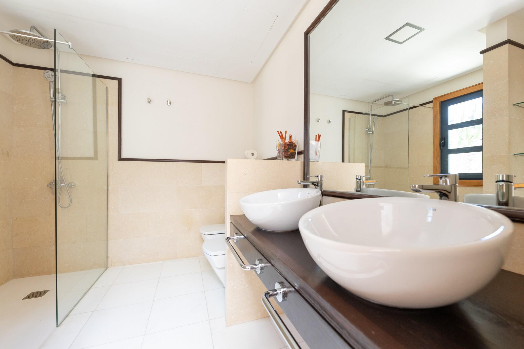 Med et moderne design og fremragende interiører, er Villa B ligger i nærheden af den berømte Marina Rubicon, har 3 soveværelser, 3 badeværelser, jacuzzi, sauna (kun anbefales til over 8 år, ikke børn) og er godt placeret nær elegante butikker og restauranter ud mod sea. Enjoy det milde klima i de Kanariske Øer på terrassen med designer hængekøjer og en privat og opvarmet pool (puljen er opvarmet hele året rundt ved en temperatur på 22ºC, hvis du vil have os til at hæve temperaturen om vinteren, dette eller det ville have et tillæg, fra oktober til april, på EURO 100 / uge); Kontakt os venligst ved ankomst Hvis du ønsker at anmode om "sen udtjekning", har dette et tillæg på EURO 75 (indtil kl. 20.00), men er afhængig af tilgængelighed; Tjek venligst med os ved ankomsten Dette feriehus har et veludstyret køkken perfekt til at forberede dine yndlingsopskrifter. Supermarkeder og butikker er meget tæt på boligen. Wifi tilgængelig.