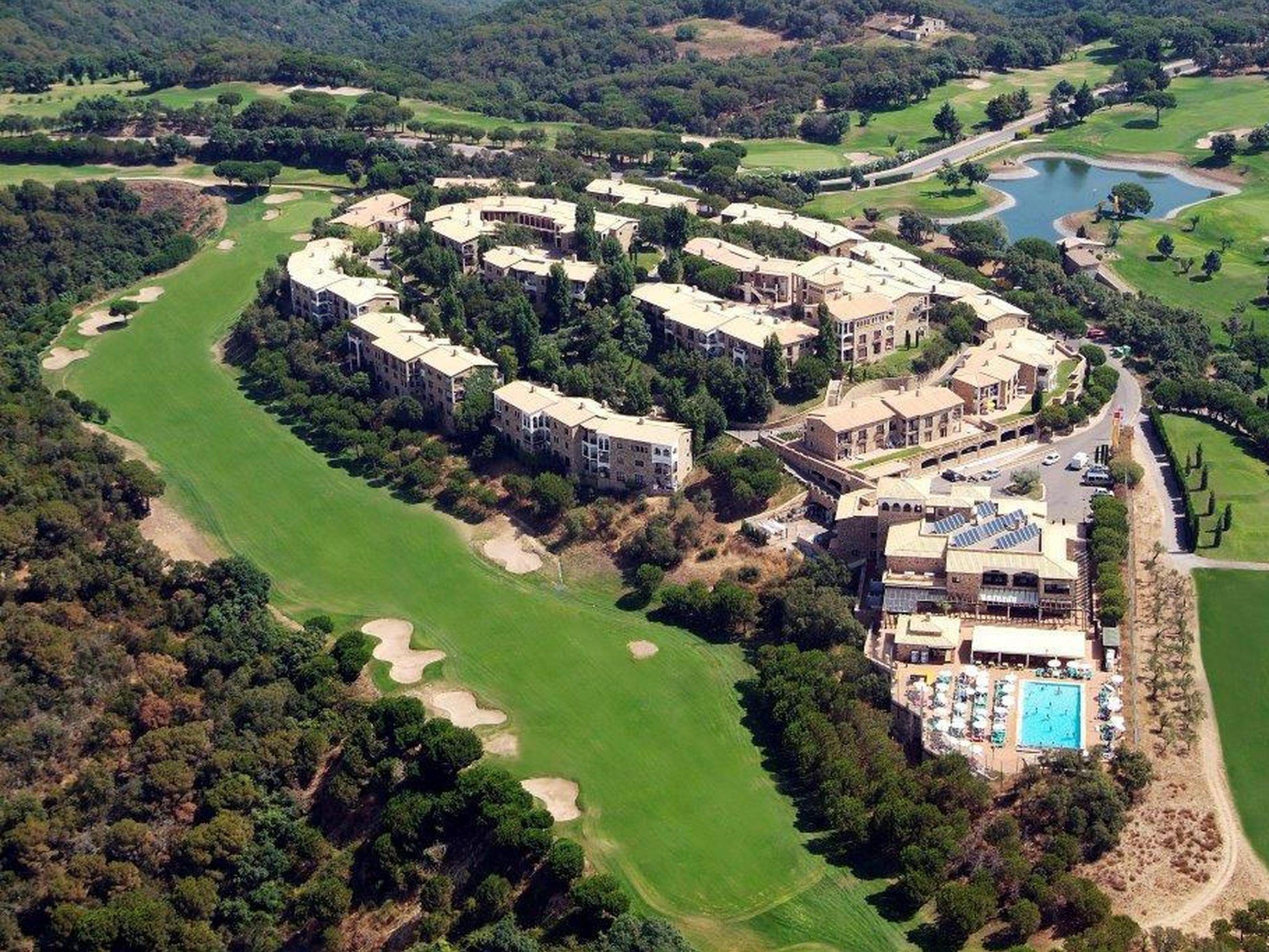 Hapimag Mas Nou 5 km from Platja D'Aro: Cosy resort "Hapimag". On top of a hill, 5 km from the sea. For shared use: property, garden, swimming pool angular (seasonal availability: 01.Feb. - 15.Nov.). Children's pool. In the complex: reception, restaurant, bar, table tennis, playroom, washing machine, tumble dryer (for shared use, extra). Public parking. Grocery, supermarket, restaurant 10 m, bus stop 2 km, sandy beach 5 km. Sports harbour 5 km, golf course (18 hole) 300 m, tennis 3 km. Nearby attractions: Parque Acuático 5 km. Please note: car recommended.