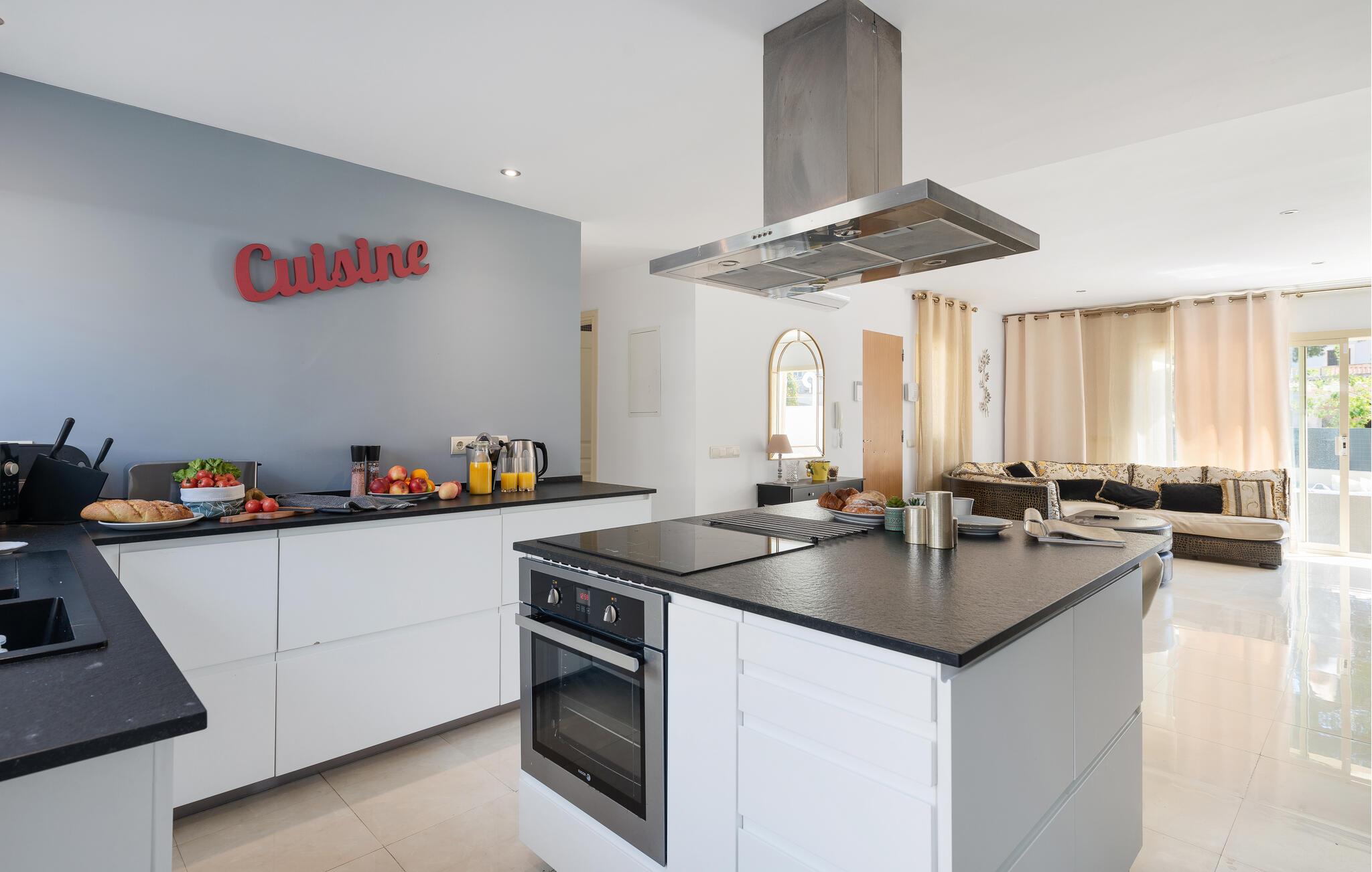 Velkommen til dette moderne og familievenlige hus, der med sin fantastiske beliggenhed og faciliteter danner en utroligt dejlig ramme om et vidunderligt ophold med familien. Huset er yderst flot indrettet med rene linjer, materialer af høj kvalitet og moderne faciliteter, der gør jeres ferie helt og aldeles bekymringsfrit fra det øjeblik, I stiller kufferterne. Lad en hyggelig feriedag gå på hæld i den rummelige sofa med snacks og en god film på tv'et, mens I lægger planer for de kommende dage.