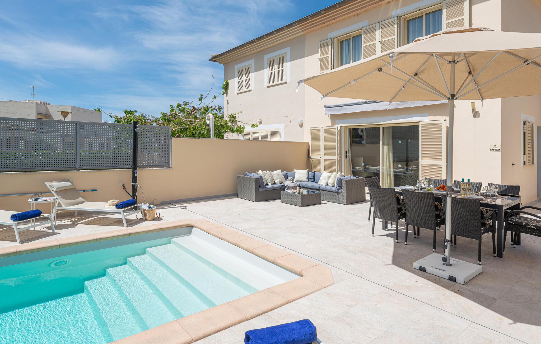 Se frem til årets ferie med familien, tæt på havet, i dette komfortable hus med pool på Mallorca.