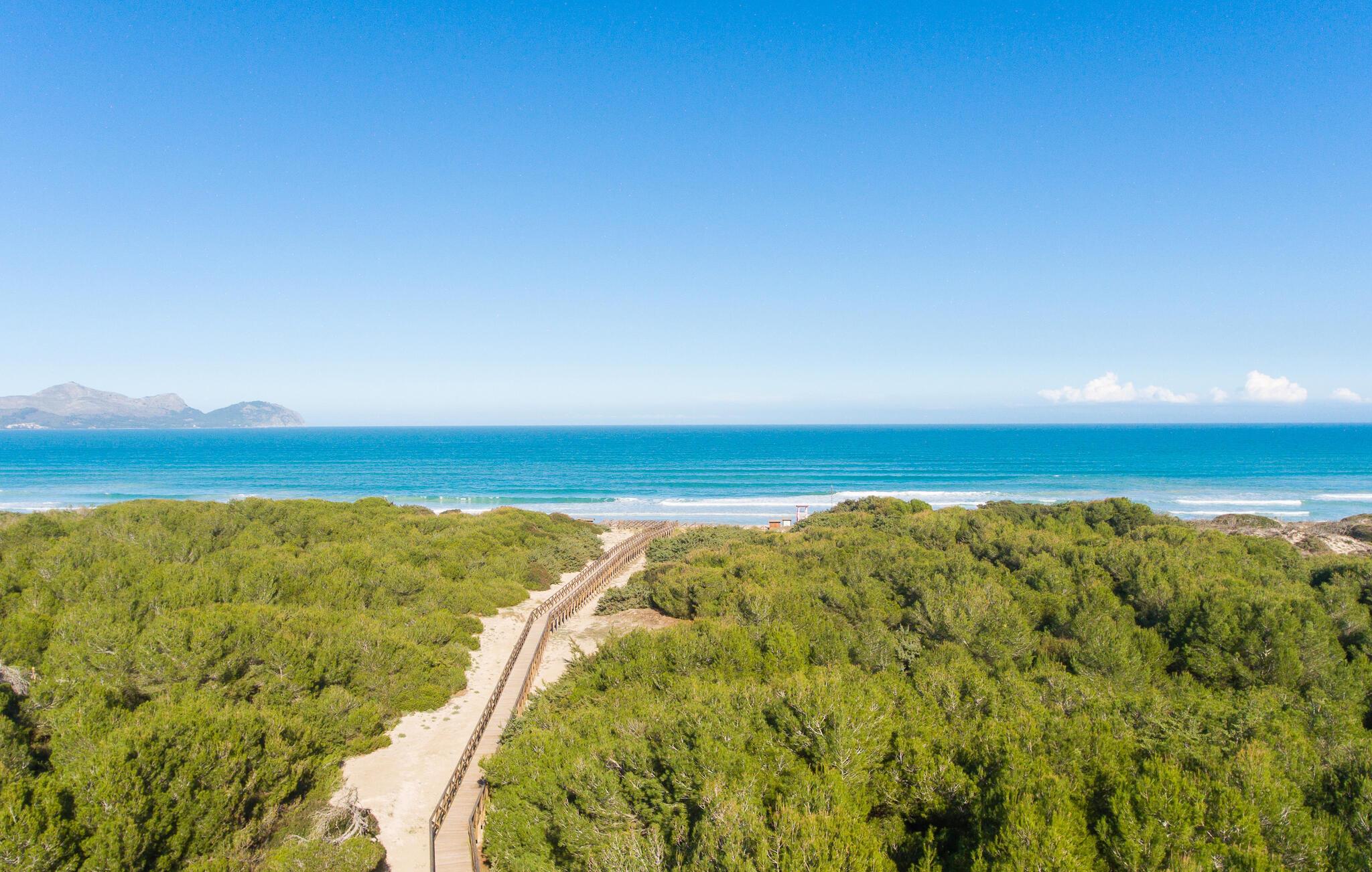 I bor kun en kort gåtur fra havet, hvor I kan nyde solen, snuppe en frisk dukkert og gå dejlige ture langs vandet. Den store sandstrand Playa de Muro ligger i Alcudia-bugten og er med sit lave vand særligt populær blandt børnefamilier. Besøg fyrtårnet ved Cap de Formentor, beundr de sjældne fuglearter i naturparken S'Albufera og nyd den særlige atmosfære i Alcudia.
