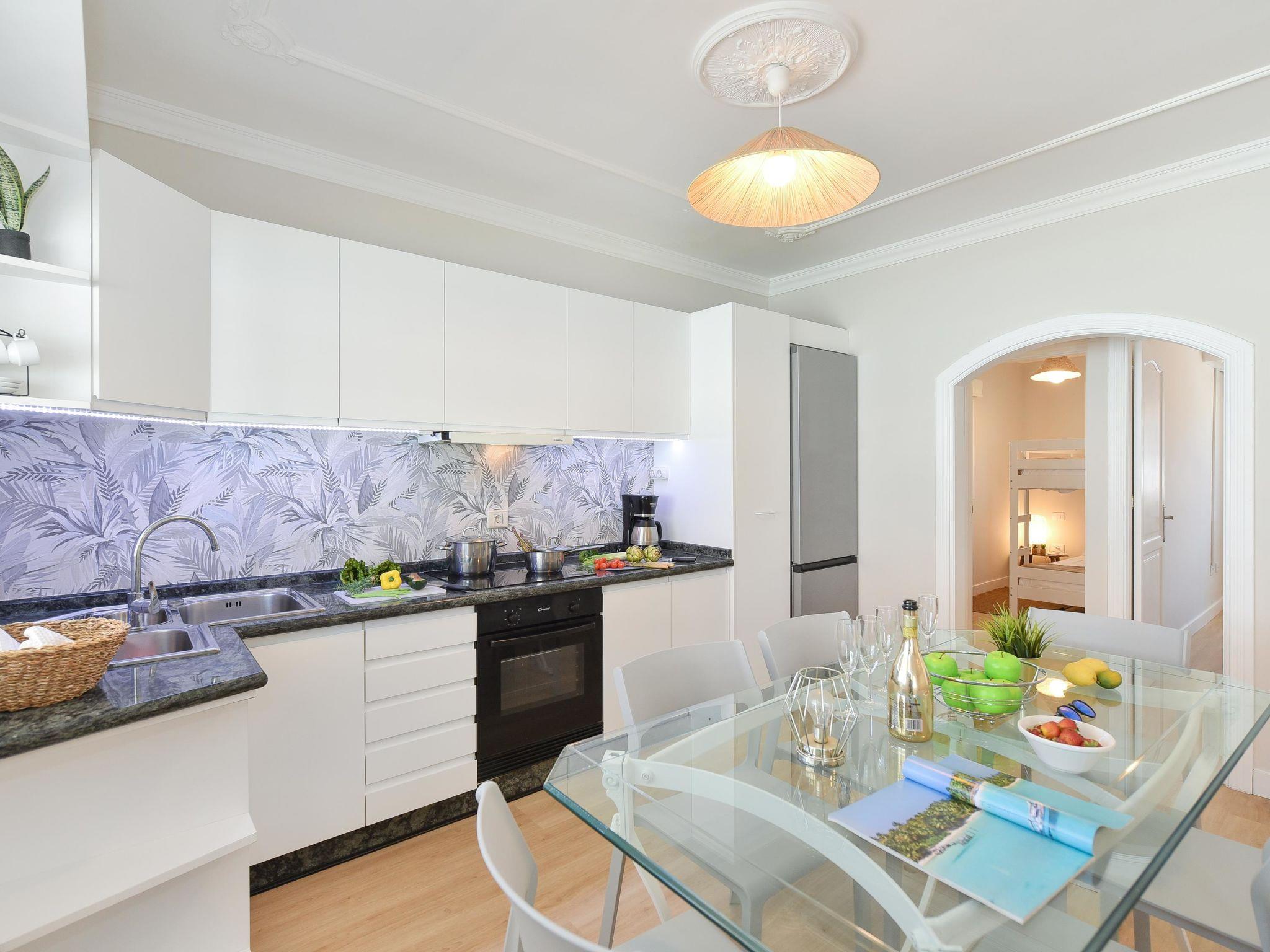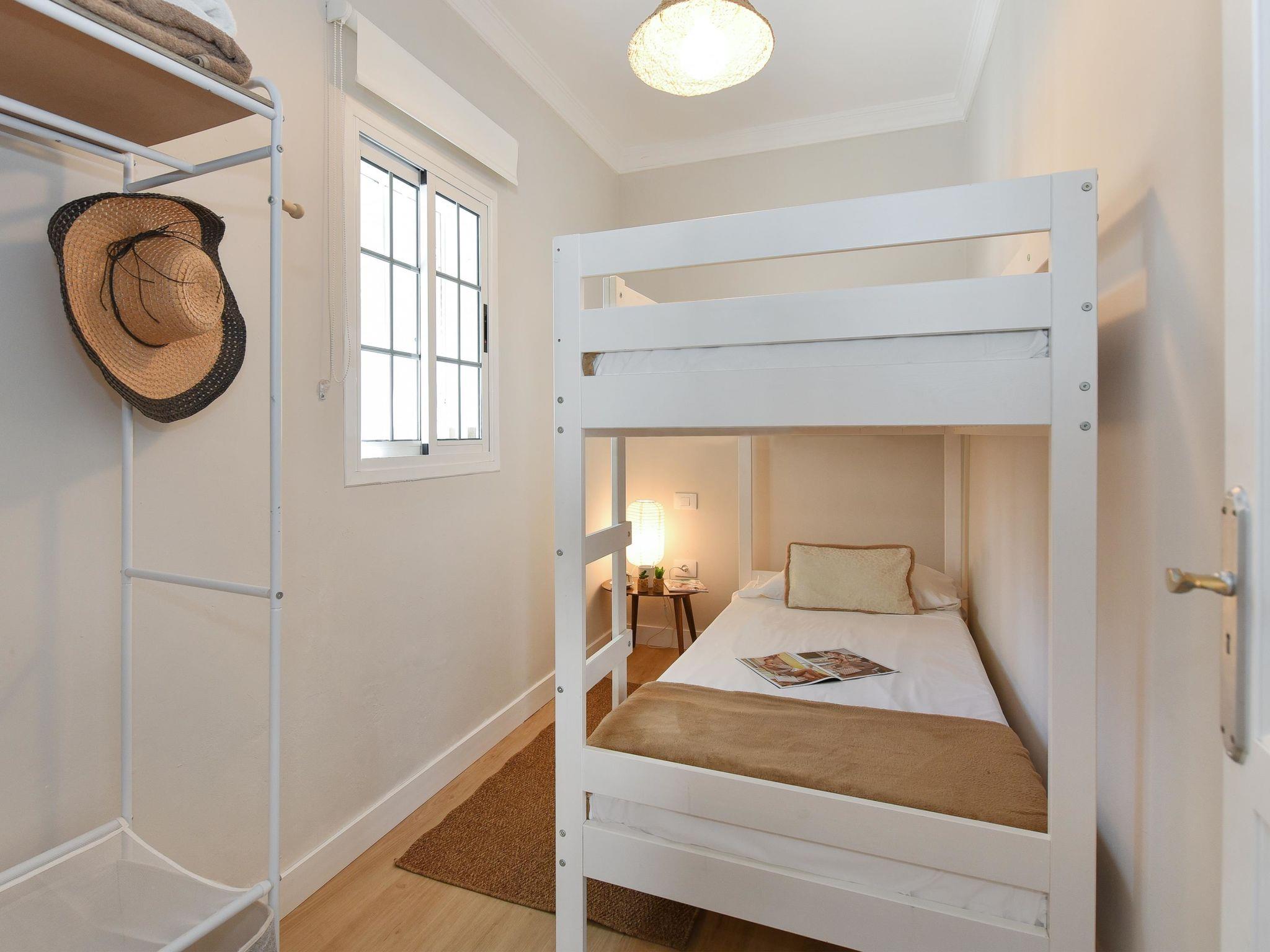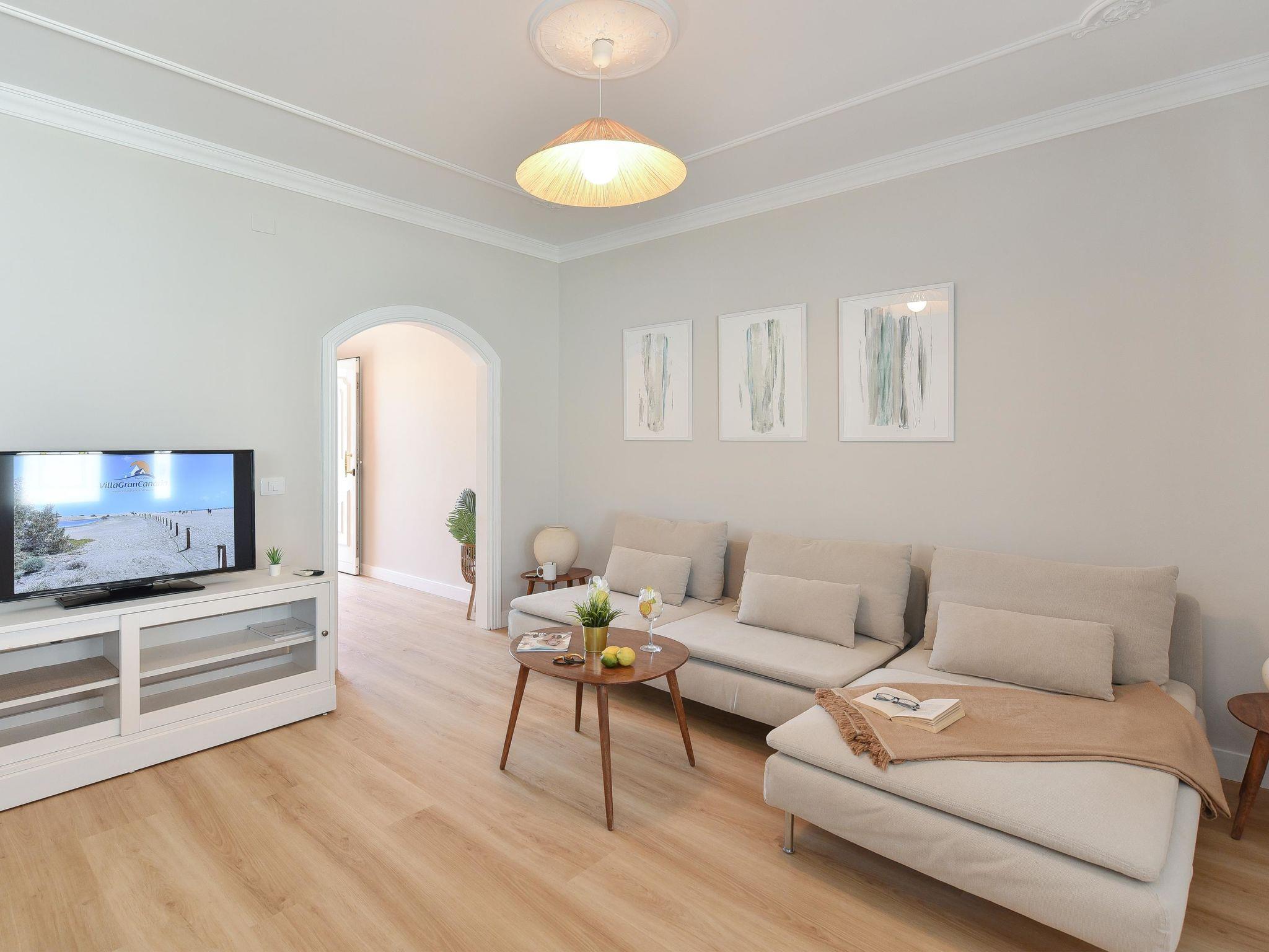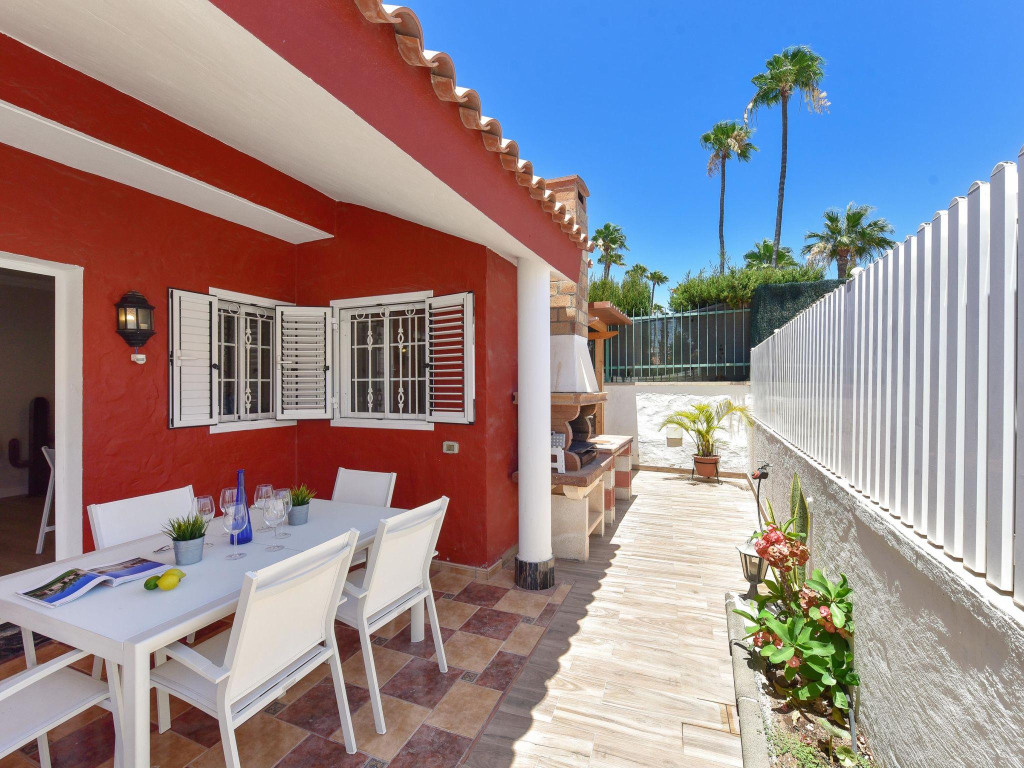 "Nena Playa del Ingles", 5-room apartment 140 m2. Comfortable and cosy furnishings: living/dining room with dining table and digital TV. 2 rooms, each room with 1 french bed and air conditioning. 1 room with 1 x 2 bunk beds. Kitchen-/living room (oven, dishwasher, 3 ceramic glass hob hotplates, toaster, kettle, microwave, freezer, electric coffee machine) with dining table, dining nook. 2 showers/WC. Large terrace. Terrace furniture, barbecue, deck chairs. View of the resort. Facilities: washing machine, safe, iron, children's high chair, baby cot for up to 2 year olds, hair dryer. Internet (WiFi, free). Please note: non-smoking house. 2023-T10284 // Reg. Nr.: ESFCTU0000350130003073100000000000000VV-35-1-00202246