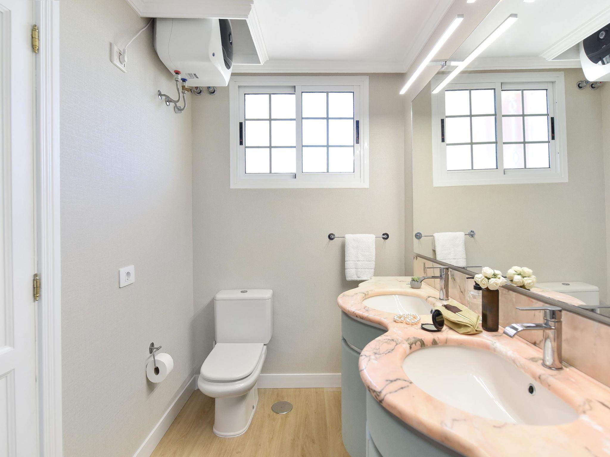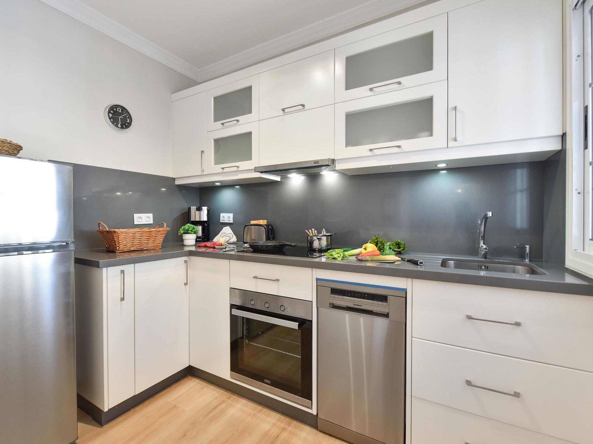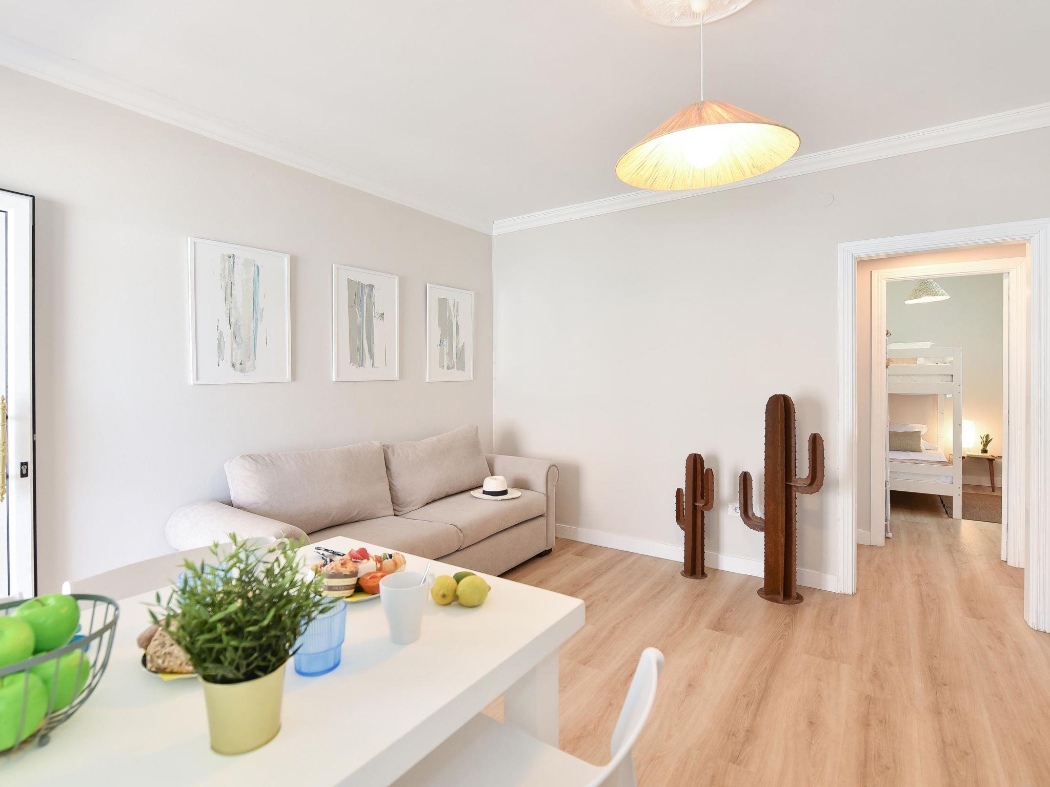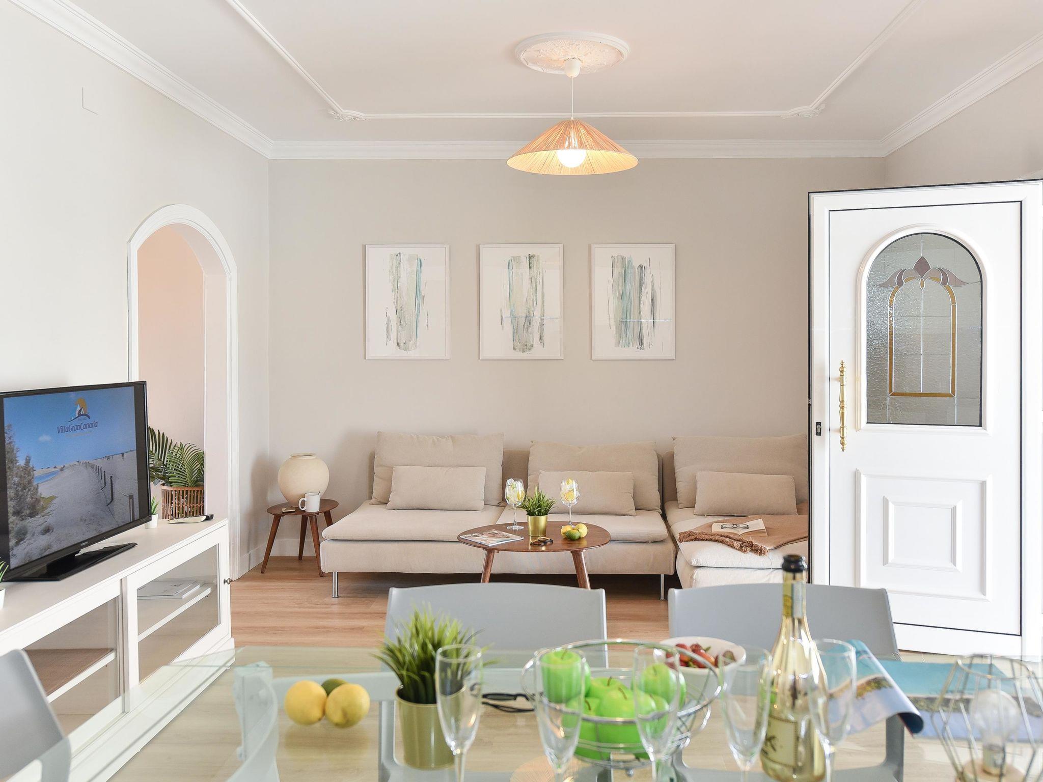 "Nena Playa del Ingles", 5-room apartment 140 m2. Comfortable and cosy furnishings: living/dining room with dining table and digital TV. 2 rooms, each room with 1 french bed and air conditioning. 1 room with 1 x 2 bunk beds. Kitchen-/living room (oven, dishwasher, 3 ceramic glass hob hotplates, toaster, kettle, microwave, freezer, electric coffee machine) with dining table, dining nook. 2 showers/WC. Large terrace. Terrace furniture, barbecue, deck chairs. View of the resort. Facilities: washing machine, safe, iron, children's high chair, baby cot for up to 2 year olds, hair dryer. Internet (WiFi, free). Please note: non-smoking house. 2023-T10284 // Reg. Nr.: ESFCTU0000350130003073100000000000000VV-35-1-00202246