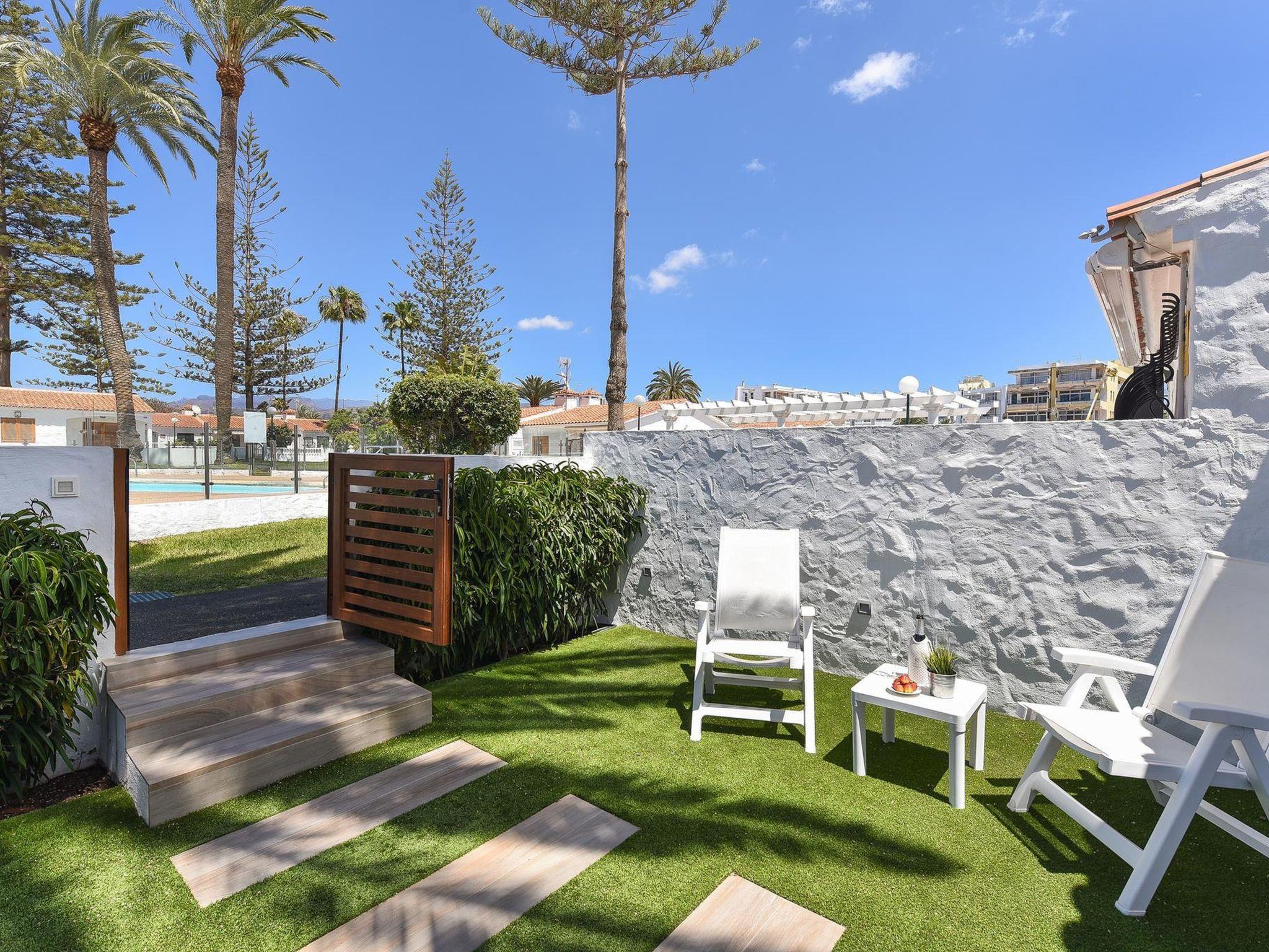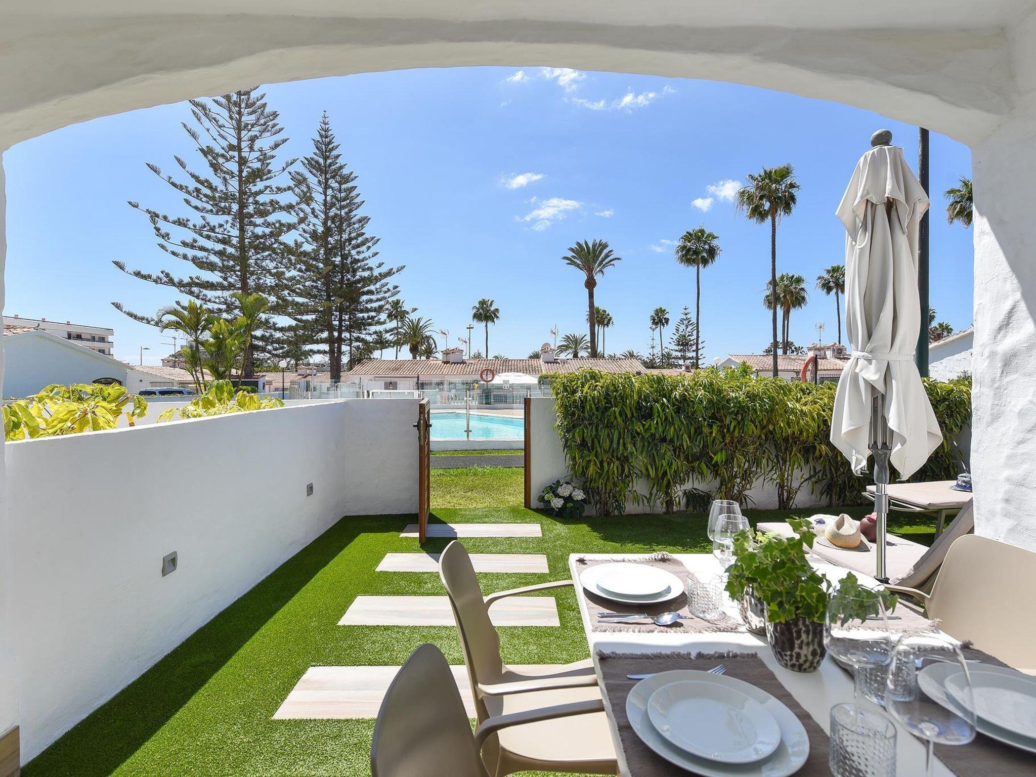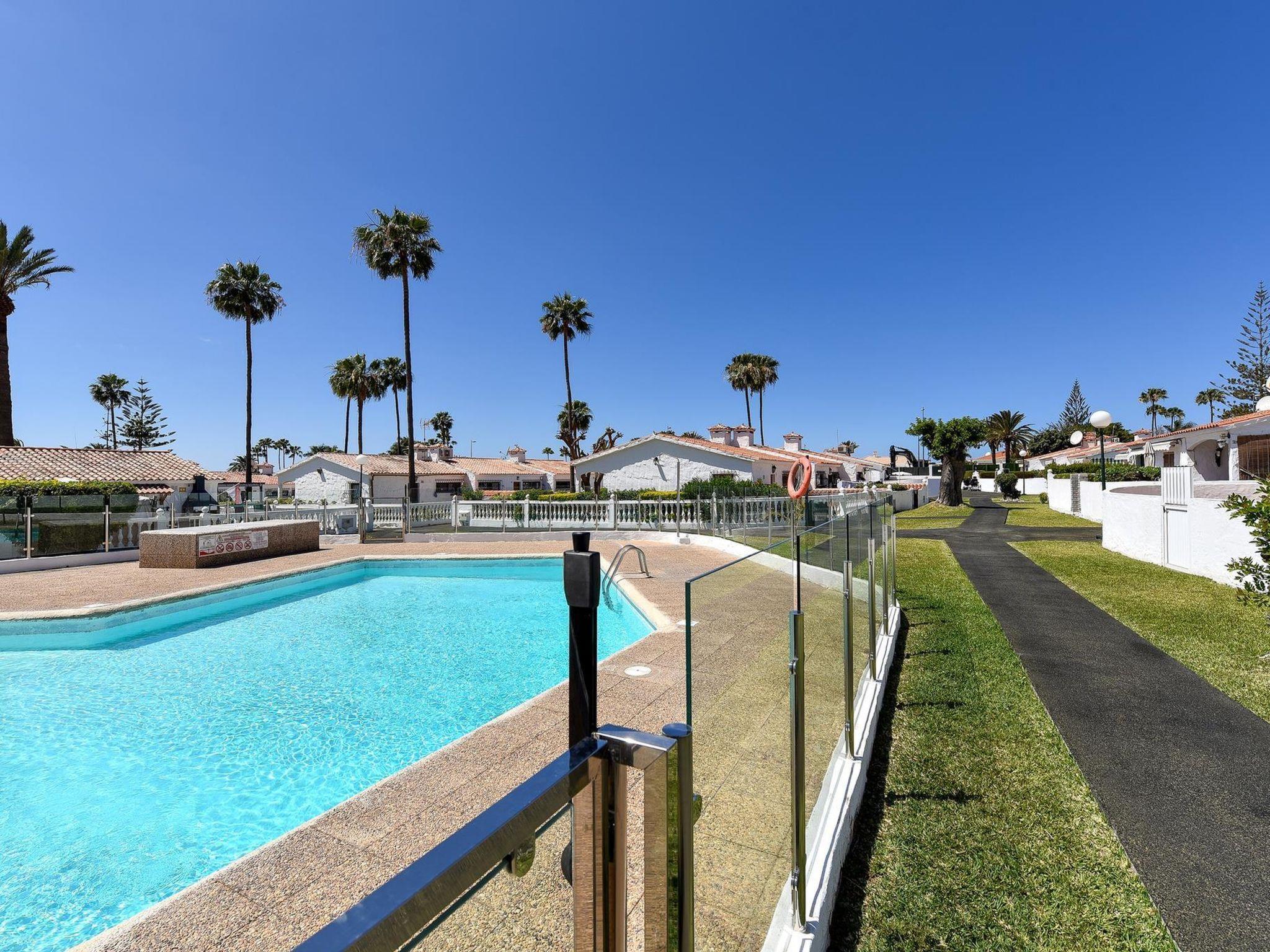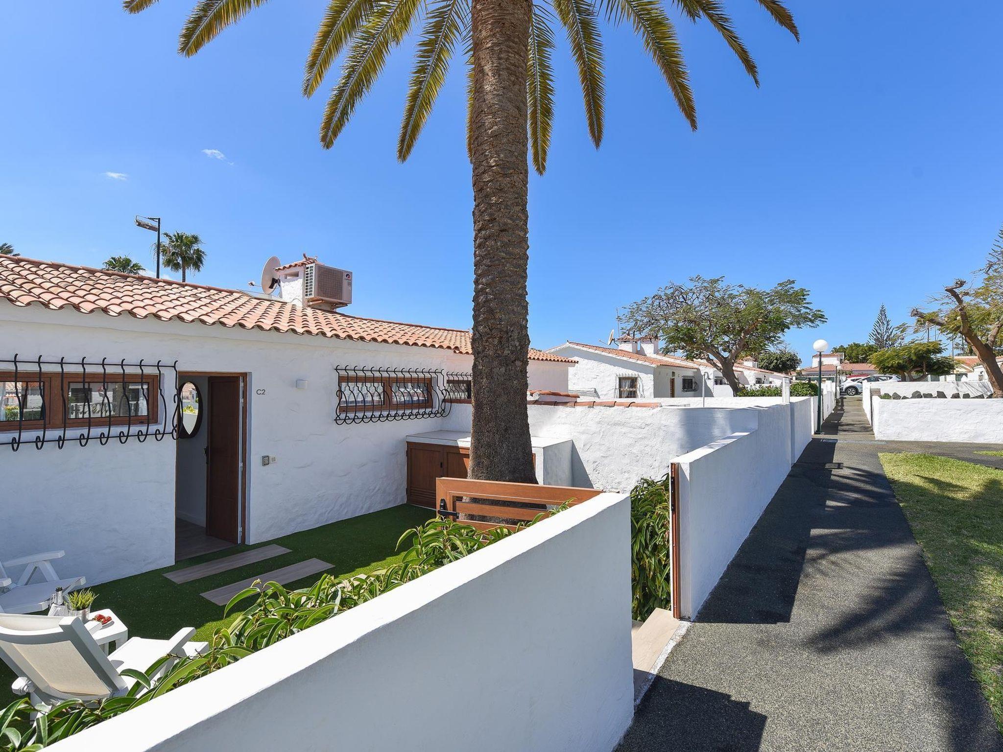 Small, beautiful, comfortable bungalow "Bungalow Santa Barbara EM". In the centre of Playa del Inglés, in a central, busy, sunny position, 2 km from the sea. For shared use: property, garden with lawn, swimming pool (seasonal availability: 01.Jan. - 31.Dec.). Outdoor shower, barbecue. Private: garden (fenced) with lawn. In the house: air conditioning. Parking on the premises. Shop, grocery, supermarket, restaurant 500 m, bus stop "Plaza de Teror" 250 m, sandy beach 2 km, outdoor swimming pool, indoor swimming pool 10 m. The owner does not accept any youth groups. Neighbourhood highly sensitive to noise. Quietness and good behaviour expected.