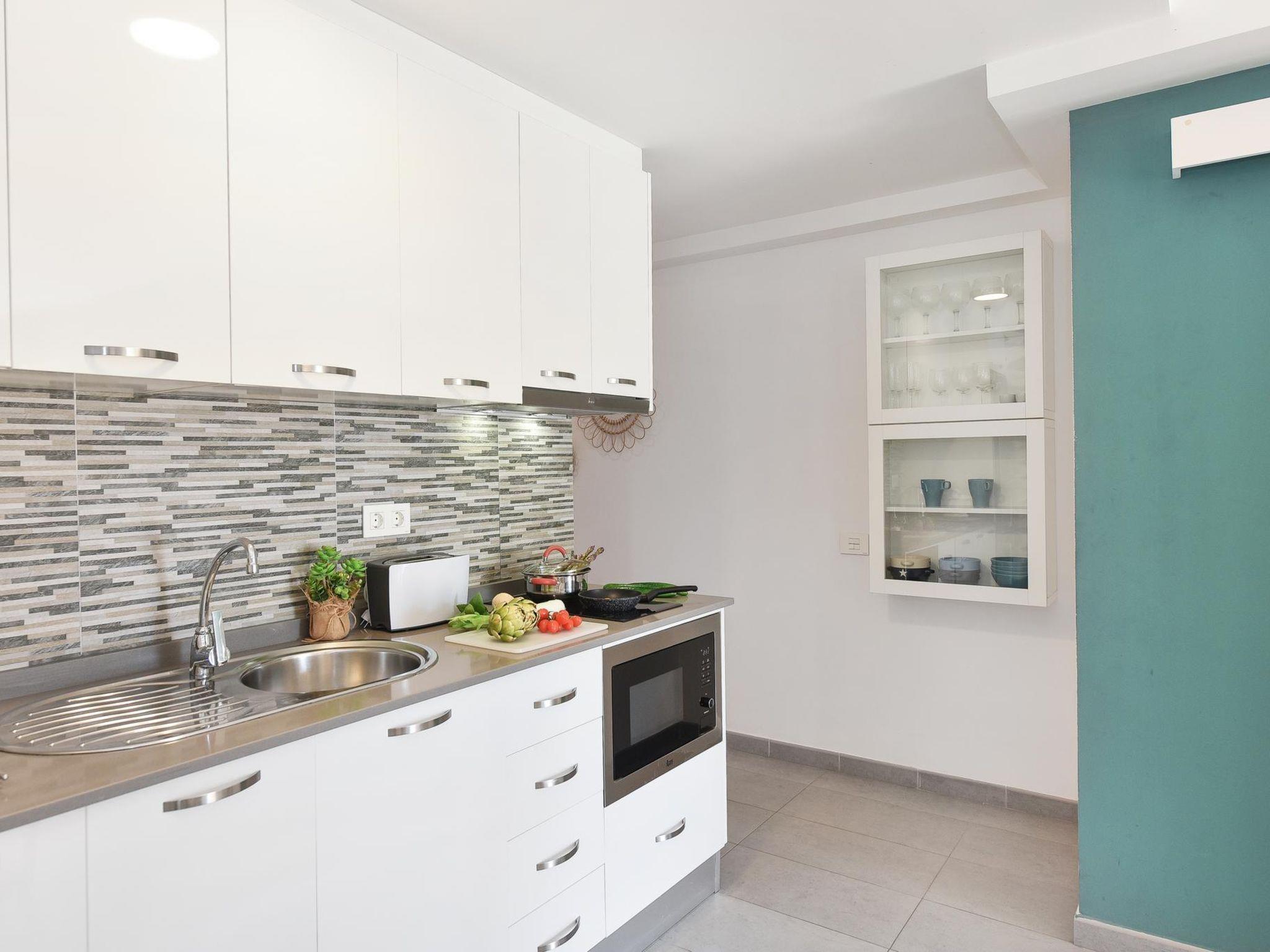 "Aida", 3-room apartment 65 m2. Comfortable and cosy furnishings: living/sleeping room with satellite TV and digital TV with 2 beds with 1 double bed. Kitchen-/living room (2 ceramic glass hob hotplates, microwave, freezer) with dining table. Bath/WC. Parquet floors. Facilities: dryer, safe, iron, children's high chair, baby cot for up to 2 year olds. Internet (WiFi). Suitable for families. 2023-T7500 // Reg. Nr.: ESFCTU0000350130003280320000000000000VV-35-1-00199137