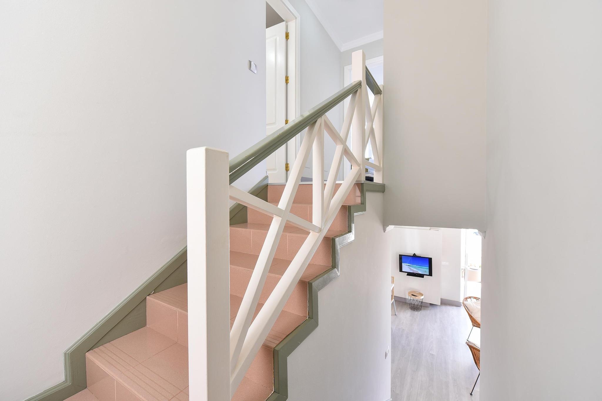 Stueetage: (åbent køkken(brødrister, komfur(glaskeramisk), kaffemaskine, ovn, mikrobølgeovn, køle-fryseskab), stue / spisestue(Fjernsyn(kabel, parabol, Smart-TV), spisebord, sofahjørne), toilet) På 1. etage: (Soveværelse med badeværelse(2x enkeltseng, bruser, håndvask, toilet), Soveværelse med badeværelse(2x enkeltseng, bruser, håndvask, toilet)) vaskemaskine, balkon, klimaanlæg, terrasse(privat), have(privat), havemøbler, grill(gas), parkering, swimmingpool(deles med andre gæster, 16 x 8 m.), barneseng, barnestol