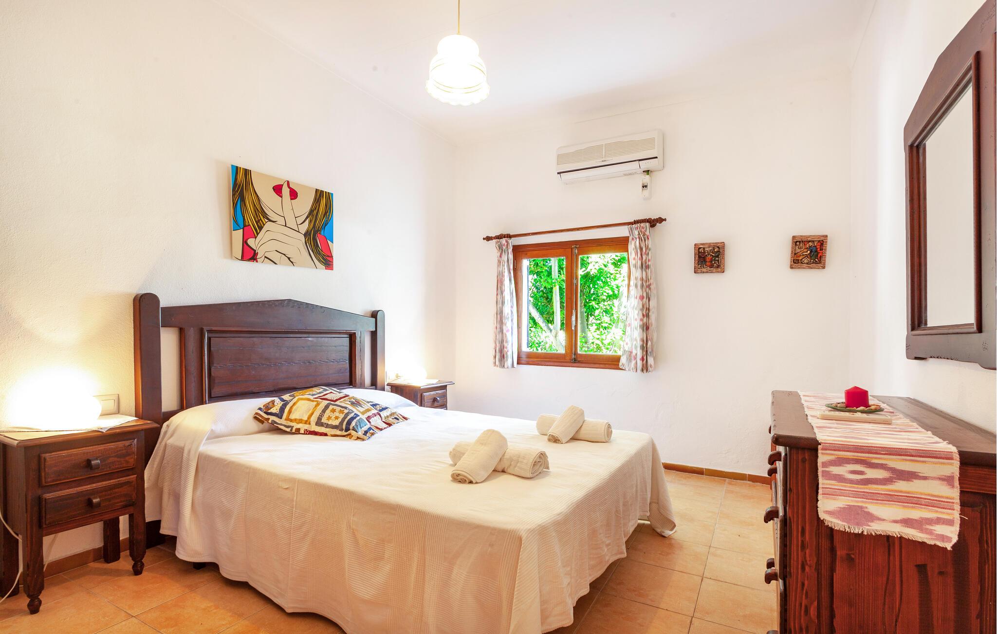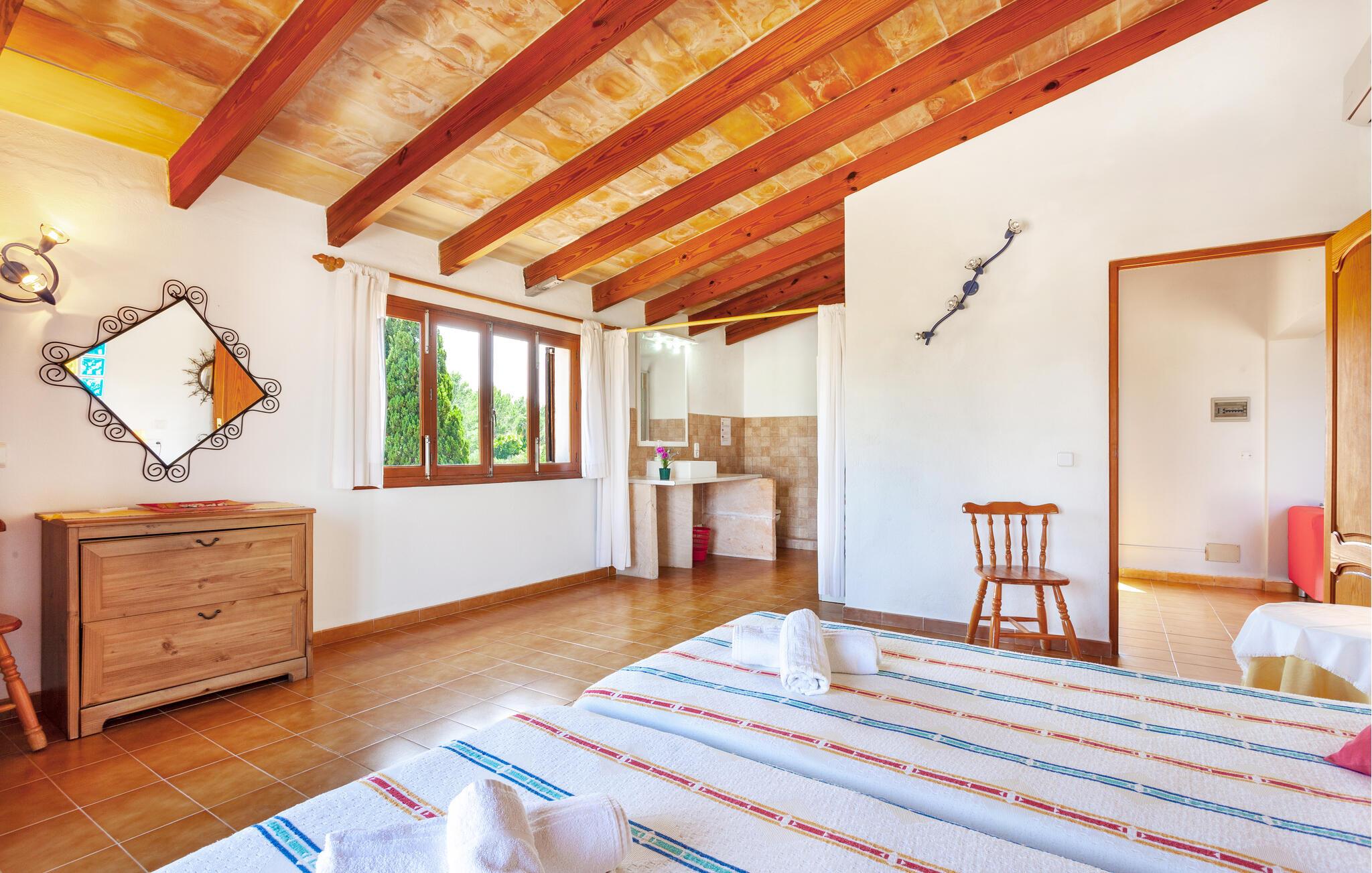 I rolige, landlige omgivelser omgivet af middelhavsvegetation tilbyder denne autentiske mallorcanske finca det perfekte sted for en uforglemmelig ferie med venner eller familie. Glæd jer til at lave mad sammen, samles til hyggelige måltider og slappe af om aftenen med en god film.