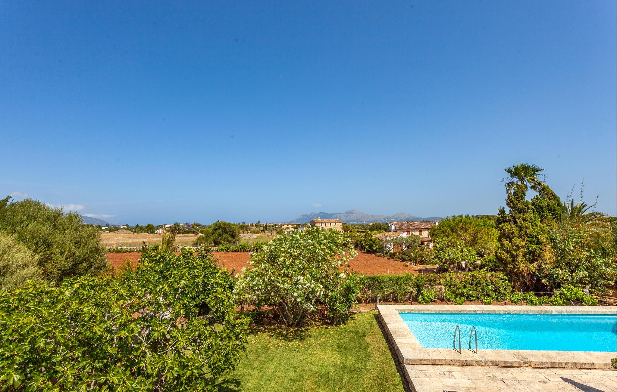 Den afskærmede grund, prydet med typiske ø-planter, tilbyder den privatliv, I har brug for, for fuldt ud at nyde Mallorcas vidunderlige klima. Begynd dagene med friskpresset appelsinjuice og croissanter, planlæg jeres aktiviteter i ro og mag, og snup en frisk dukkert til jeres hjertes lyst i den glitrende pool. Her kan I tilbringe afslappende timer på liggestolene, fordybe jer i jeres ferielæsning eller nyde den fredelige atmosfære under en siesta. Tænd op i grillen og oplev mindeværdige aftener med nære venner og familie.