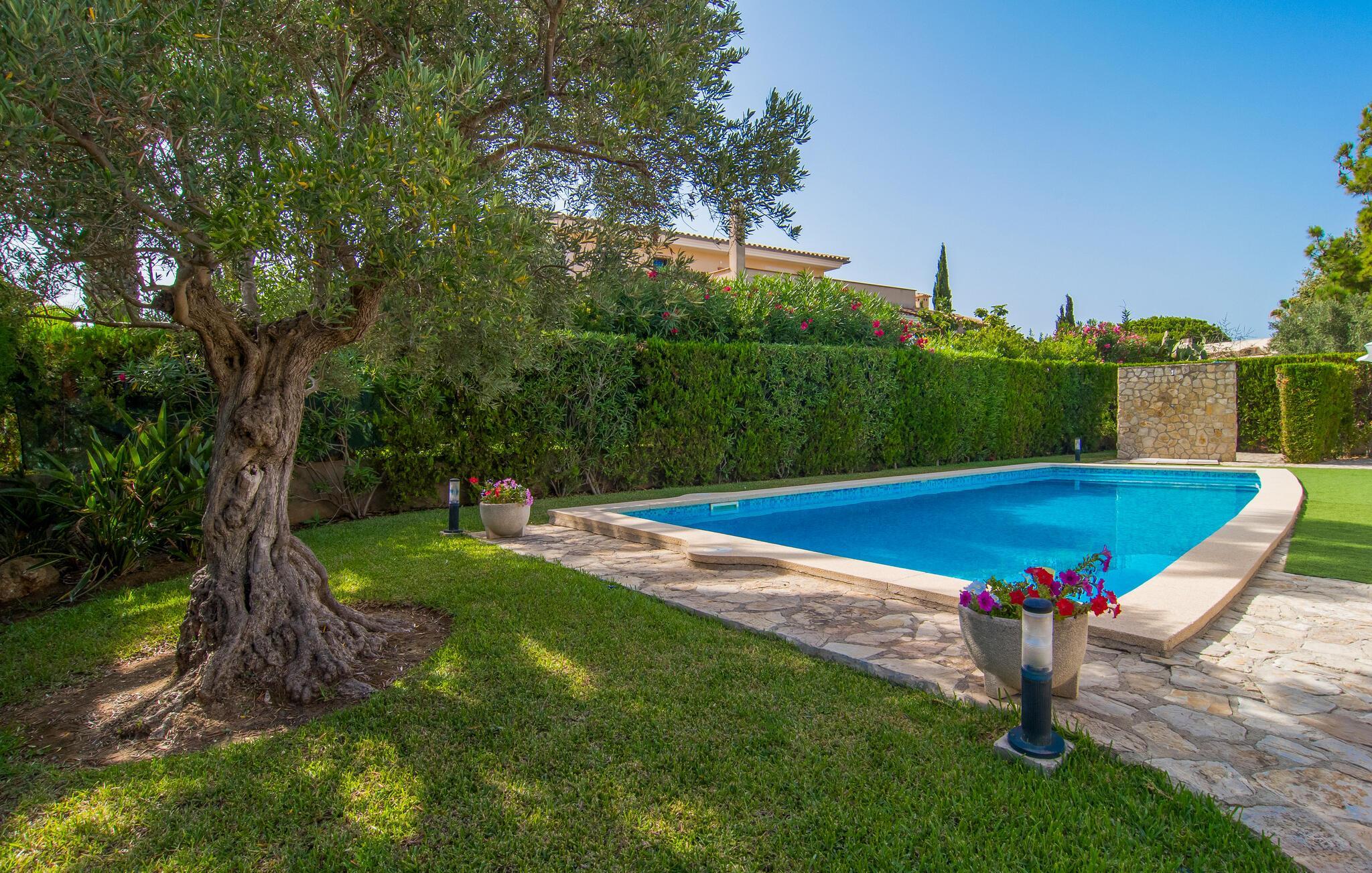 Denne rummelige og stilfulde villa giver jer og jeres storfamilie eller venner et komfortabelt feriehjem, hvor intet mangler. De lyse, rummelige værelser fordeler sig over to etager og lægger op til ren afslapning. Start dagen med en fælles morgenmad i det fuldt udstyrede køkken, og slap derefter af i den smukt anlagte have. Verandaen og solterrassen ved poolen er perfekte steder til at nyde den mallorcanske sol og tilbringe opkvikkende timer ved poolen.
