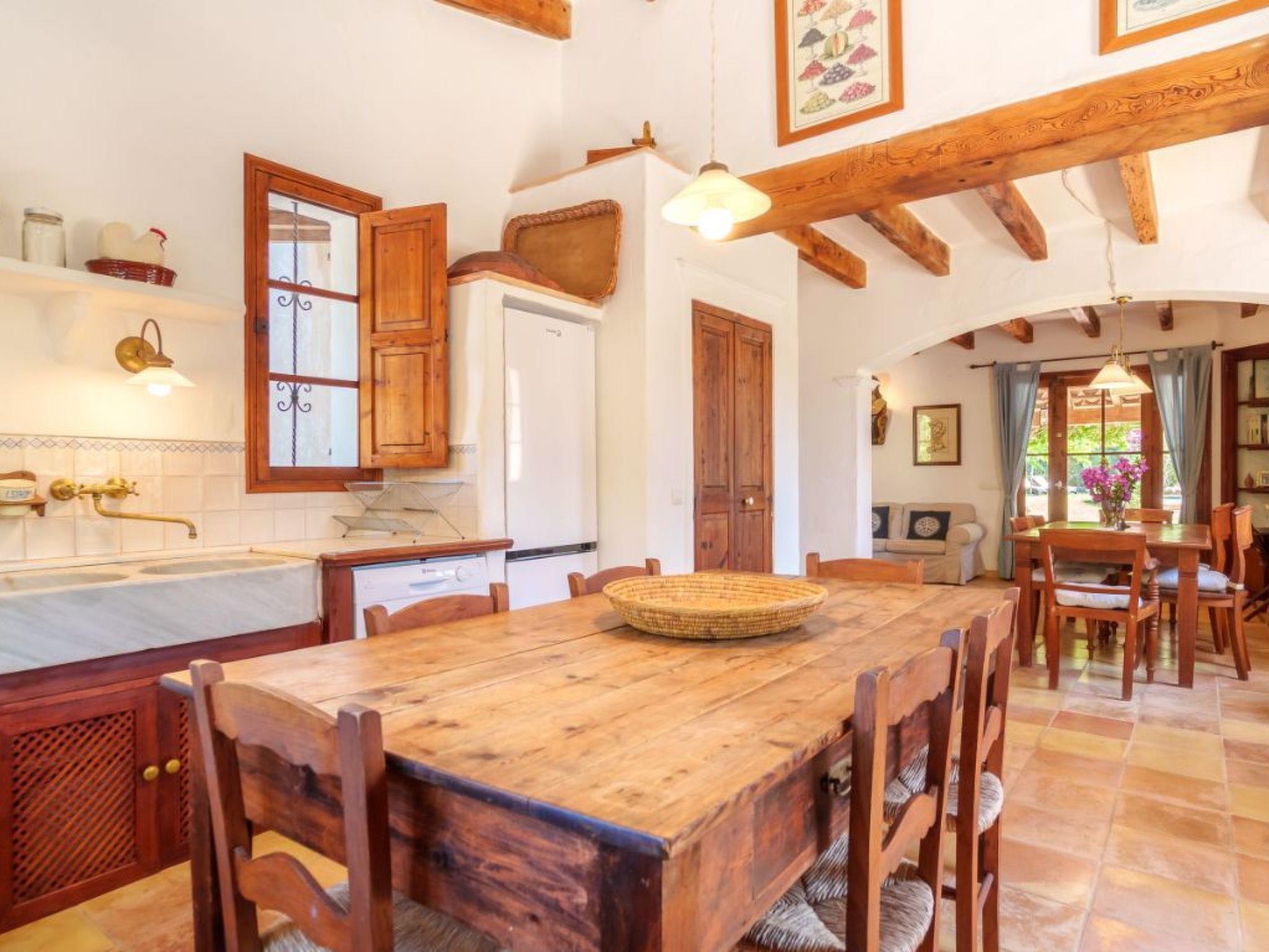 Magnificent house on the outskirts of Pollensa, situated in a quiet area, freshened by cool sea breezes, overlooking the countryside and mountains surrounding Pollensa. Built with high quality materials, large and bright, decorated with elegant furniture and a lot of character. There is capacity for 8-12 people, with 320 m2 of living area divided into 6 bedrooms, 1 of these in the basement, 4 bathrooms, 1 of these en Suite, a lovely dining room with exposed beams, a fully equipped kitchen and hot-cold air conditioning in the bedrooms. In the basement of the house there are 2 English style courtyards, allowing natural light in on that floor. There is also an independent study with dining room, kitchen, bathroom and 1 double bedroom, but when the house is rented for 8 people the study remains closed. Outside is a lovely furnished veranda furnished and a fantastic very well kept garden with private pool and solarium. Very well located, only 2.5 km from the village and 3 km from the beautiful Bay of Pollensa and its beaches.