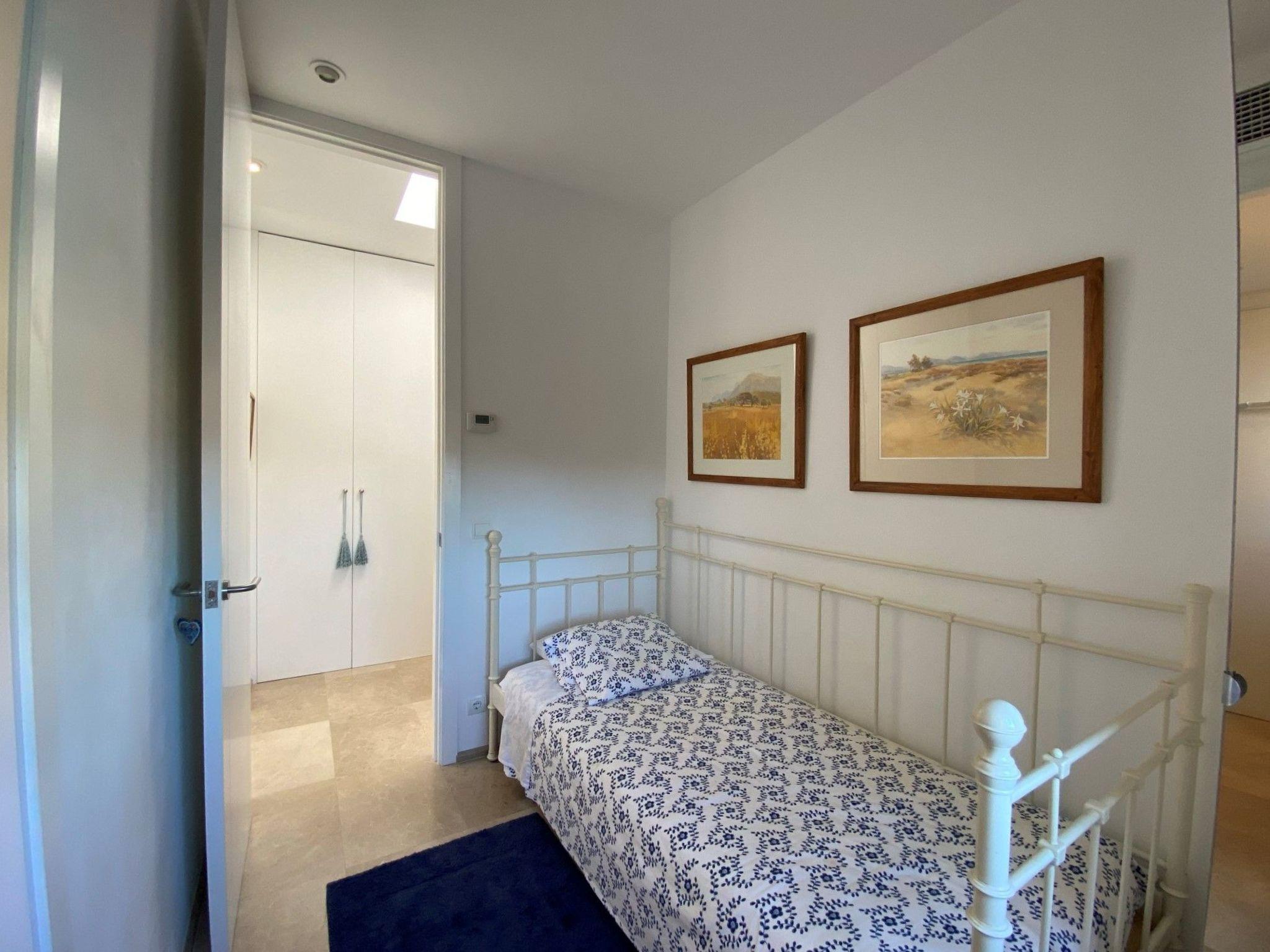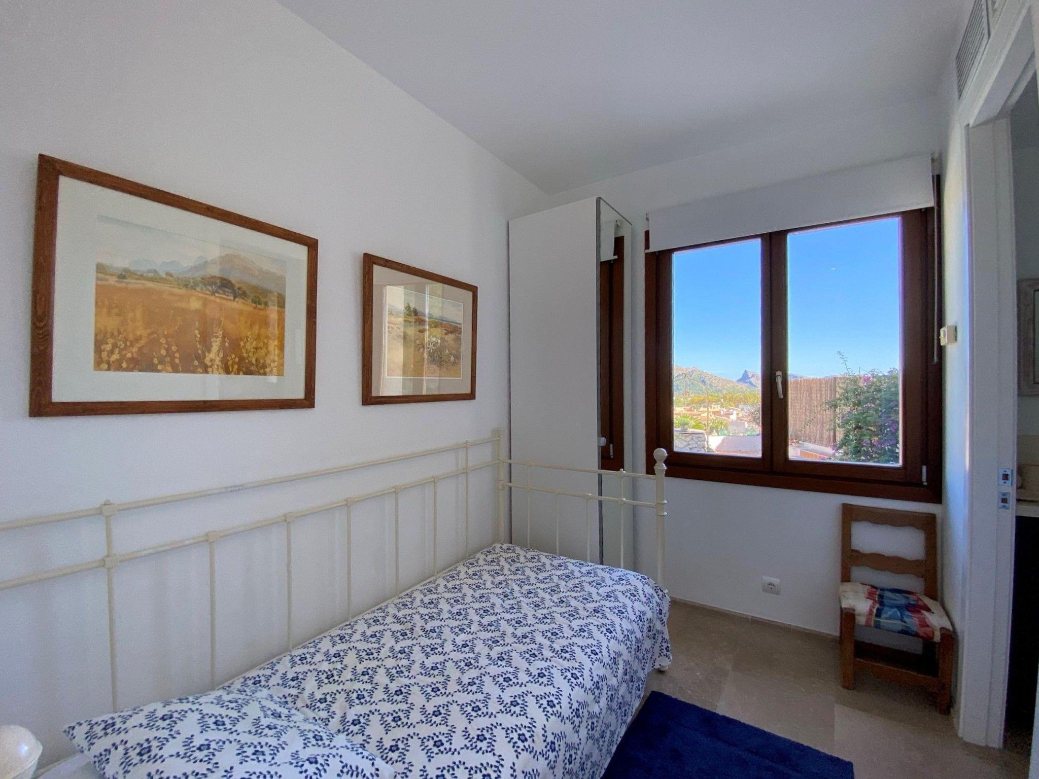 New house located at the top of Pollensa, with views to the bay of Pollensa and Alcudia. Fully equipped with quality furnishings for exquisite comfort during your stay on the island. The house has two levels, equipped with air conditioning in all rooms, living room with comfortable sofas and satellite TV, DVD player, radio and CD player. Fully equipped kitchen with high quality appliances, induction cooker, multipurpose microwave, oven, fridge/freezer. Master bedroom with king size bed. One single bedroom, plus a sofa bed that sleeps 1 or two people. A cot is also available if required.