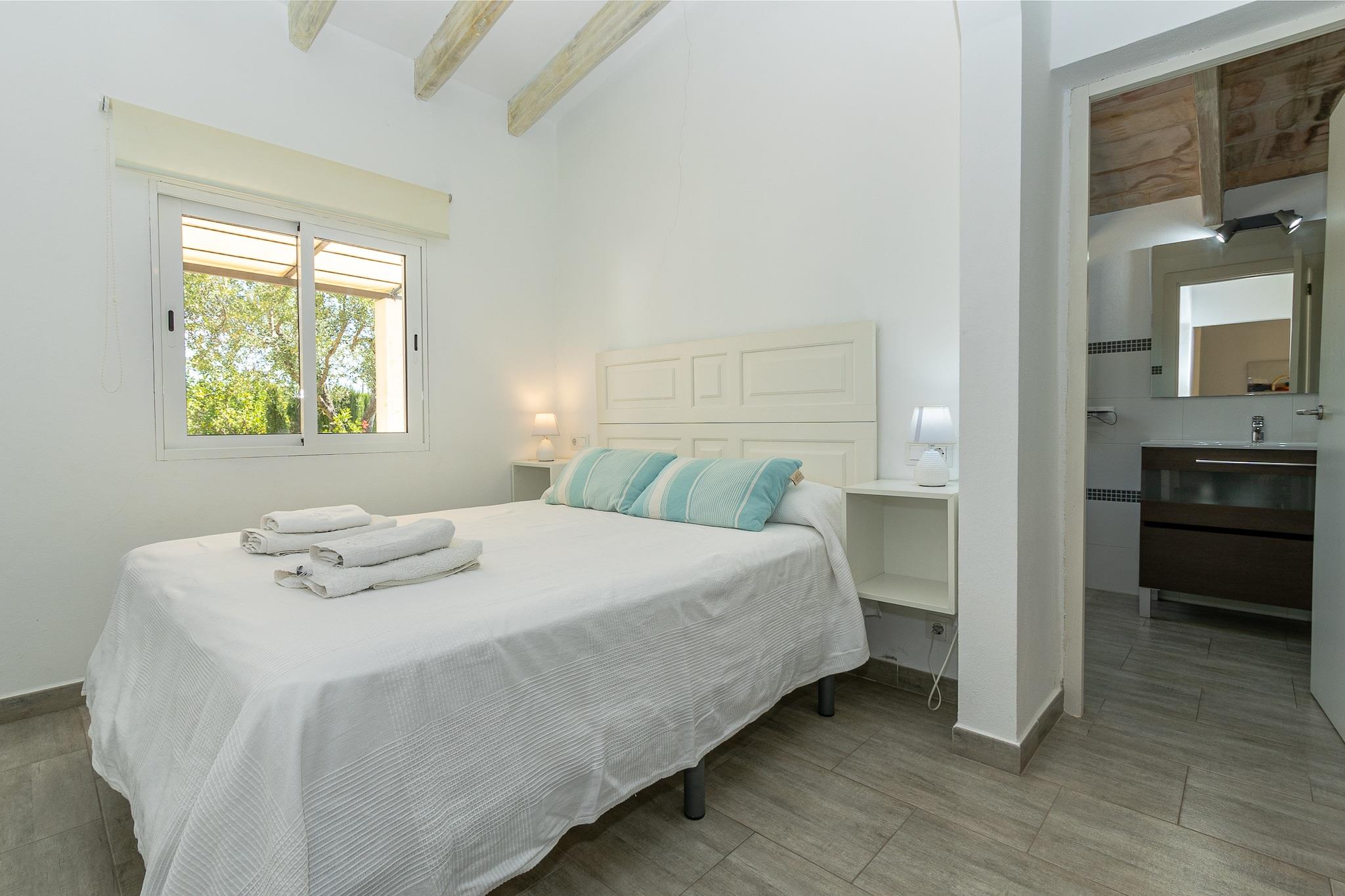 The landejendom i Pollensa har 1 soveværelse(r) og kapacitet til 2 person(er). Bolig på 70 m² hyggelig og har alt udstyr, med udsigt til have. Er beliggende i en ideel for familier område og i flotte omgivelser. Tilbyder have, terrassemøbler, vaskemaskine, grill, kamin, strygejern, internet (wifi), aircondition, TV, satellit (Sprog: Spansk, Engelsk, Tysk). The køkken, på keramiske kogeplader, med service og køleskab, mikroovn, ovn, fryser, opvaskemaskine, tallerkener/bestik, køkkenredskaber, kaffemaskine, brødrister, kedel og saftpresser.