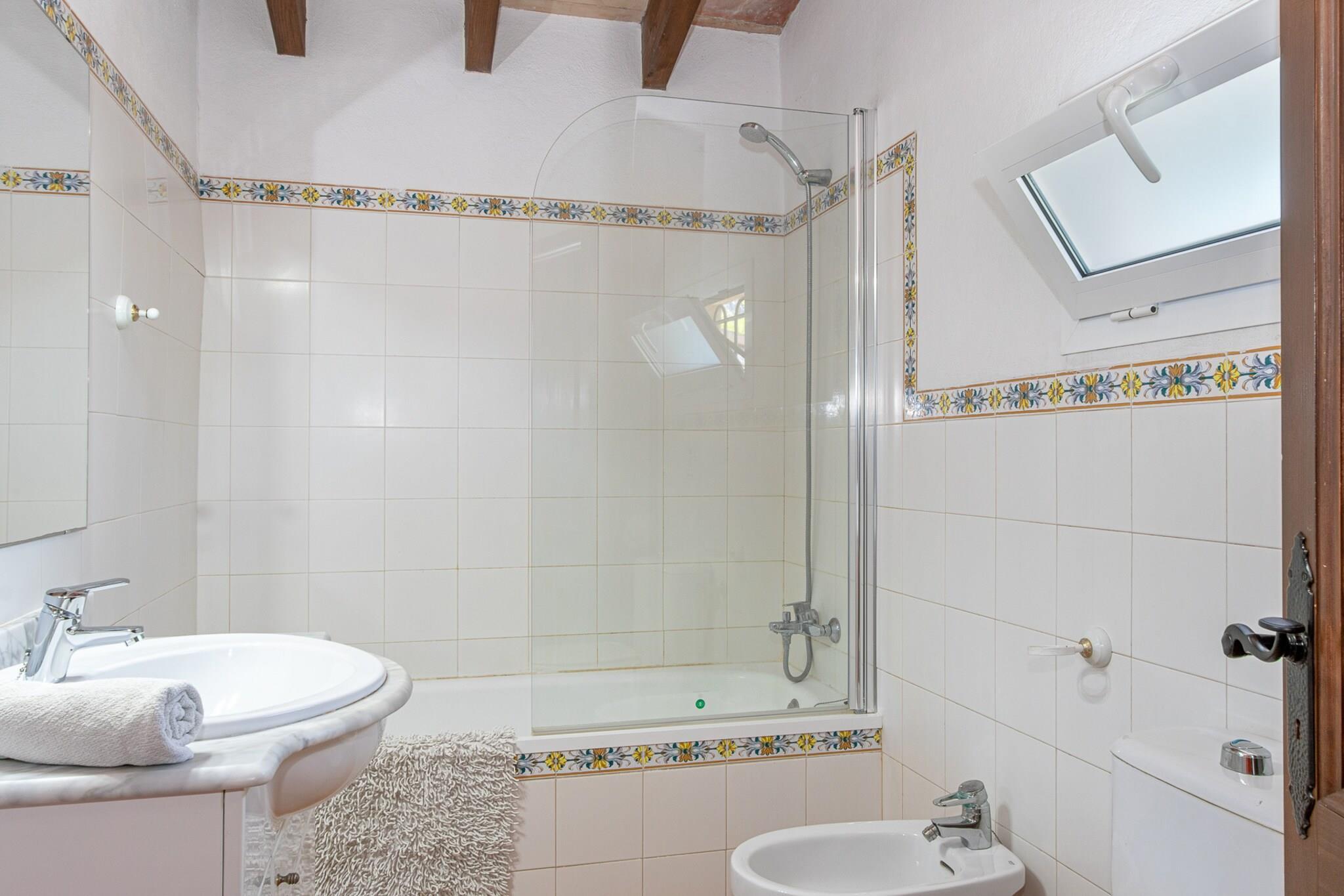 The villa i Pollensa har 3 soveværelse(r) og kapacitet til 6 person(er). Bolig på 286 m², med udsigt til bjerget og have. Er beliggende 4 km fra golfbanen "Golf Club Pollensa", 7 km fra stranden "Cala Barqués", 7 km fra stranden "Playa Puerto Pollensa", 8 km fra stranden "Cala San Vicente", 11 km fra vandland "Hidropark", 12 km fra naturparken "Monasterio de Lluc", 15 km fra naturparken "Parc natural s´Albufera", 16 km fra stenstranden "Aucanada", 20 km fra stranden "Formentor", 23 km fra stranden "Playa Playas de Muro", 59 km fra lufthavnen "Aeropuerto Son San Joan". Tilbyder have, terrassemøbler, terrasse, vaskemaskine, grill, kamin, strygejern, pengeskab, internet (wifi), hårtørrer, aircondition, swimming pool privat, TV. The køkken, med service og køleskab, mikroovn, fryser, opvaskemaskine, tallerkener/bestik, køkkenredskaber, kaffemaskine og kedel.