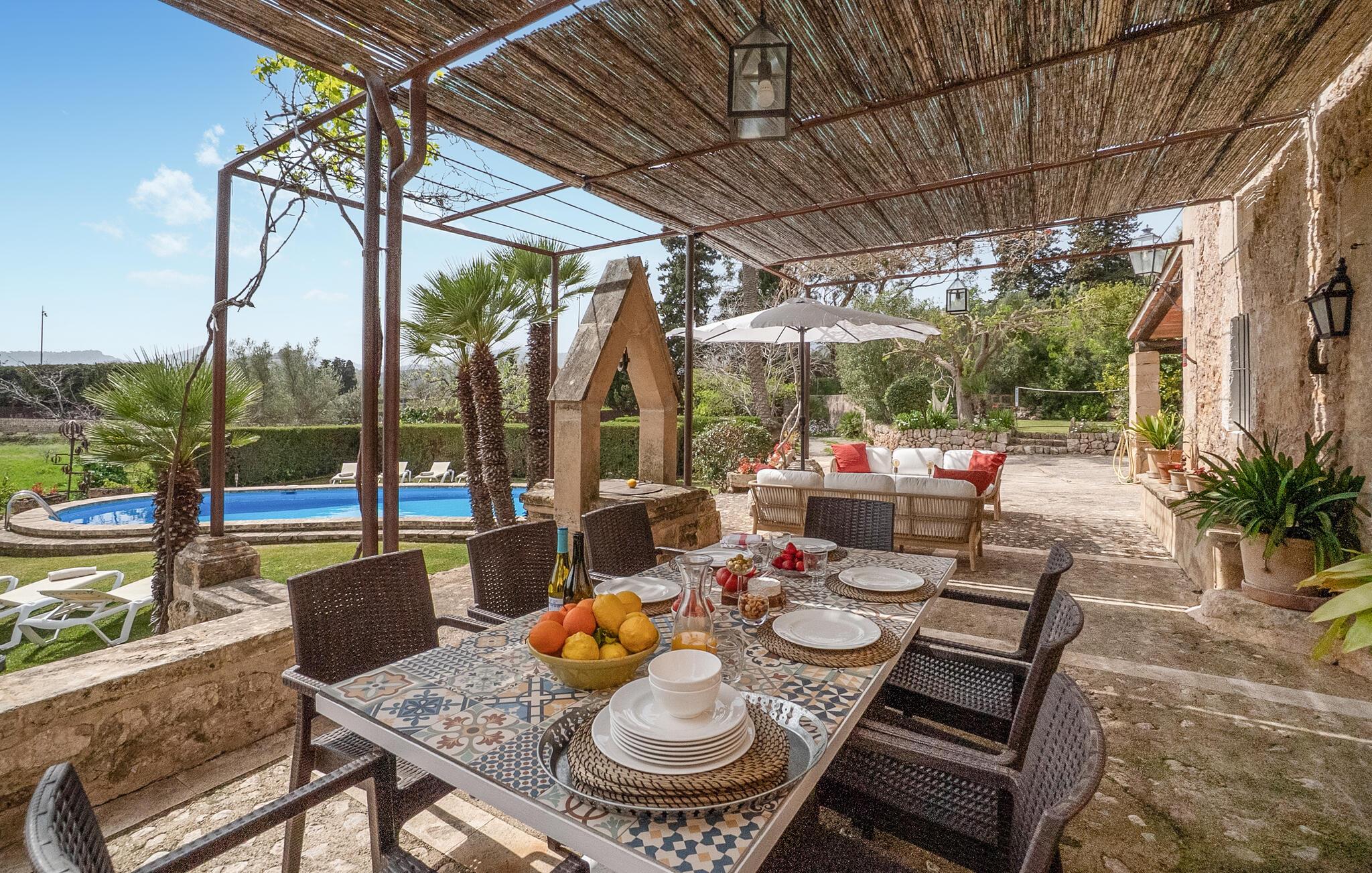 Nyd det mallorcinske liv i denne smukke og rummelige stenfinca med swimmingpool.