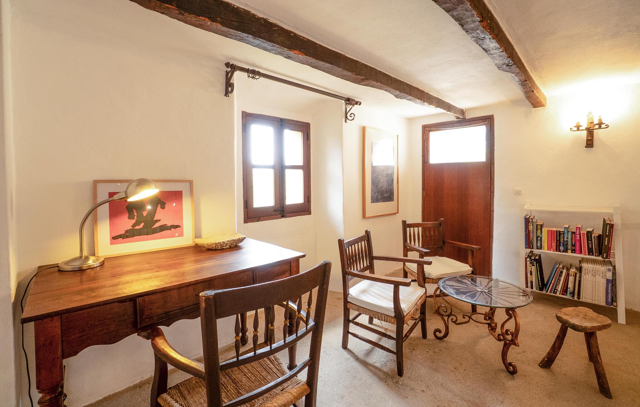 Denne store finca med rustik charme byder jer velkommen med synlige bjælker, stemningsfulde stenvægge og en kærlig indretning. Den stilfulde dekoration og de varme farvetoner skaber en hyggelig atmosfære, der indbyder til afslapning. I det veludstyrede køkken kan I tilberede lækre måltider, mens den rummelige stue er perfekt til hyggelige aftener. Udenfor venter en stor have med middelhavsplanter, hyggelige terrasseområder, en grill og en skøn swimmingpool med liggestole.