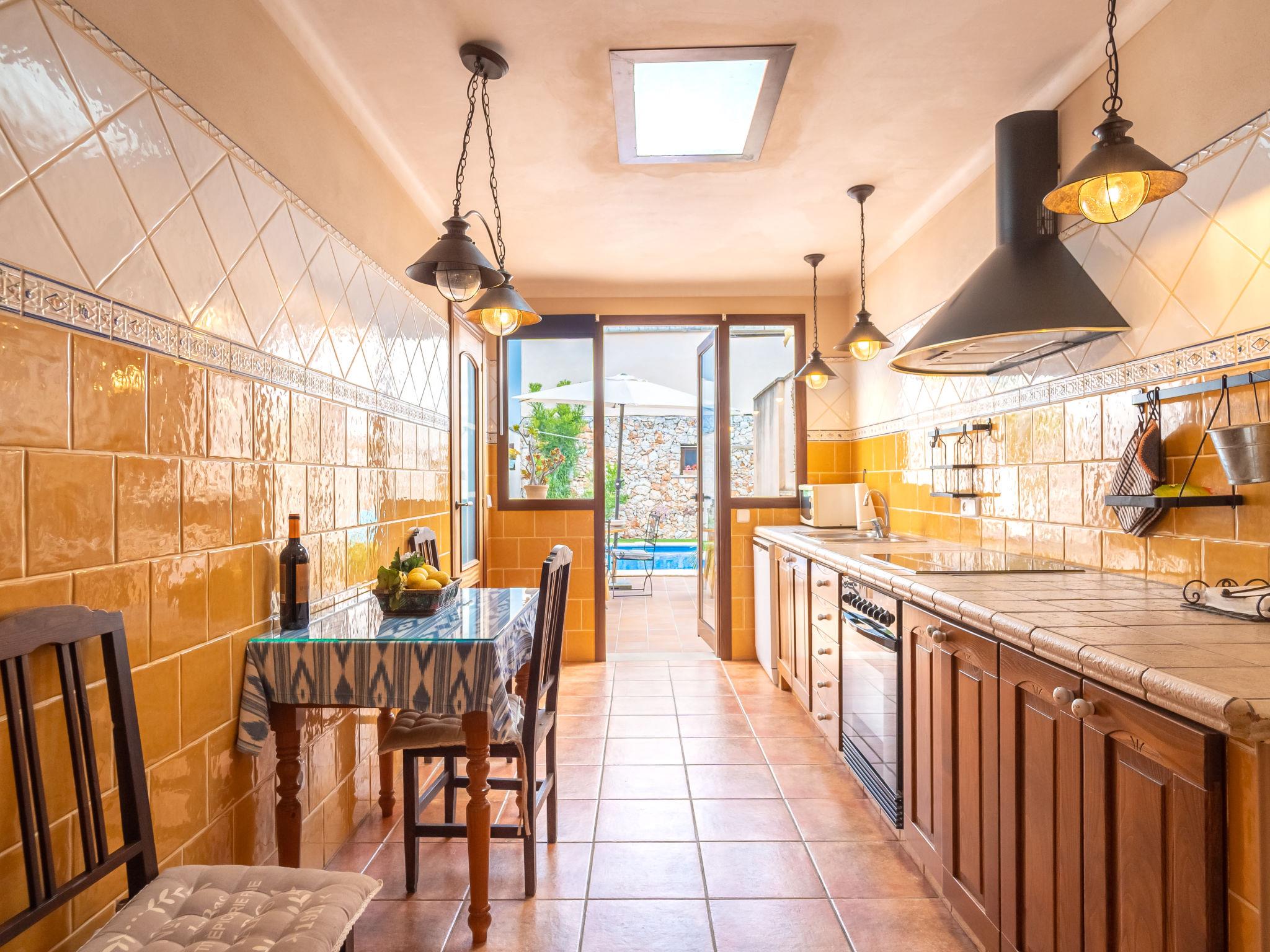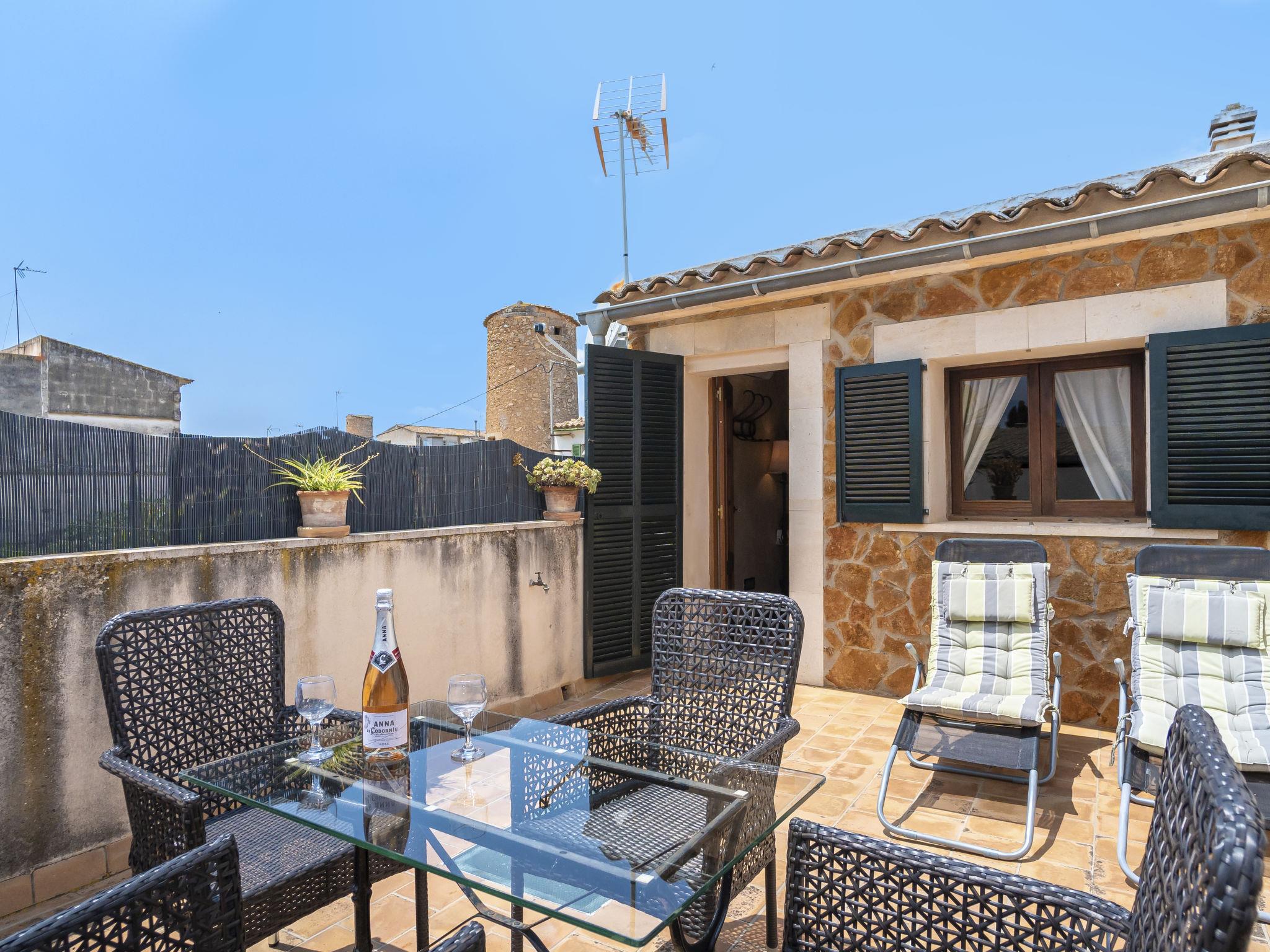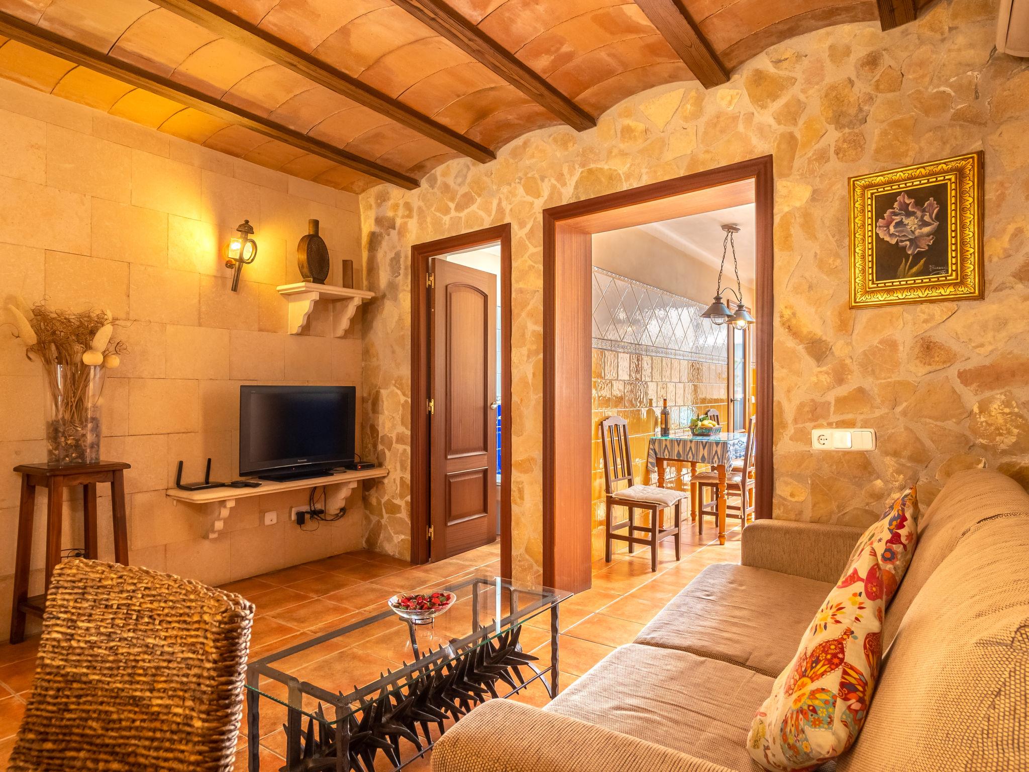 "Pueblo", 3-room house 100 m2 on 2 levels. Object suitable for 4 adults. Tasteful furnishings: living/sleeping room with 1 sofabed, dining table, satellite TV, digital TV, radio and CD-player. Open kitchen (oven, dishwasher, 3 ceramic glass hob hotplates, toaster, kettle, microwave, freezer, electric coffee machine) with small dining table. Exit to the terrace. Shower/WC. Upper floor: (steep stair), 1 room with 1 french bed (145 cm). 1 room with 2 beds (90 cm, length 190 cm). Exit to the terrace. Sep. WC. Heating, air-conditioning. Terrace 10 m2, terrace 15 m2. Terrace furniture, barbecue, deck chairs (3). Facilities: washing machine, dryer, iron, children's high chair, baby cot, hair dryer. Internet (WiFi, free). Please note: non-smoking house. Fire extinguisher. ETV/5291 // Reg. Nr.: ESFCTU00000700800100497600000000000000000000ETV/52911