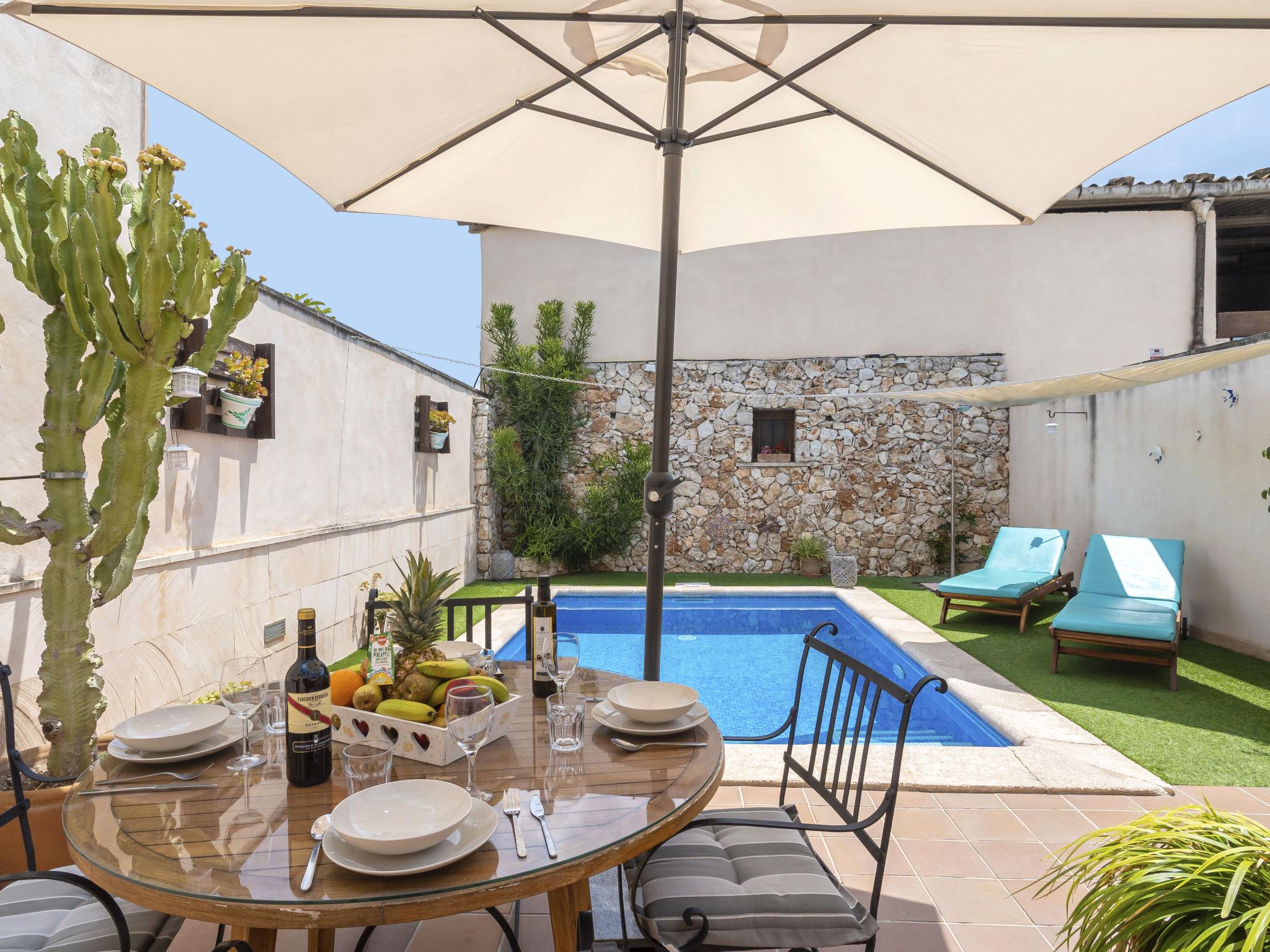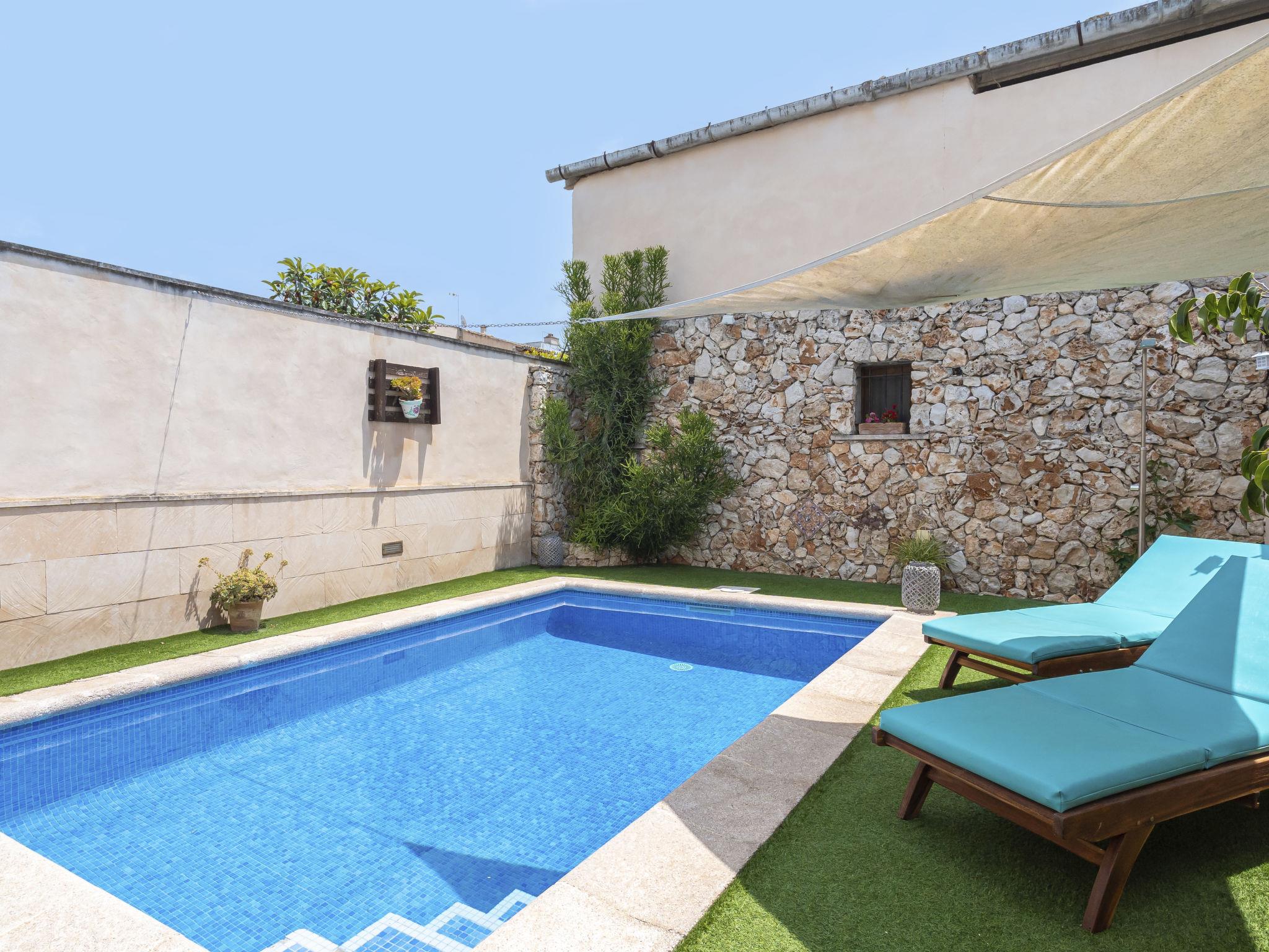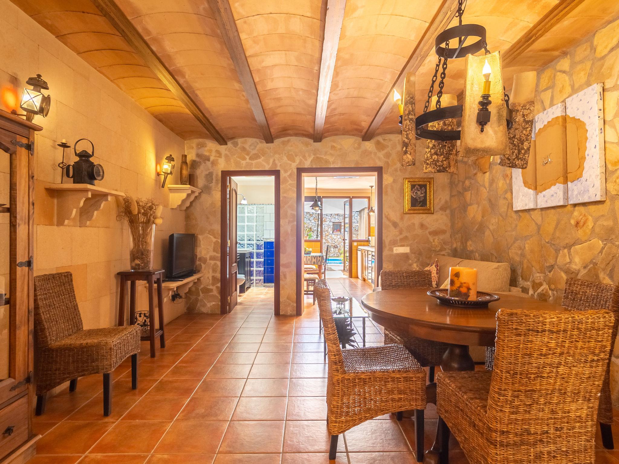 House "Pueblo", semi-detached. In the resort 400 m from the centre of Porreres, 9.5 km from the centre of Campos, 20 km from the centre of Manacor, 19 km from the sea. Private: property 140 m2 (fenced), swimming pool (5 x 3 m, seasonal availability: 01.Jan. - 31.Dec.). Outdoor shower, terrace. In the house: storage room for bicycles. Parking on the premises. Supermarket 300 m, bus stop 100 m, sandy beach "Es Trenc" 19 km. Please note: car recommended.