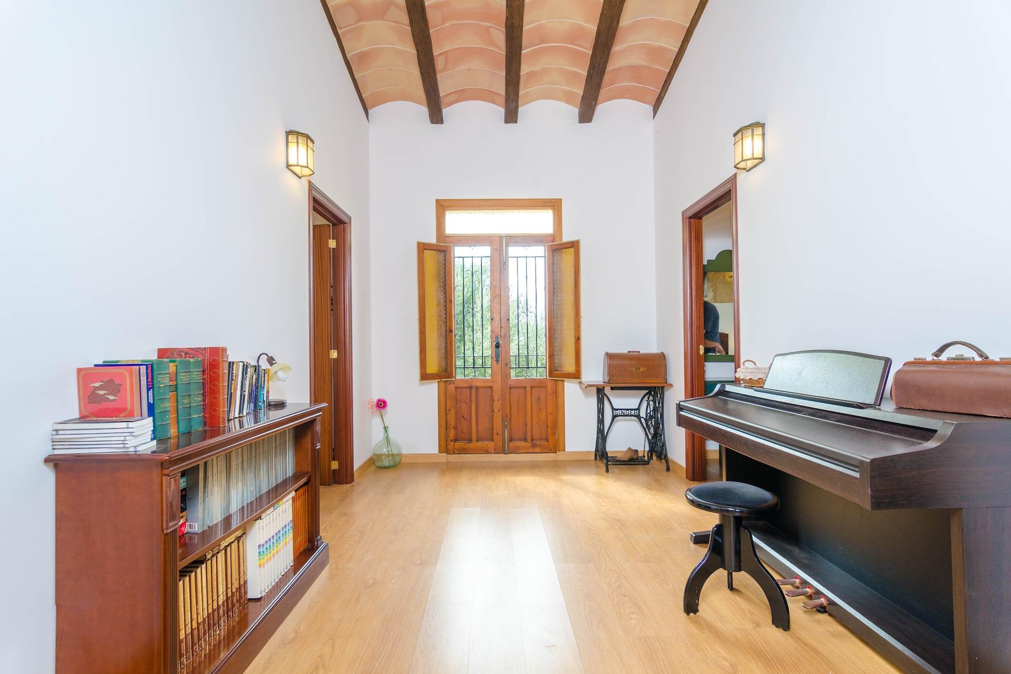 Afslappet landskabsflugt Denne villa i Porreres tilbyder rustik charme med moderne komfort, ideel til familier eller venner. Indenfor finder du fire soveværelser, to badeværelser, et fuldt udstyret mallorcansk køkken og indbydende rum, herunder en spiseplads med pejs og en stue med klaver ovenpå. Udendørs giver en naturlig selvrensende pool (6x6m) en forfriskende dukkert, omgivet af liggestole, frugttræer og en udendørs bruser. Gæsterne kan plukke årstidens appelsiner, citroner og abrikoser eller samles på den skyggefulde terrasse til en grill, mens ejendommens fritgående kyllinger bidrager til den landlige atmosfære. Kæledyrsvenlig og naturskønt Kæledyr er velkomne, og den indhegnede have og landlige omgivelser gør dette til et godt valg for dem, der rejser med dyr. Nærliggende stier inviterer til naturskønne gåture eller cykling, mens rideture gennem Randa tilføjer variation. Kun få skridt væk byder landsbyen Porreres på caféer, butikker og en varm fællesskabsfølelse - perfekt til at udforske til fods, selv med dit kæledyr. Strande og spisesteder i nærheden En kort køretur bringer dig til Mallorcas mest fantastiske strande, herunder Es Trenc, Sa Ràpita og Colònia de Sant Jordi, hvor krystalvand møder blødt sand. Lokale restauranter serverer frisk fisk og skaldyr, mens Porreres selv byder på autentisk spisning langs Avenida Bisbe Campins. Den centrale beliggenhed gør også dagsture nemme, lige fra at besøge Sanctuary of Cura til tee off på Golf Son Gual.