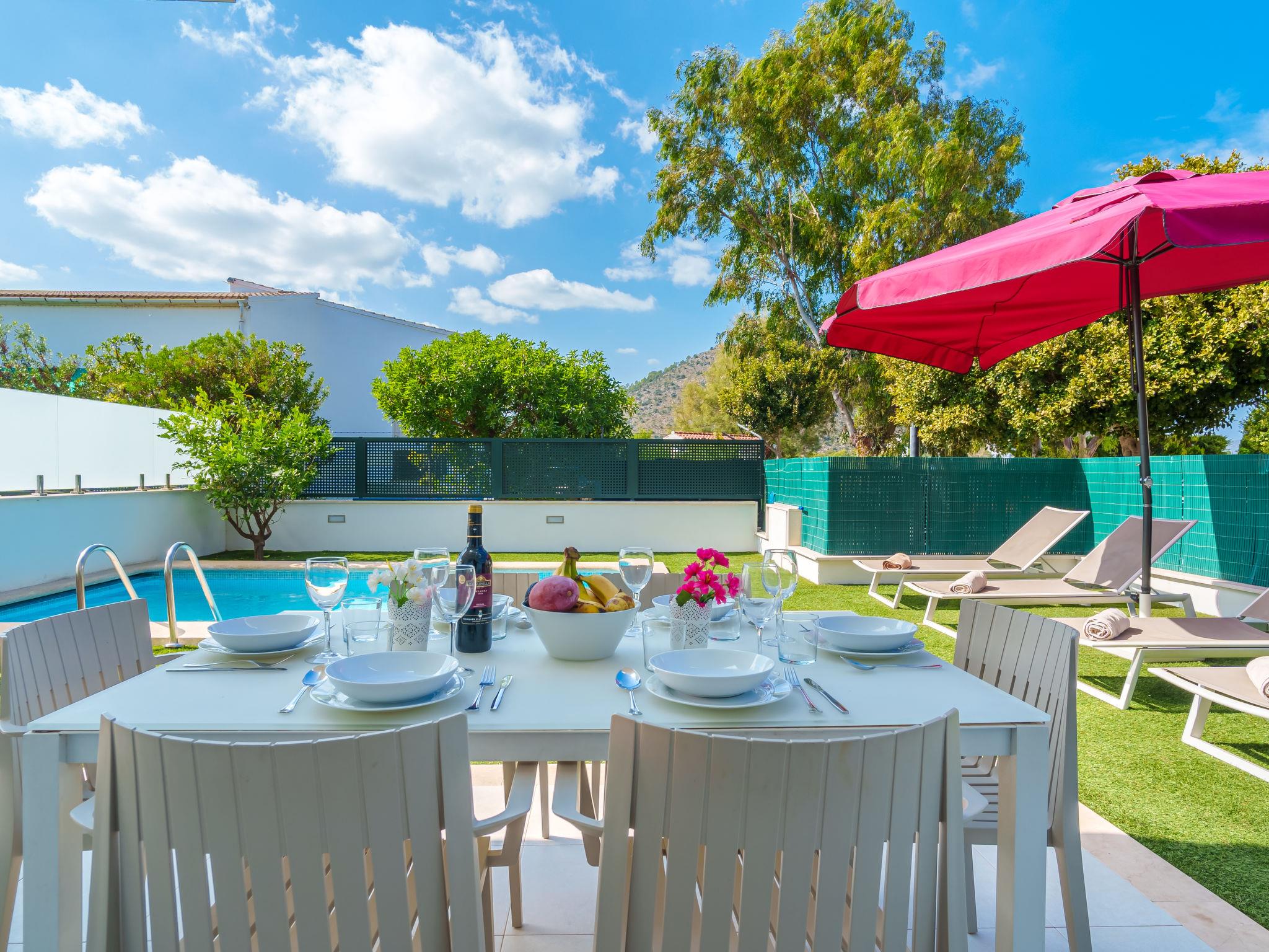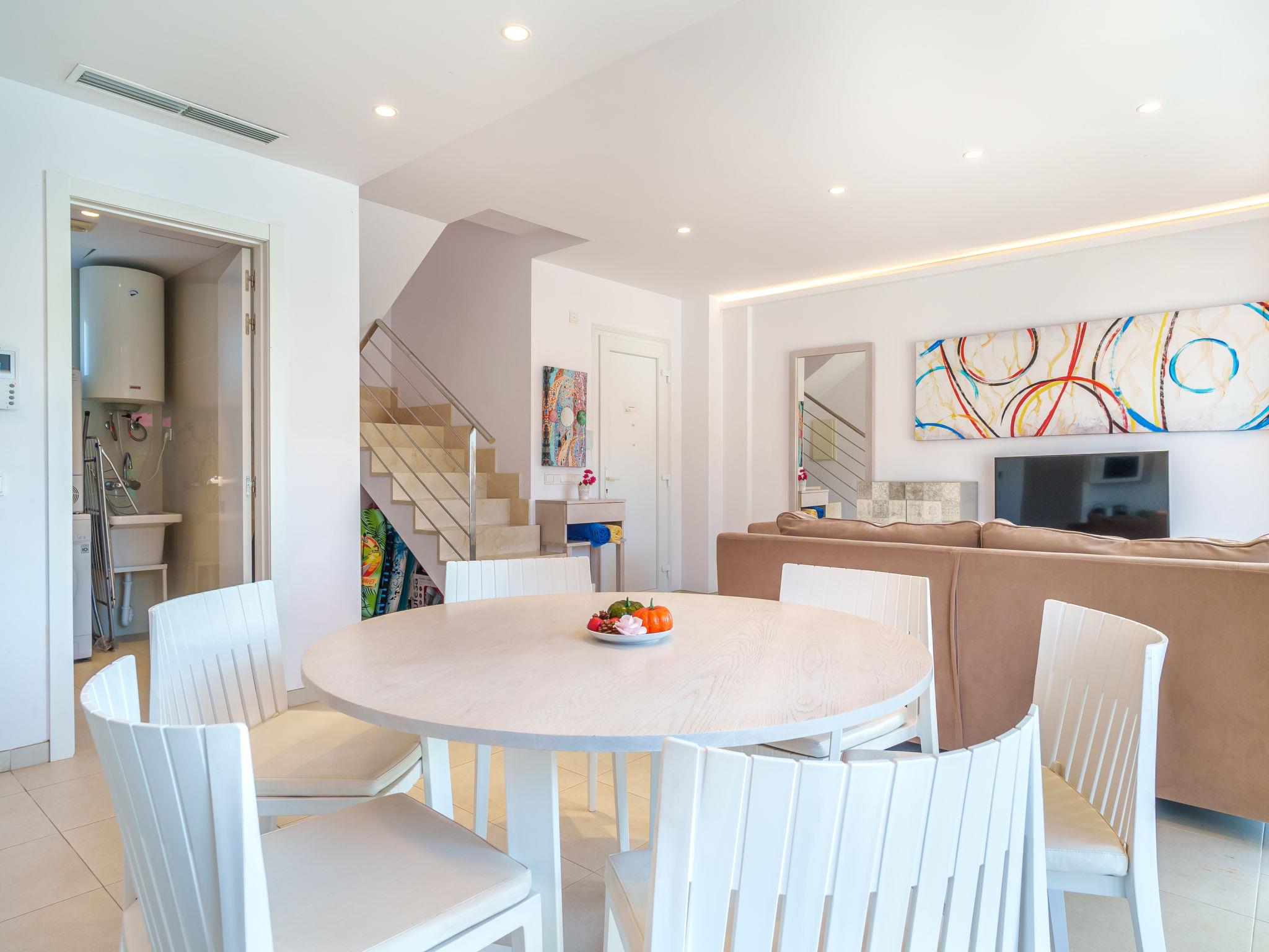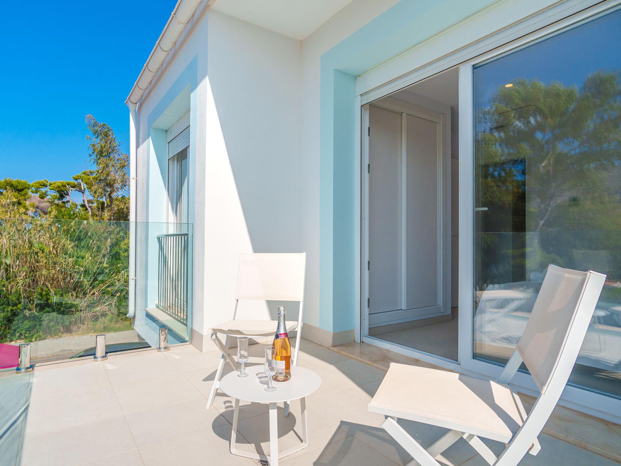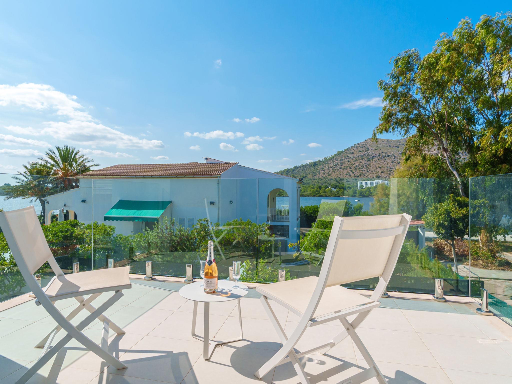 Port d'alcúdia: Very modern, beautiful house "Teresa Beach 1", 2 storeys, semi-detached, built in 2017. In the resort, in a quiet, sunny position, 900 m from the edge of the forest, 100 m from the sea, 3 m from the lake, 120 m from the beach, 1 m directly by the canal, direct access to the lagoon. Private: beautiful garden with lawn and wildlife garden, swimming pool angular (6 x 4 m, seasonal availability: 01.Jan. - 31.Dec.). Outdoor shower, patio, arbour, garden furniture. In the house: WiFi, central heating system, air conditioning, burglar alarm system, washing machine, tumble dryer. Shop, grocery, supermarket, restaurant, bar 300 m, 15 minute walk to the centre, bus stop 200 m, sandy beach 120 m, rocky beach 3 km, bathing lake 3 m. Sports harbour 4.5 km, marina 4.5 km, golf course (18 hole) 7 km, tennis 1 km, riding stable 2 km. Please note: suitable for families, suitable for seniors. Object suitable for 6 adults groups of teenagers on request only. Airfield 50 km from the property. The complex has another 4 houses for rent.