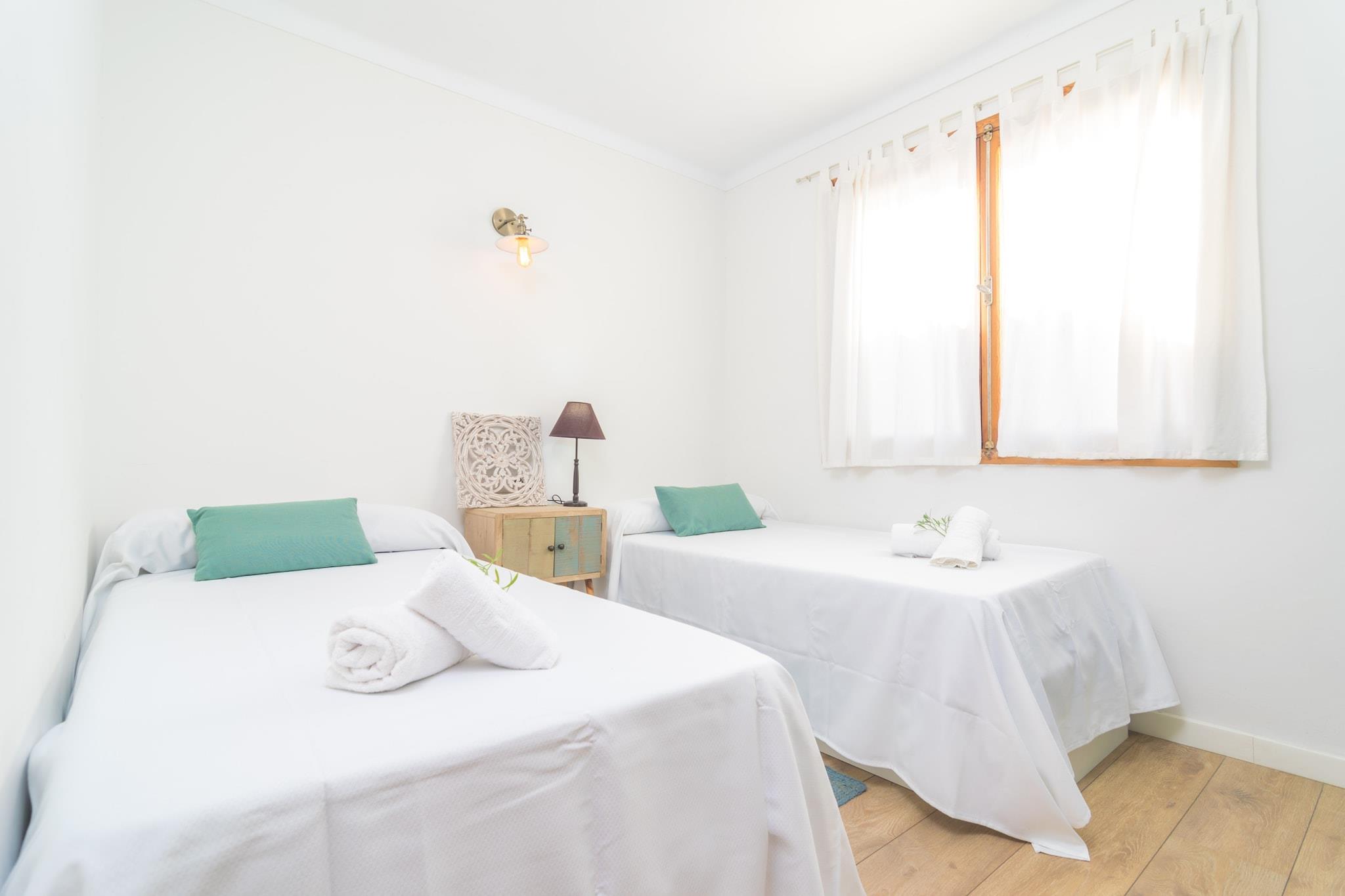 Afslappet udendørsliv Gemt mellem to naturskønne søer og kun 1 km fra Puerto de Alcúdias strand indbyder denne hytte til nemme dage tæt på vandet. Den indhegnede have er designet til at slappe af - start morgenen med morgenmad udendørs, nyd en grill ved solnedgang, eller svaj blidt i hængekøjen med en bog. Fire liggestole giver plads til at nyde middelhavssolen, mens et udendørs toilet tilføjer ekstra bekvemmelighed. Komfortabelt moderne interiør Indenfor møder rustik stil moderne detaljer. Den airconditionerede stue tilbyder plads til at hvile med en sofa, tv og spiseplads, der forbinder til det fuldt udstyrede køkken. Et vaskerum med vaskemaskine og strygejern gør længere ophold ubesværet. Hjemmet har tre soveværelser, hver med opbevaring - et med en enkeltseng og to med to enkeltsenge. Et badeværelse med bruser og korridor AC holder rummet køligt, mens en barneseng og høj stol er til rådighed for familier. To radiatorer giver varme i køligere måneder. Livlige kystnære omgivelser Puerto de Alcúdia byder på masser at udforske - lange sandstrande med klart vand, vandsport, butikker og et pulserende natteliv. For mere rolige flugter, besøg Sant Joan eller La Victoria bugter, hver med sin egen unikke charme. Golfspillere vil nyde Alcanada Golf, kun 7,6 km væk med en flot havudsigt. Det er nemt at spise med restauranter og caféer en kort gåtur derfra, mens Alcúdias traditionelle markeder på tirsdage og søndage bringer lokale smagsprøver på bordet.