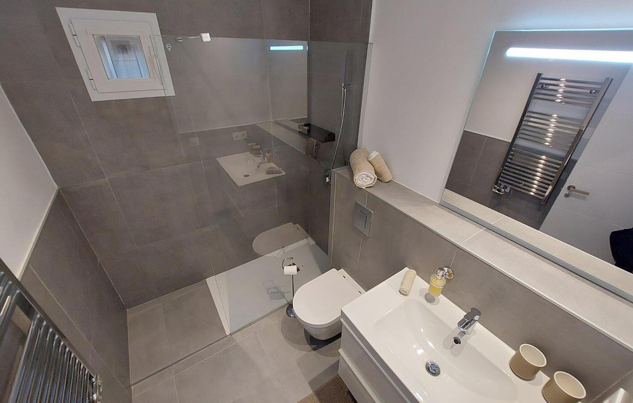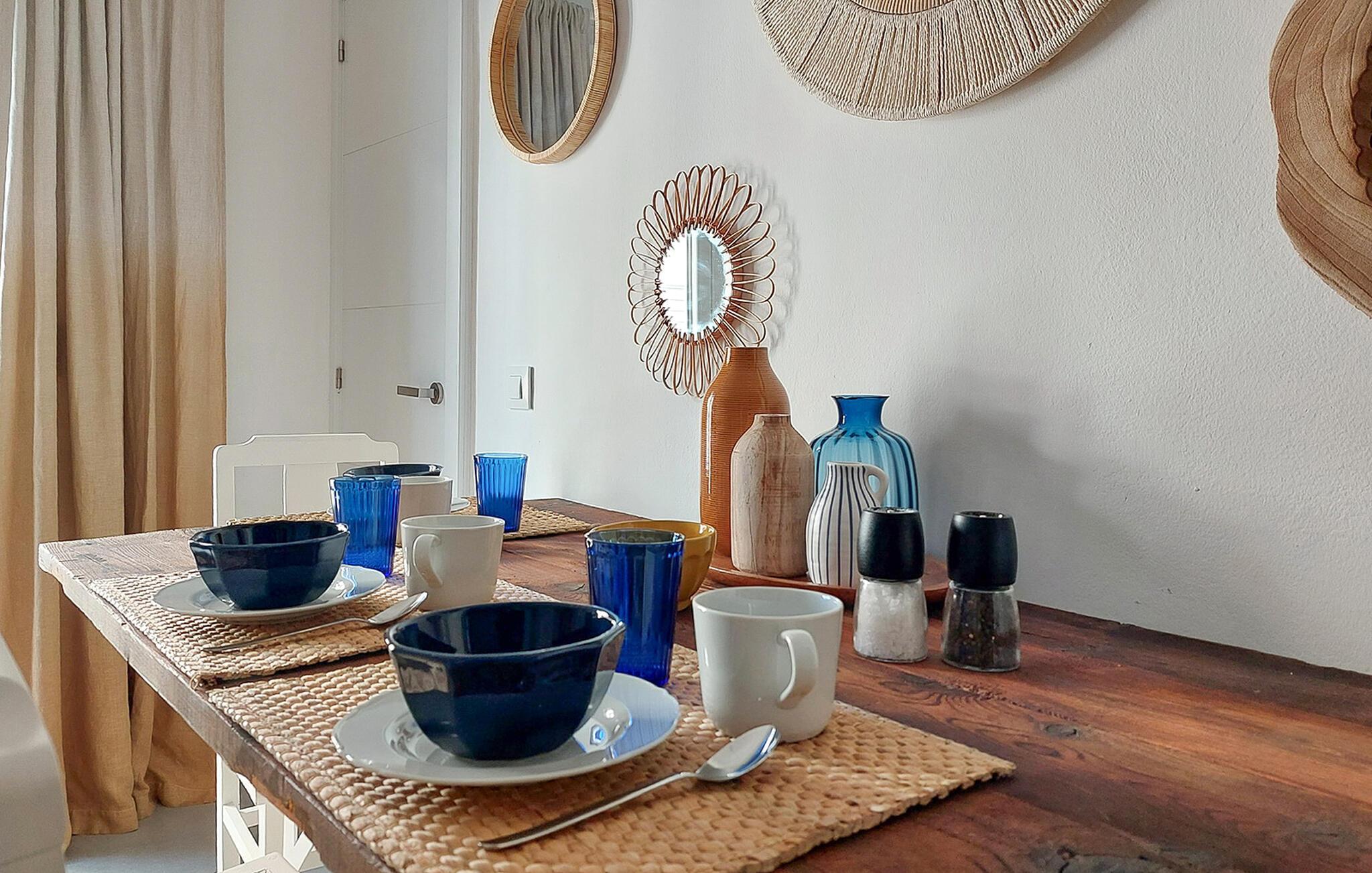 Denne moderne lejlighed tilbyder alt, hvad I behøver for en uforglemmelig ferie. Komfortable møbler, middelhavsfarver og omhyggeligt udvalgte detaljer skaber en atmosfære, hvor I hurtigt kan slappe af. Slap af på sofaen, nyd en filmaften sammen eller tilbered friske måltider i køkkenet.