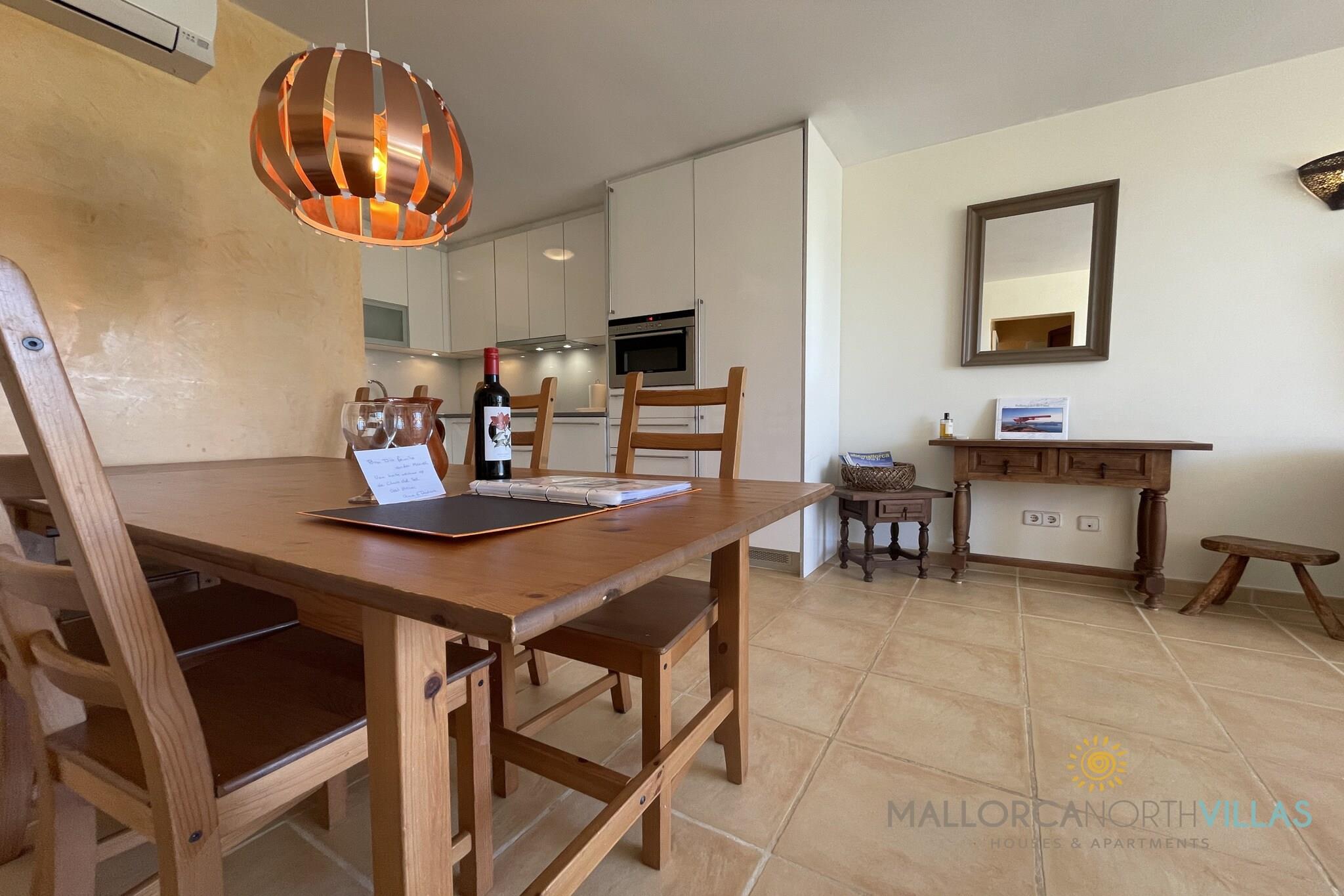 The lejlighed i Port de Pollença har 2 soveværelse(r) og kapacitet til 4 person(er). Bolig på 85 m² hjemlig og is very luminous, med udsigt til bjerget og have. Er beliggende 0 m fra togstationen, 0 m fra forlystelsesparken, 0 m fra sø, 50 m fra supermarkedet "In Club del Sol Shop", 50 m from the restaurant "The Hideaway", 200 m fra stenstranden "in front of Club del sol", 2 km fra stranden "Port Pollença", 3 km fra naturparken "Reserva Natural de s'Albufereta", 4 km fra supermarkedet "Eroski Puerto de Pollensa", 4 km fra busstationen "Port de Pollença centre", 5 km fra byen "Puerto de Pollensa", 5 km from the restaurant "Ca u Metge Restaurant", 6 km fra byen "Alcudia", 6 km fra supermarkedet "Lidl", 7 km fra vandland "Hidropark Alcúdia", 8 km fra golfbanen "Pollença Golf Club", 10 km fra golfbanen "Club de Golf Alcanada", 62 km fra lufthavnen "Aeropuerto de Palma de Mallorca" og er beliggende i en ideel for familier område og tæt ved havet. Tilbyder have, terrassemøbler, 10 m² terrasse, vaskemaskine, grill, strygejern, pengeskab, internet (wifi), hårtørrer, altan, varmepumpe, aircondition, swimming pool fælles, conditionned swimming pool fælles, utildækket parkering til den samme bygning, TV. The amerikanske køkken, på keramiske kogeplader, med service og køleskab, mikroovn, ovn, fryser, opvaskemaskine, tallerkener/bestik, køkkenredskaber, kaffemaskine, brødrister, kedel og saftpresser.