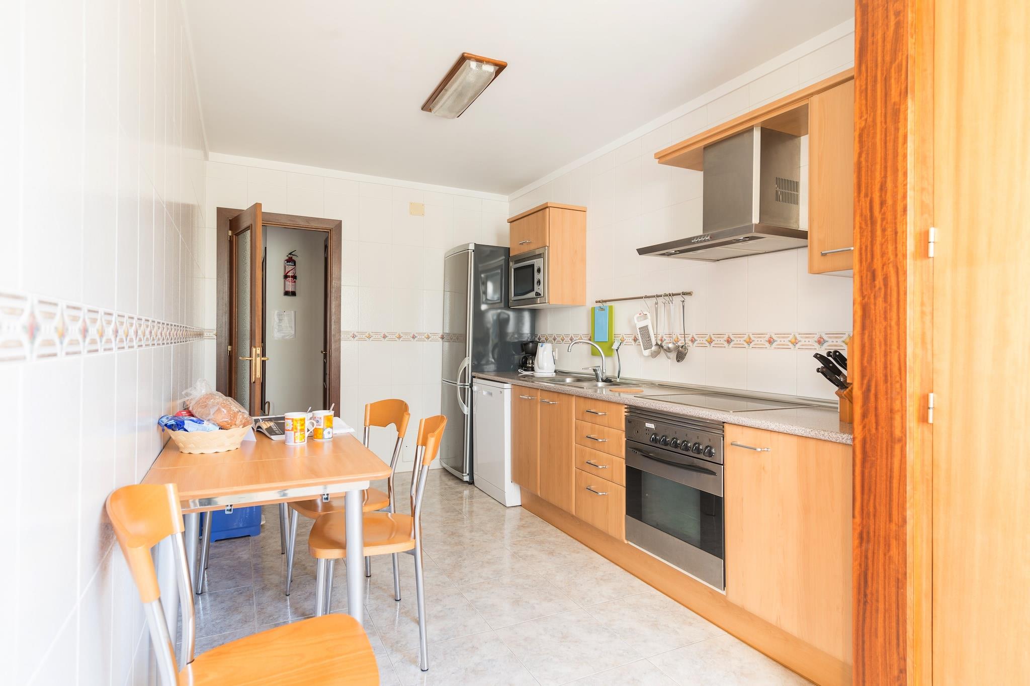 Denne lejlighed på første sal, som ligger kun et minuts gang fra stranden, tilbyder et fredeligt oase omgivet af træer og bjerge. Den enkelt møblerede terrasse er det perfekte sted at nyde morgenmad eller et glas vin med familie og venner, mens de rolige kystnære omgivelser giver en afslappende atmosfære. Indenfor er den airconditionerede stue/spisestue perfekt til at slappe af med satellit-tv, læse en bog eller nyde måltider sammen. Det uafhængige køkken, der er udstyret med en keramisk kogeplade, har alt det nødvendige til madlavning, sammen med en vaskemaskine, strygejern og strygebræt. Lejligheden har to soveværelser, hver med et skab og aircondition. Det første soveværelse har en dobbeltseng, en balkon og et en-suite badeværelse med badekar, mens det andet soveværelse har to enkeltsenge. Det andet badeværelse med bruser tjener resten af lejligheden. En barneseng og høj stol er tilgængelige efter anmodning for familier, der rejser med babyer. Den smukke strand Port de Pollensa, med sit fine sand, er ideel for familier, kun en kort gåtur væk. Promenaden, der er foret med barer og tilbyder en fantastisk udsigt over havnen, er perfekt til afslappede gåture. Området er også et paradis for vandrere, cyklister og vandsportsentusiaster. Udforsk nærliggende attraktioner såsom Formentor-fyret, Coll Baix-bugten og La Victoria-kapellet. Byen tilbyder alle nødvendige tjenester, herunder restauranter og supermarkeder. Kæledyr er ikke tilladt, og arrangementer er forbudt. Ecotasa turistskat skal betales ved ankomsten. Som reaktion på Coronavirus (COVID-19) er yderligere sikkerheds- og sanitære foranstaltninger i kraft på denne ejendom.