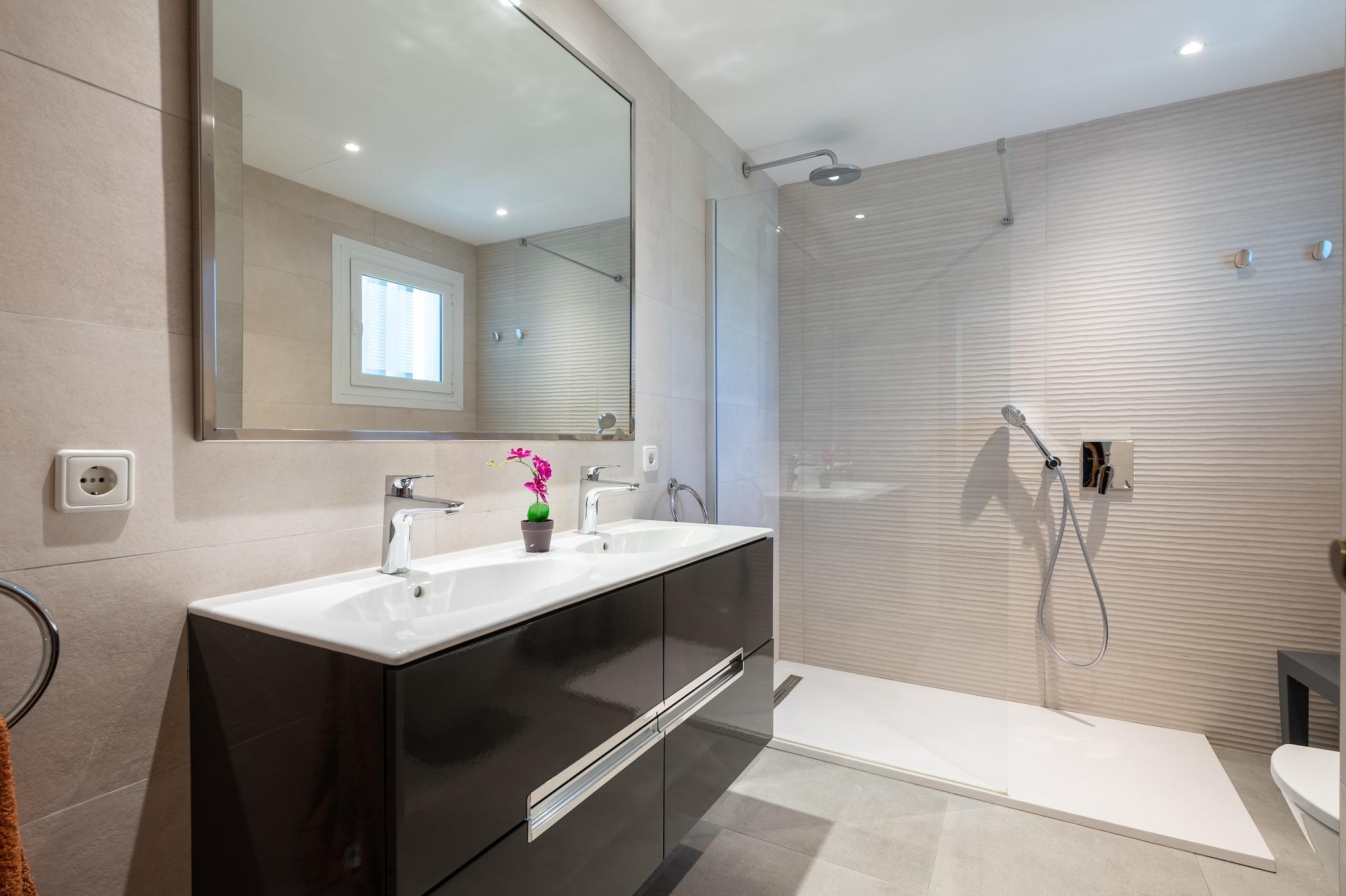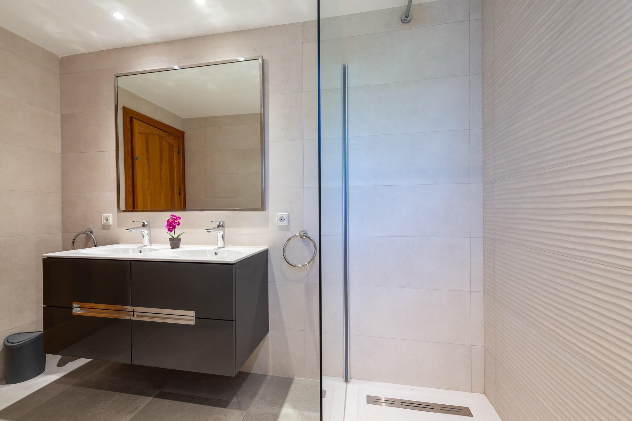 De buitenruimte is perfect voor een leuke strandvakantie met het gezin. Het biedt een grote tuin met 8 ligstoelen en 2 parasols, waar u kunt zonnebaden bij het zwembad. Het meet 10 x 5 meter, heeft een diepte variërend van 1 tot 2 meter en beschikt over een buitendouche. Het terras aan de voorzijde is perfect om te ontspannen op de fauteuils. De veranda heeft een barbecue en een eethoek in de openlucht. Het pand is omheind in een woonwijk met buren. Het interieur wordt gekenmerkt door ruime en goed uitgeruste ruimtes voor een perfecte vakantie. De split-level woon-eetkamer biedt comfortabele banken om satelliet-tv te kijken en een ruime eethoek. De keuken is onafhankelijk, uitgerust met een keramische kookplaat en biedt ook een wasmachine, strijkijzer en strijkplank. Nog steeds op de begane grond vinden we een slaapkamer met een tweepersoonsbed en een badkamer met douche. De overige 3 slaapkamers bevinden zich op de eerste verdieping en hebben allemaal 2 eenpersoonsbedden. Alle slaapkamers hebben airconditioning. Op deze verdieping bevindt zich een tweede badkamer met douche. Indien u met uw baby reist, zijn er een kinderbedje en een kinderstoel beschikbaar. Het gebied rond Puerto de Pollença is een van de beste bestemmingen op het eiland Mallorca. Het is een perfecte woonwijk voor gezinsvakanties met alle essentiële voorzieningen: supermarkten, winkels, restaurants, strandbars, enz. Het zandstrand ligt op slechts 270 meter van de accommodatie. De boulevard straalt charme en schoonheid uit. Een must-see is het strand van Formentor en de stad Pollença. Als u van golfen houdt, ligt de golfbaan op slechts 9,2 km afstand. Voor eventuele extra kosten kunt u contact opnemen met de adverteerder. Wij accepteren geen huisdieren. Het vieren van evenementen is niet toegestaan. Er is buiten parkeergelegenheid voor 3 auto's. Afstanden Strand: 0,27 km - Port de Pollença Luchthaven: 65,1 km - Son Sant Joan Golfbaan: 9,2 km - Golf Pollença Stad: 0,01 km - Port de Pollença Treinstation: 21 km - station Sa Pobla Bushalte: 0,25 km - Carrer de Guillem Colom Veerboot: 10,5 km - Port d'Alcúdia Ziekenhuis: 30,4 km - Comarcal d'Inca-ziekenhuis Toeristenvergunning: VT/2088 Op de Balearen geldt een toeristenbelasting, Ecotasa genaamd, die door de gast moet worden betaald. Het bedrag varieert tussen EURO 0,55 / per nacht per persoon in het laagseizoen en EURO 2,2 / per nacht per persoon in het hoogseizoen. Vanaf de negende dag wordt het met de helft verminderd. Personen onder de 16 jaar uitgesloten.