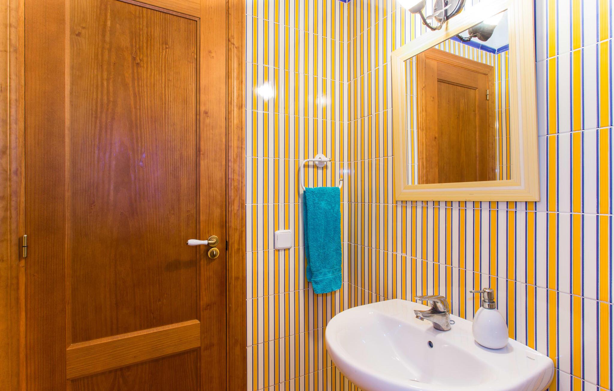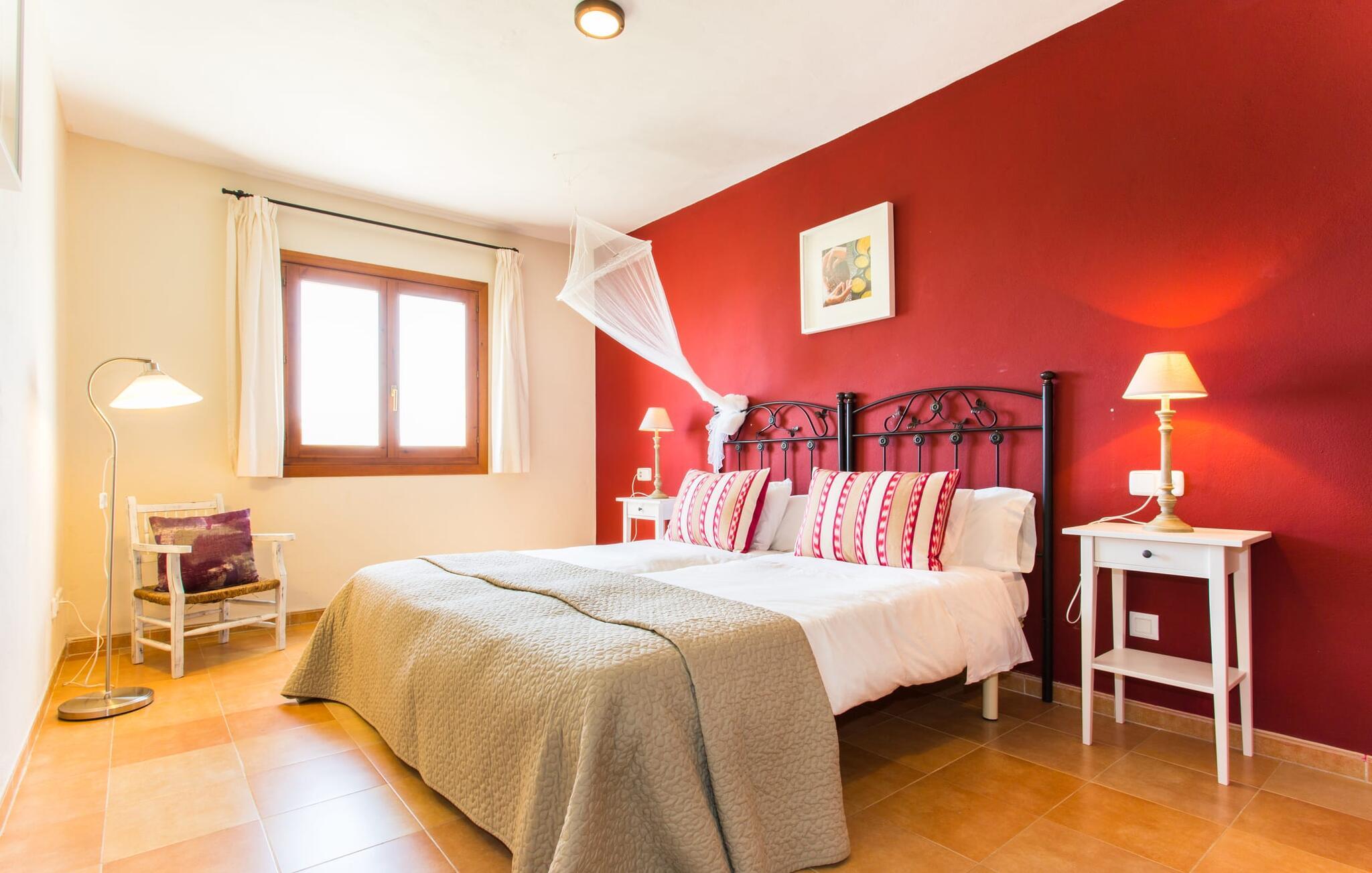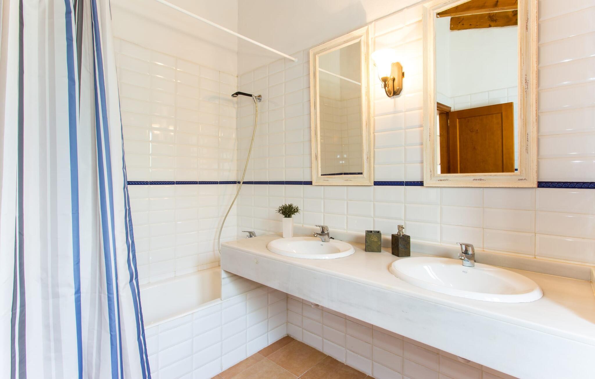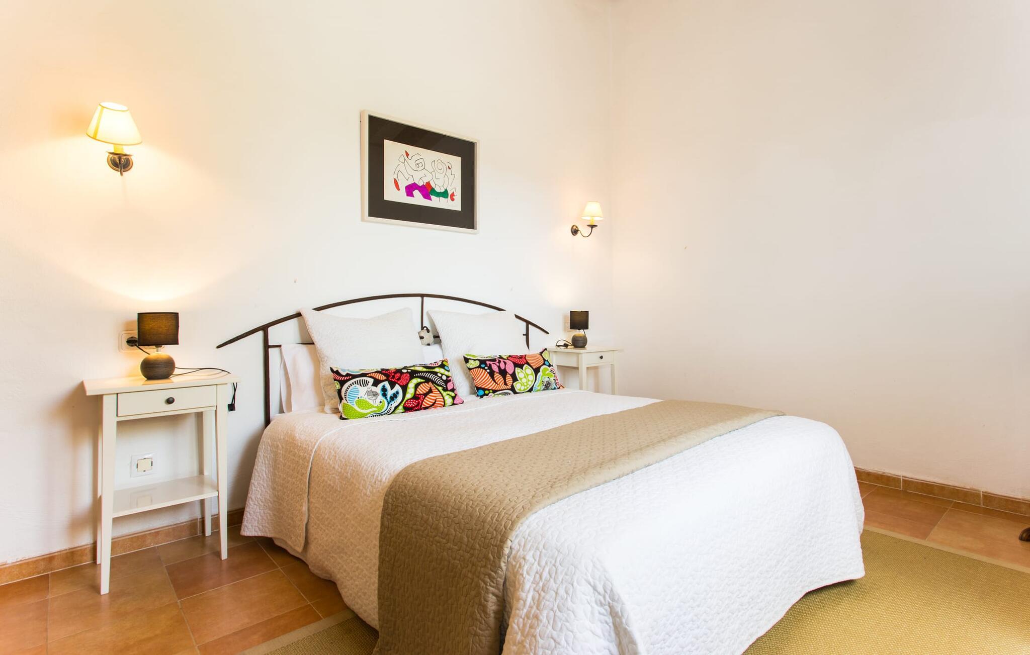 Der er ikke mange ejendomme med seks soveværelser med dobbeltsenge og seks badeværelser (et gæstetoilet). Og tilføjer man andre fordele som familievenlighed, nærhed til stranden og god værdi for pengene, så er der virkelig ikke mange. Af denne grund anbefaler vi især denne villa til en stor familie eller en gruppe familier. Men det er ikke kun nærheden til stranden, der gør denne villa så attraktiv for familier, der elsker at svømme. Ejendommen, nænsomt drevet og vedligeholdt af sin spanske ejer, imponerer frem for alt med sin rummelighed og den relativt overkommelige pris per nat. Hvide linnedlagner svajer blidt i den blide brise, der flyder fra havet over de bølgende bakker til villaen. De giver udearealet i denne smukke villa en helt særlig charme. Sammen med den nybyggede poolterrasse, som også er beklædt med et hvidt klæde, skabes et skønt chill-out område med en fantastisk udsigt til den tilstødende, knaldblå pool og markerne og engene bagved. Udearealet har 20 siddepladser og 12 liggestole. Poolen er ideel til familier og især børn, da den har et trin og en lille stige. Det betyder, at også yngre gæster har mulighed for at plaske rundt på de øverste trin, naturligvis under opsyn. Villaen kan trædes ind gennem hovedindgangen eller gennem en af de store terrassedøre. Når man kommer ind via hovedindgangen, kommer man ind i foyeren, der er over fem meter høj, som igen fører via en stor trappe til opholdsstuen i stueetagen eller til overetagen. Selvom I rejser med en eller flere familier, betyder det store antal soveværelser og badeværelser, at I ikke skal stå i kø til toilettet om morgenen. Der er plads nok til op til 12 personer, og de to førsteklasses babysenge tilbyder ekstra plads til to babyer, der rejser med jer. Villaen har fuldt udstyret køkken, spiseplads og opholdsstue, som igen har fladskærms-satellit-tv og WiFi. I kan til enhver tid sende aktuelle feriebilleder til jeres smartphone eller tablet via internettet. I øvrigt: To soveværelser er forbundet, hvilket er perfekt til et par (i det ene soveværelse) med børn (i det andet). Dette er især nyttigt, hvis I rejser med mere end én familie. Vi giver derfor Villa “Pont Verd” to tommelfingre op for familier med børn. Bare se nærmere på den forstørrede kortvisning af omgivelserne i denne villa, og I vil straks indse, hvor tæt det er på den smukke sandstrand "Sa Marjal" (på Costa de los Pinos). Det er beliggende mellem boligområderne Costa og Port Verd. Port Verd er en tidligere lille fiskerihavn, der nu er hjemsted for en fantastisk restaurant. Har I ikke lyst til at lave mad en aften, kan I blot nyde et lækkert måltid her i stedet. Den nærliggende strandpromenade er foret med flere andre restauranter, så I kan vælge en anden (høj kvalitet!) restaurant hver aften. Villaens navn stammer fra den nærliggende landsby Port Verd og dens beliggenhed er en af villaens helt store fordele. Den enorme ferievilla "Port Verd" er ideel til børn og ligger meget tæt på stranden, nær den lille by af samme navn på "Coast of the Pines" (Costa de los Pinos). Det er beliggende på en grund på omkring 14.000 m² med udsigt over havet, meget tæt på stranden og med indkøbsmuligheder kun få minutter væk (f.eks. i Son Servera). I nærheden af Cala Ratjada er der en dejlig strandpromenade med gode barer og restauranter til en aftentur eller en aften i byen.